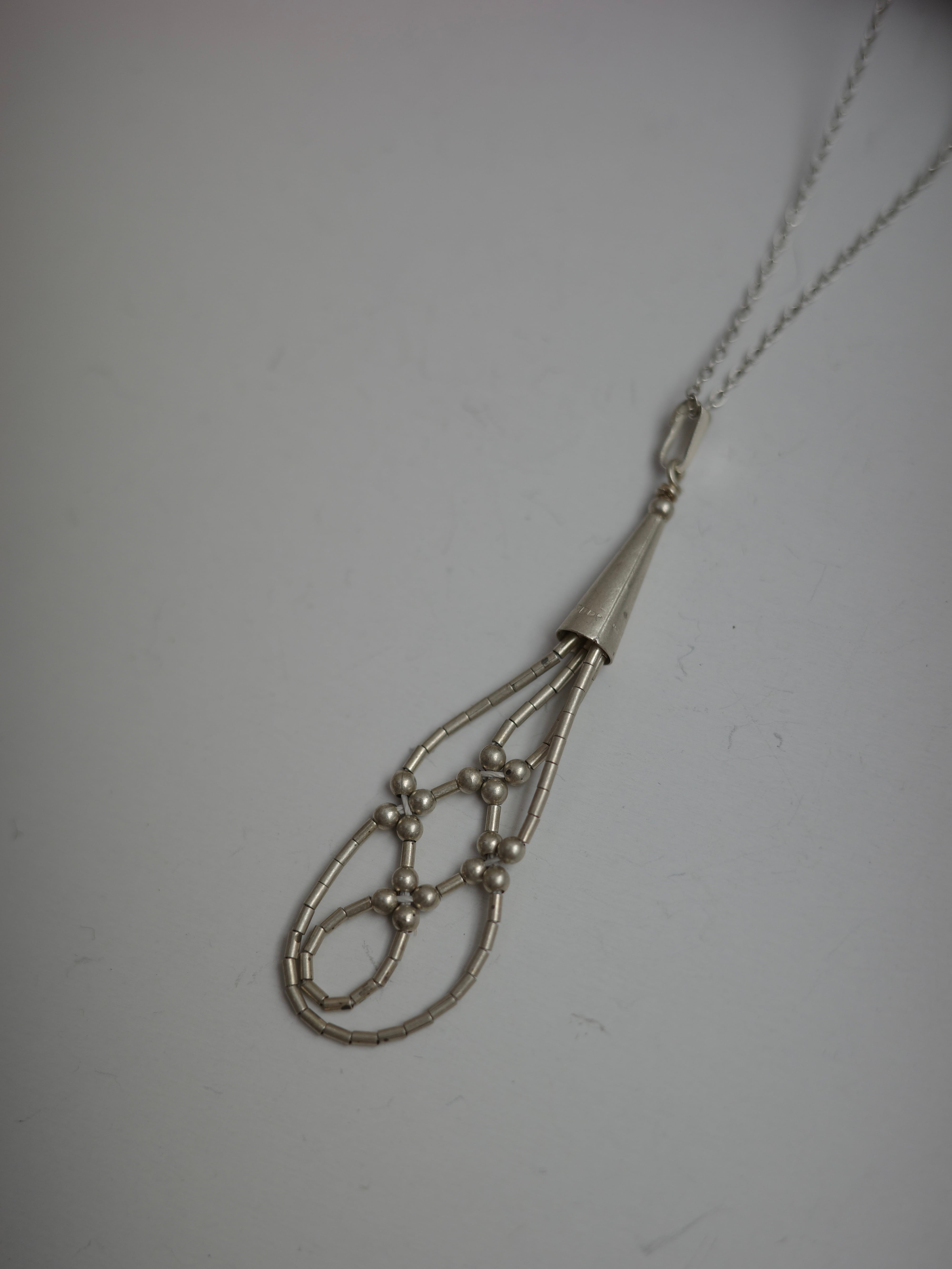 アメリカより仕入れたヴィンテージネックレスです。シルバービーズを編み込んだモチーフがフリンジ風になっています。