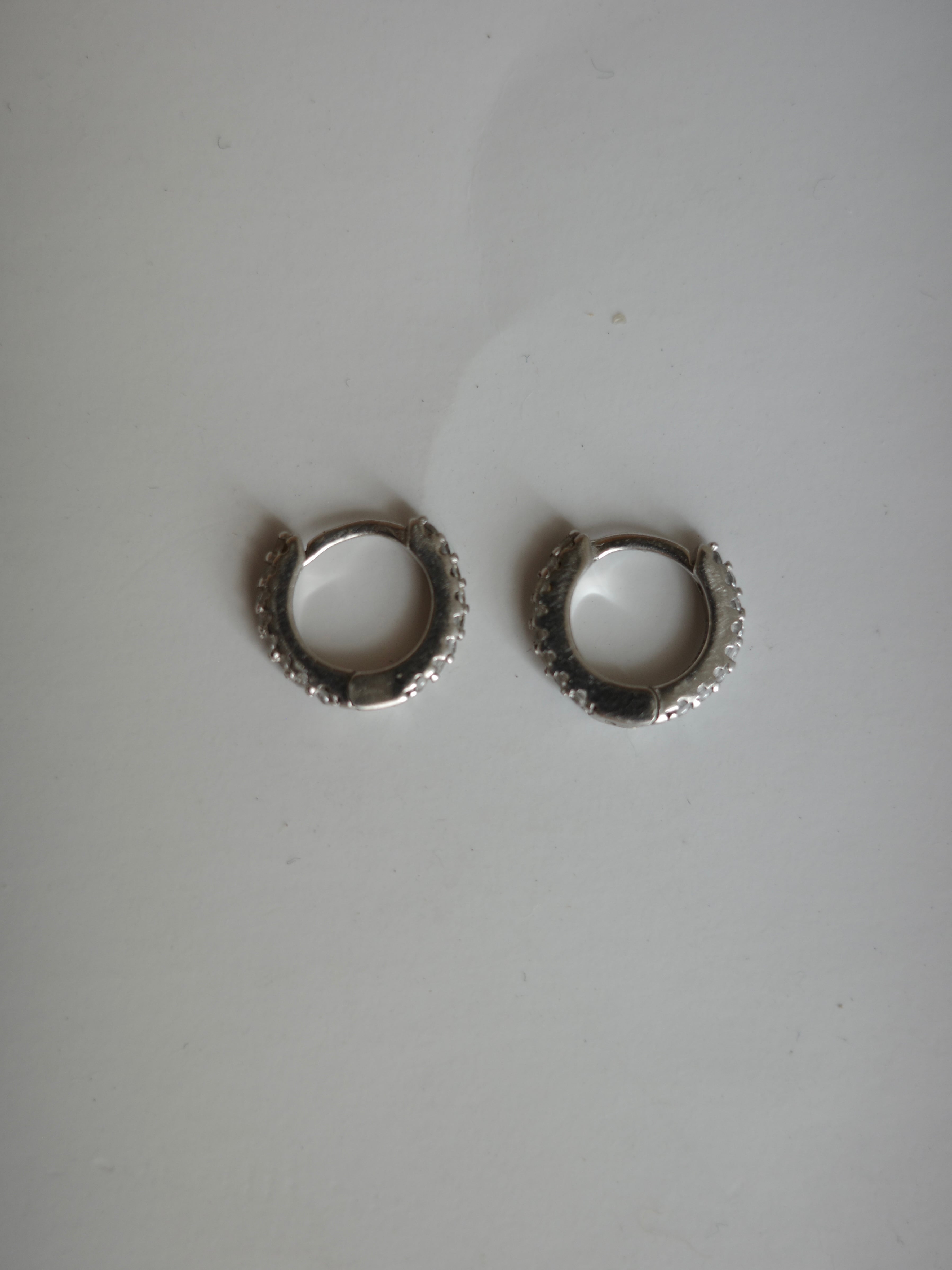 アメリカより仕入れたヴィンテージピアスです。とってもちいさなキュービックジルコニアが埋め込まれたフープで、耳に沿うように着用いただけます。