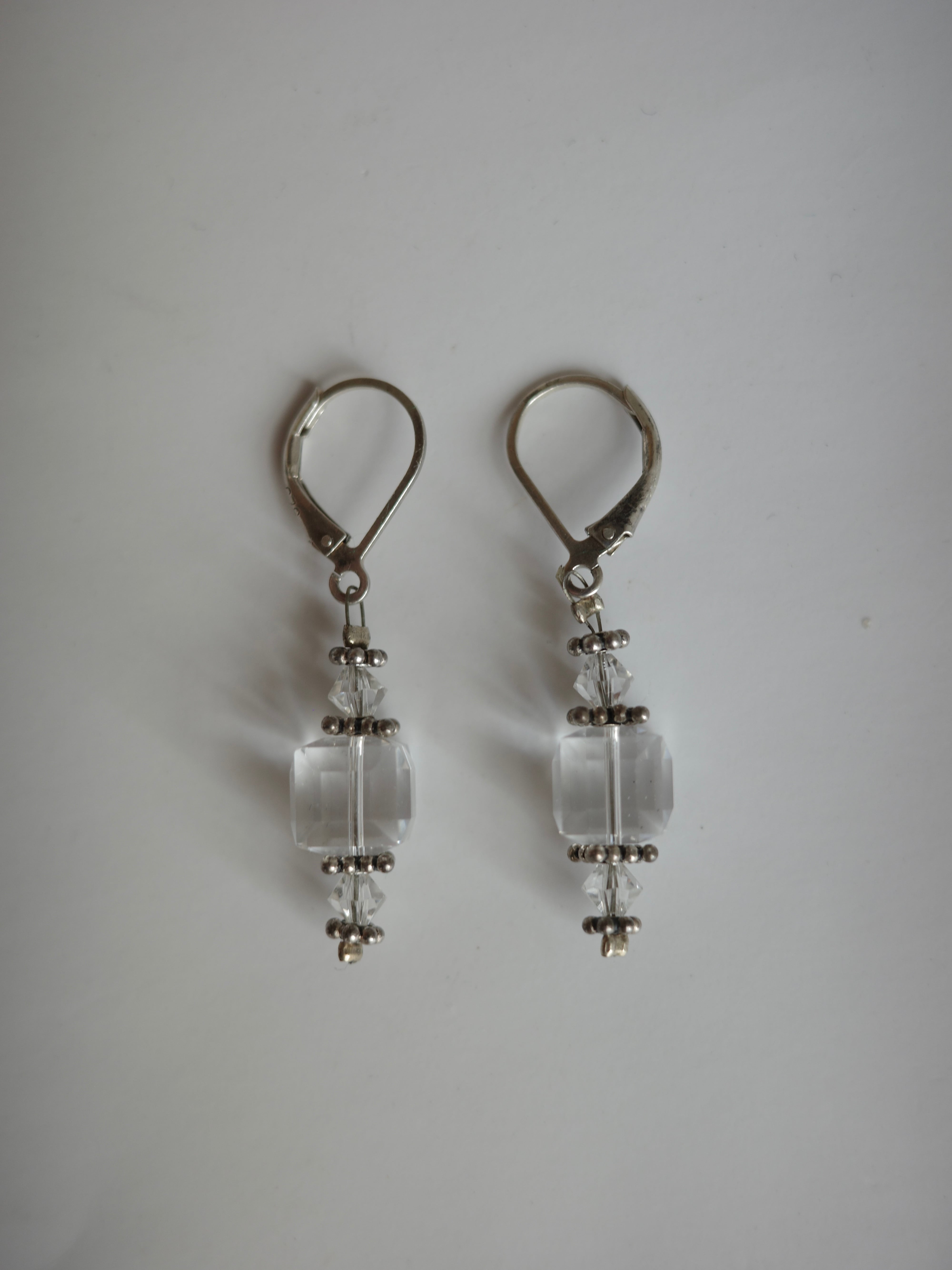 アメリカより仕入れたヴィンテージピアスです。四角いクリスタルがとっても綺麗で、装飾ビーズもオリエンタルなデザインが素敵です。