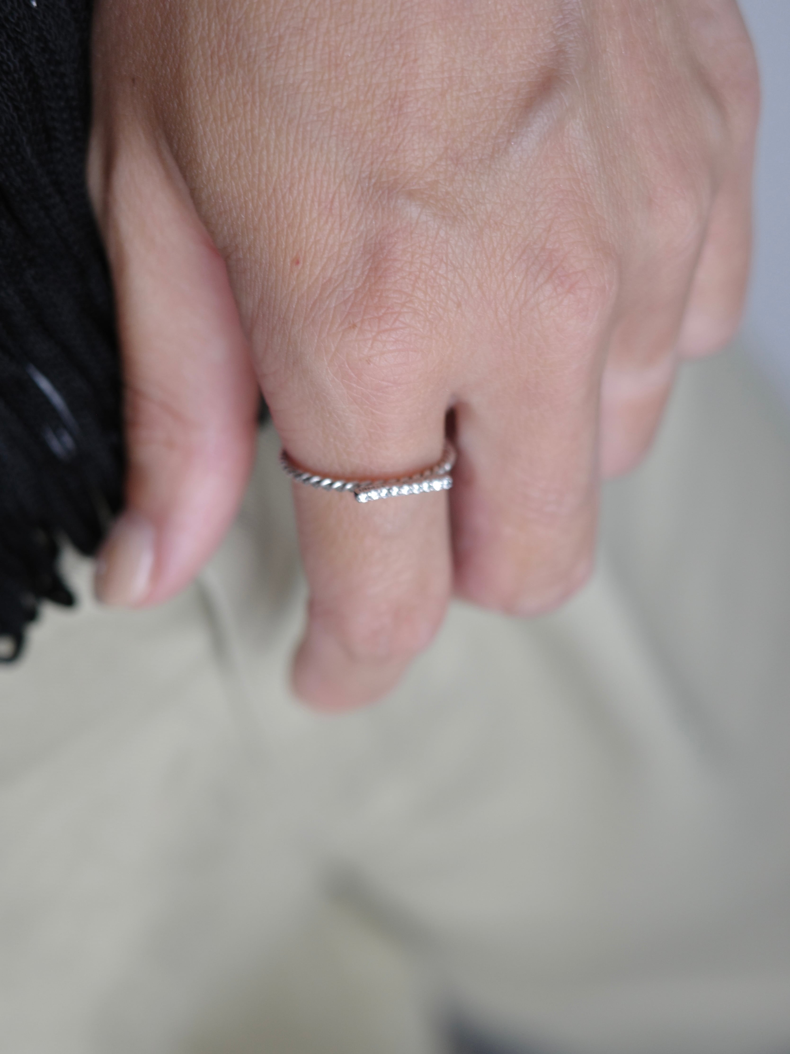 アメリカより仕入れたヴィンテージリングです。華奢なリングに華奢なバーがついたデザイン。バー部分にはキュービックジルコニアが埋め込まれていて、キラキラとさりぎない輝きがあります。