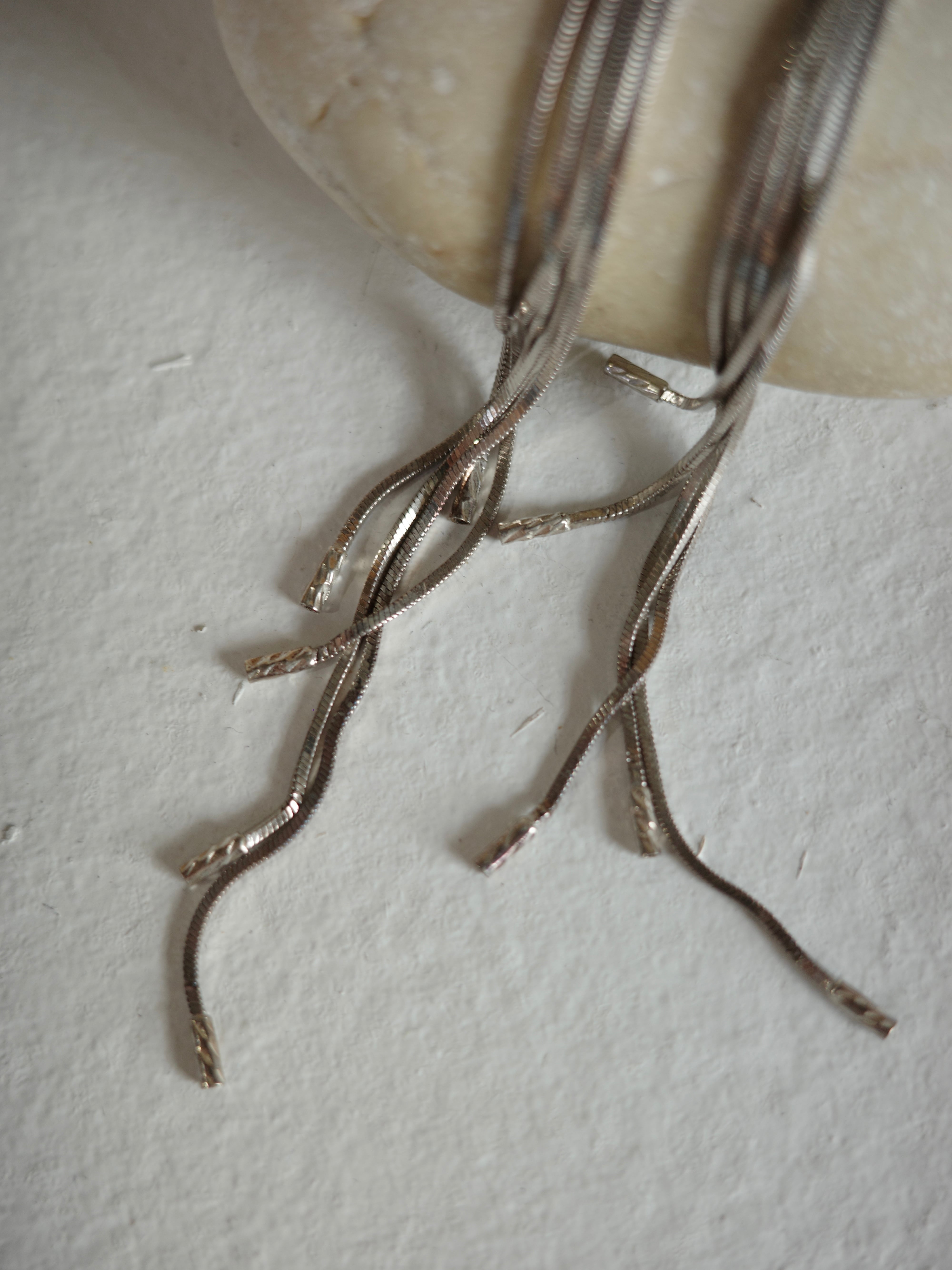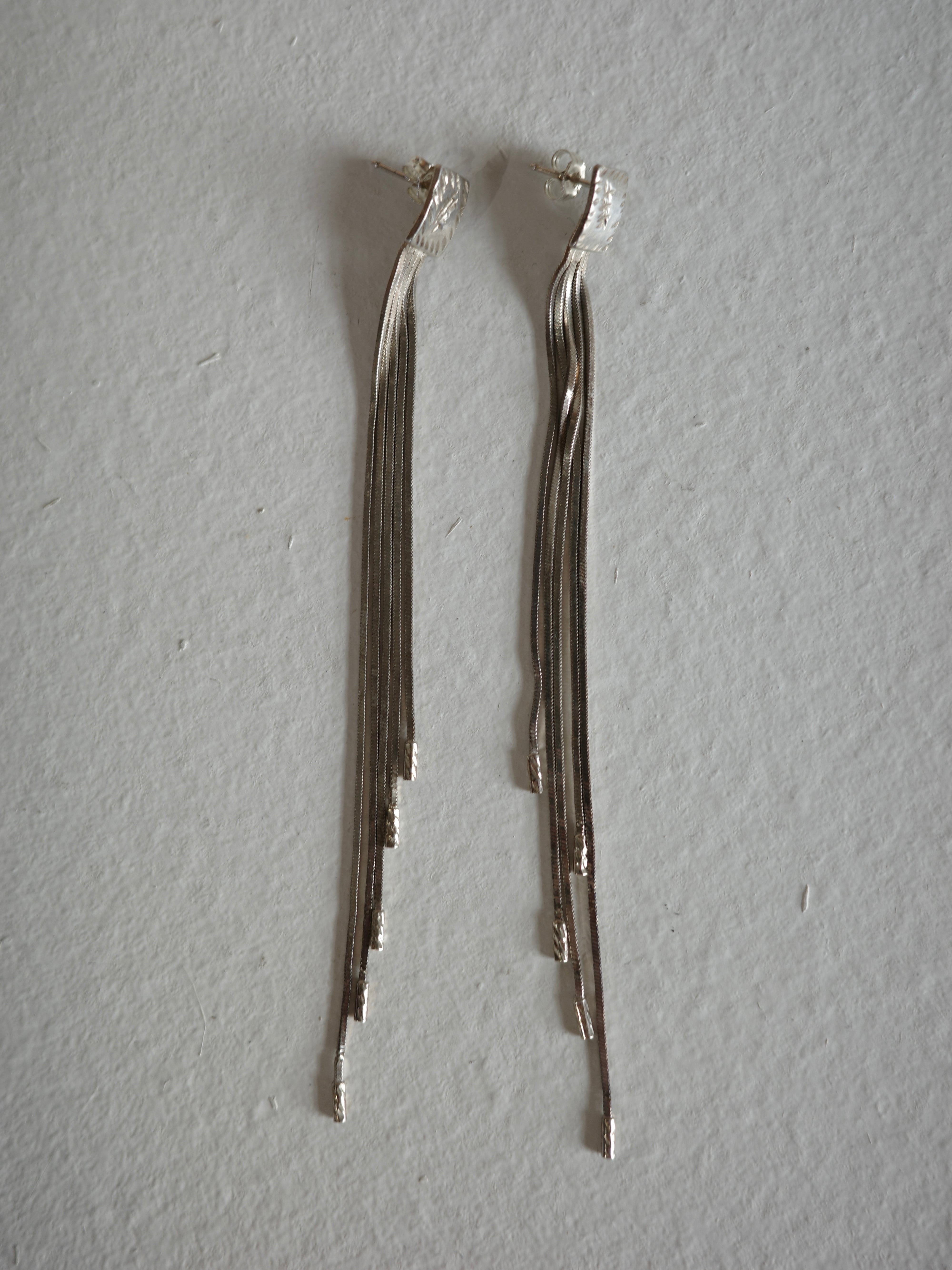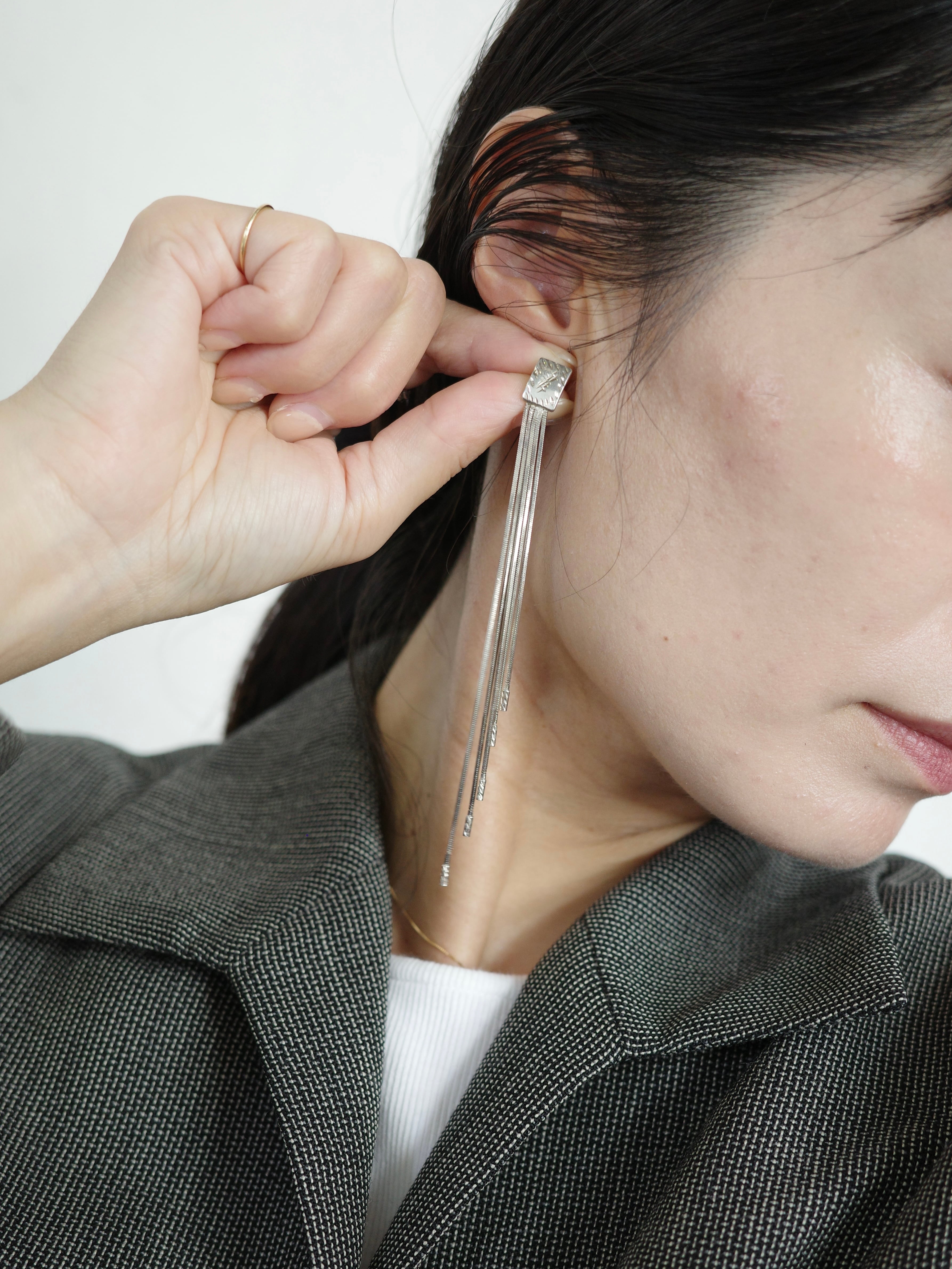 アメリカより仕入れたヴィンテージピアスです。長めのフリンジデザインが華やかなアイテム。ポストのプレート部分にはさりげなくオリエンタルなデザインが施されています。