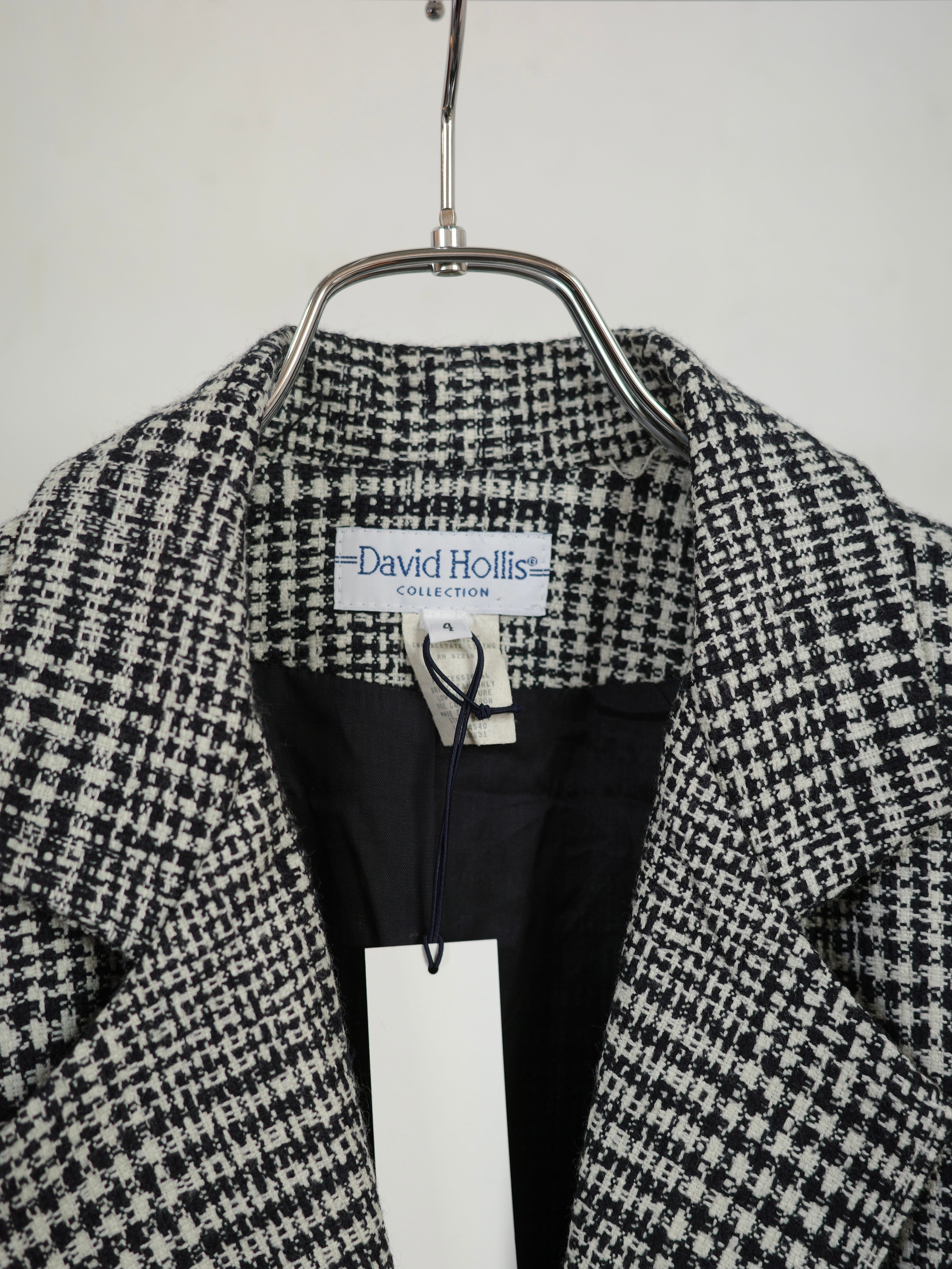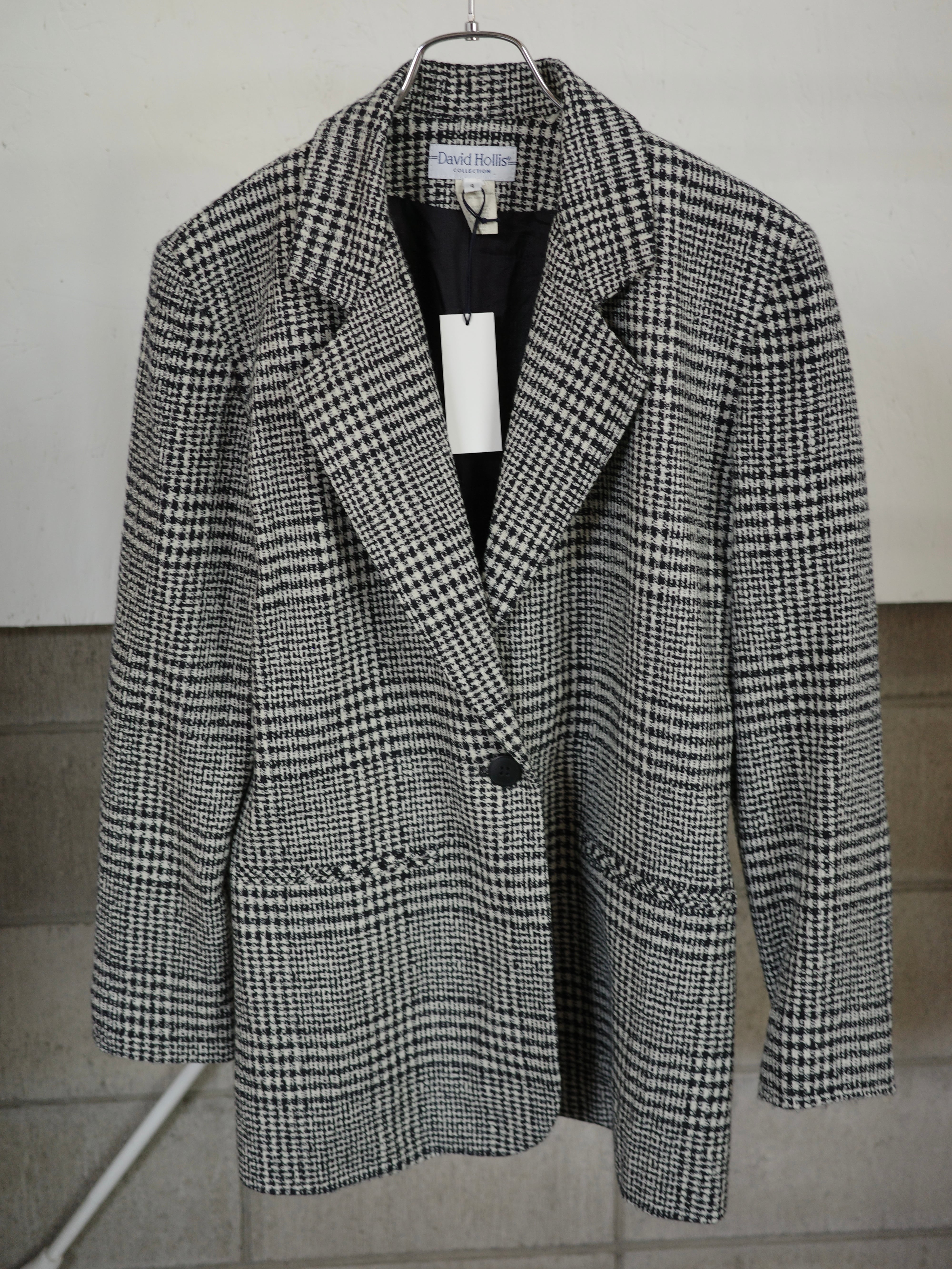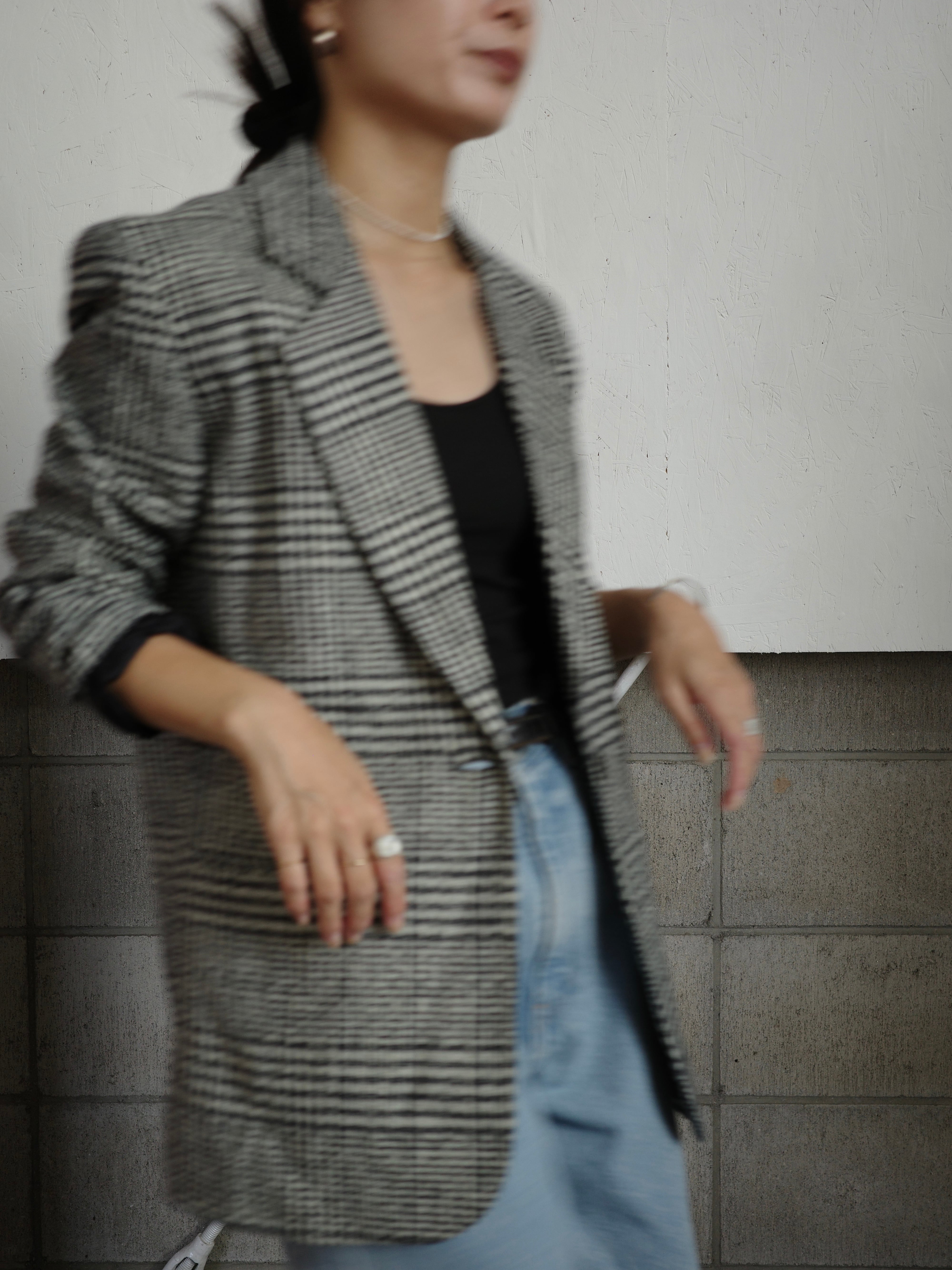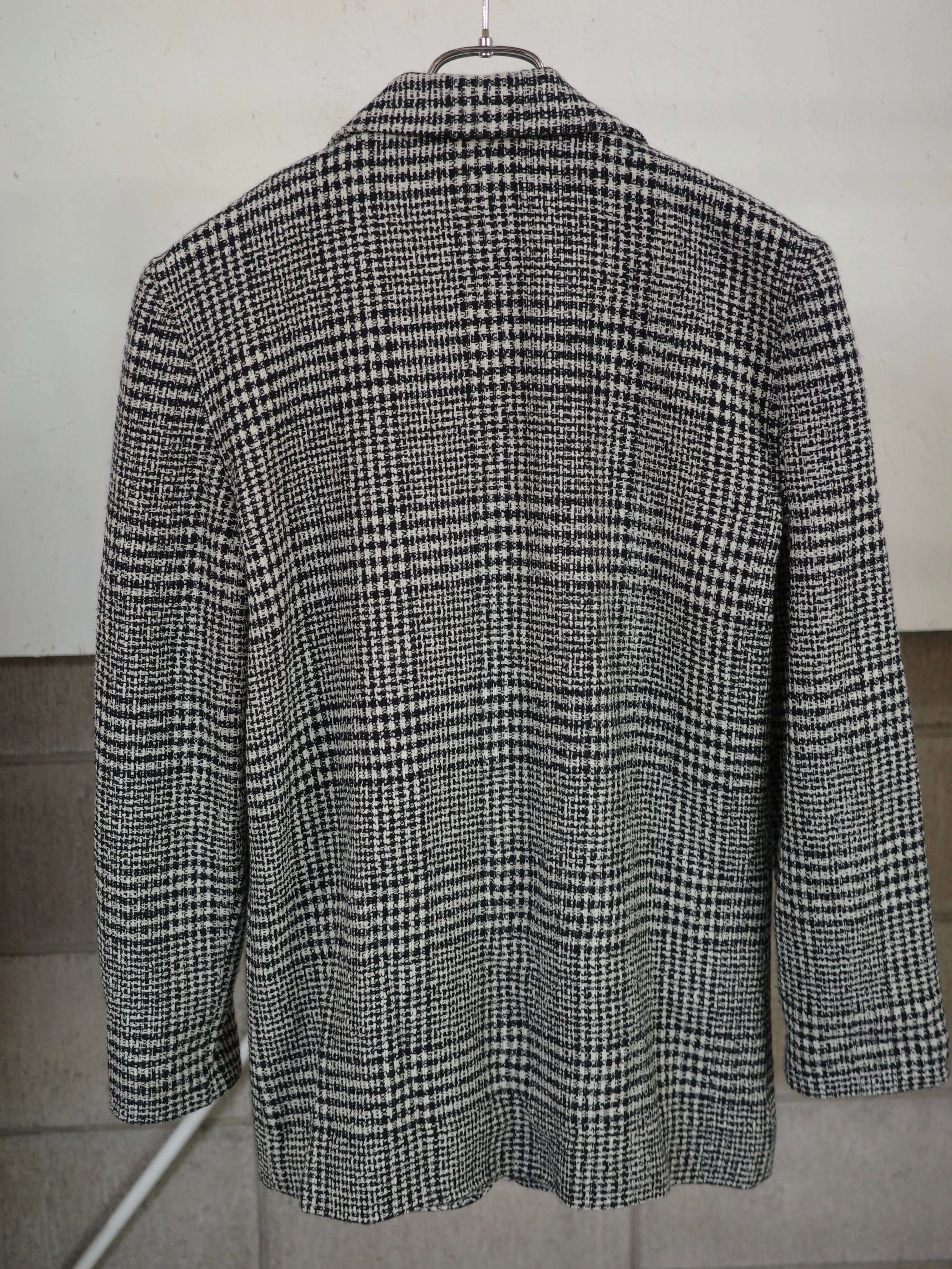 モノトーンのグレンチェックジャケットです。シンプルなボックス型ですが、目を惹く柄でコーデイネートのアクセントになります。