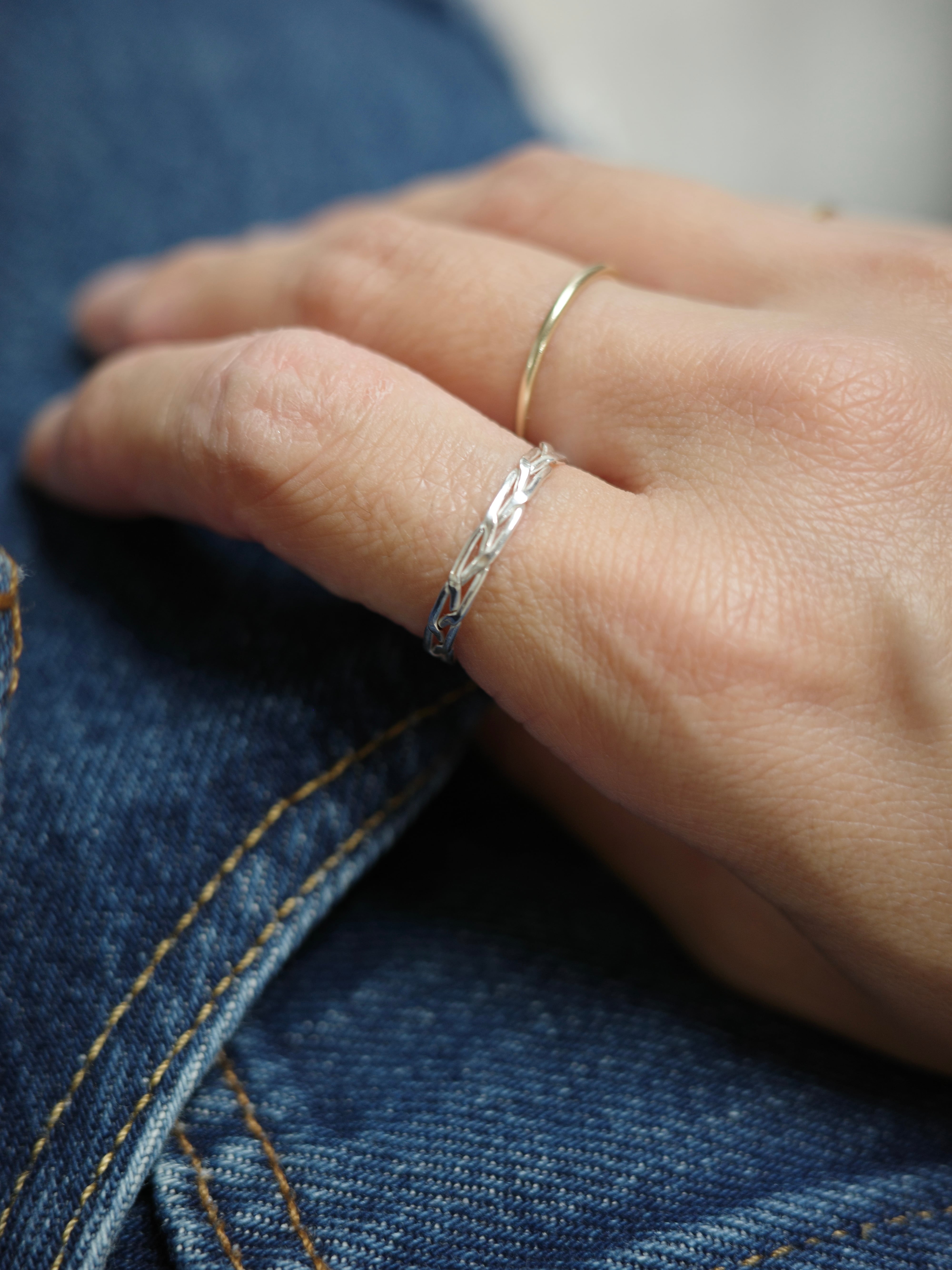 アメリカより仕入れたヴィンテージリングです。編み込んだようなデザインになった華奢リングです。単体ではもちろん重ね付けにもお勧めです。