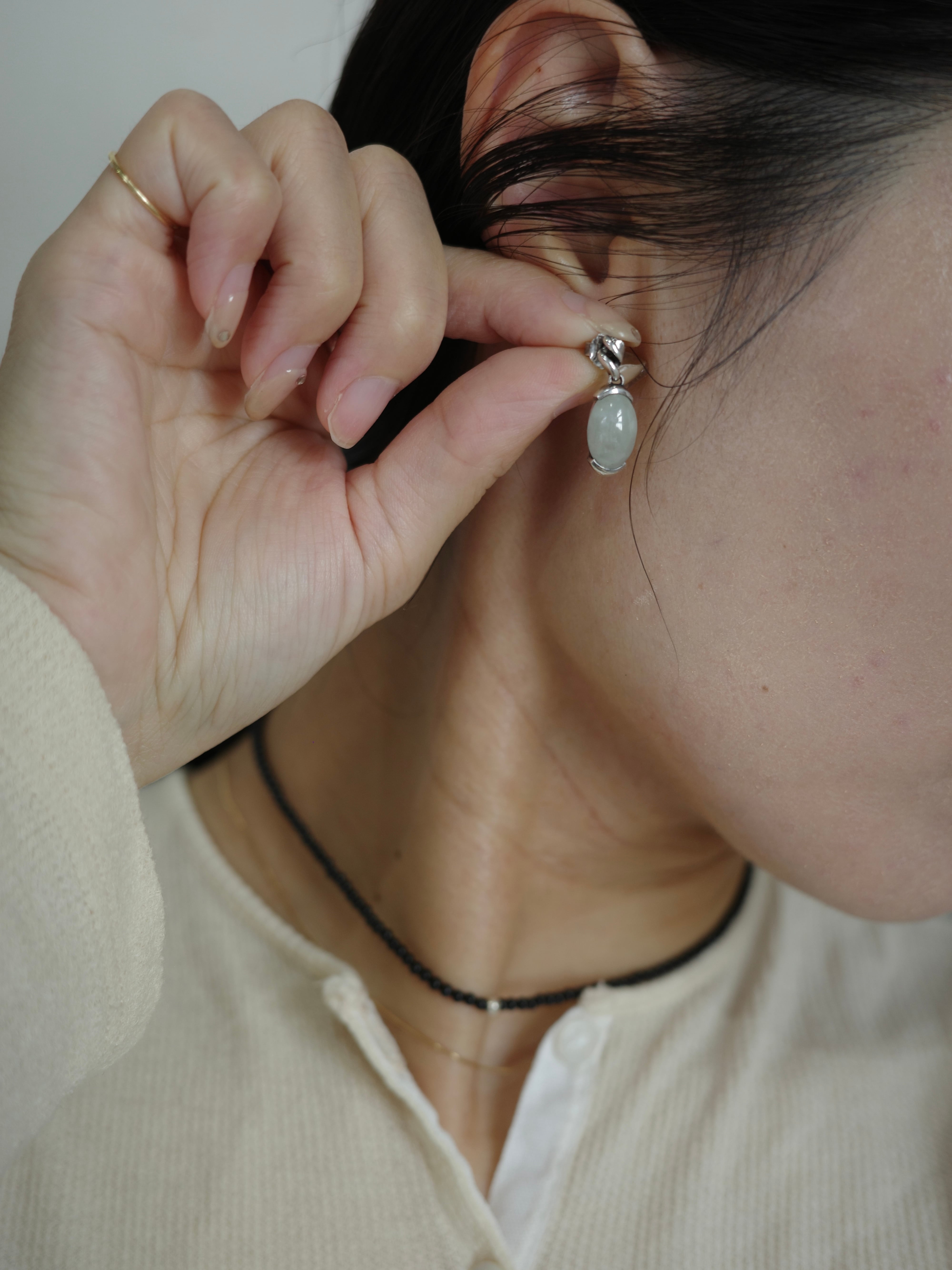 <vintage silver925>green jade pierce