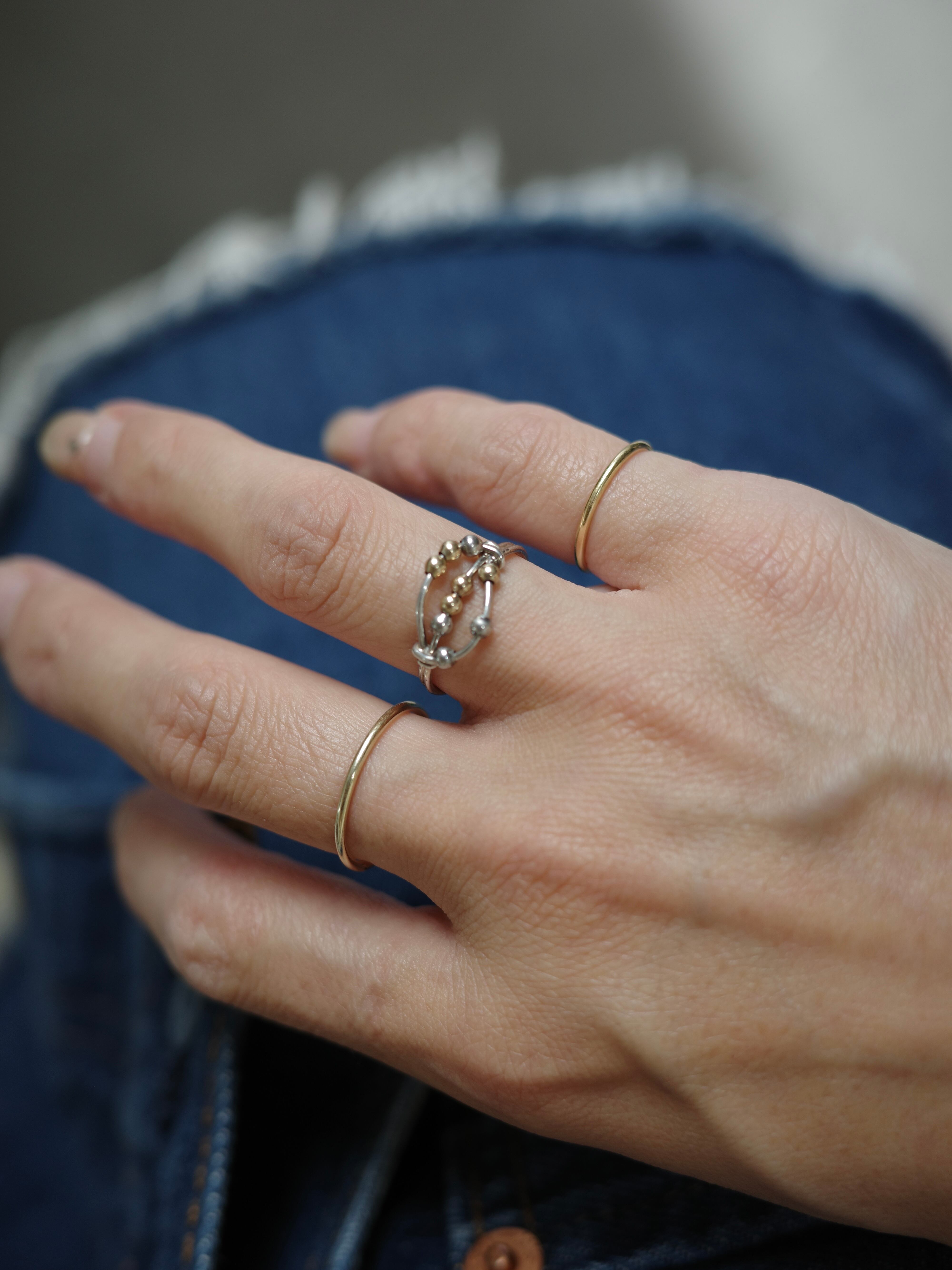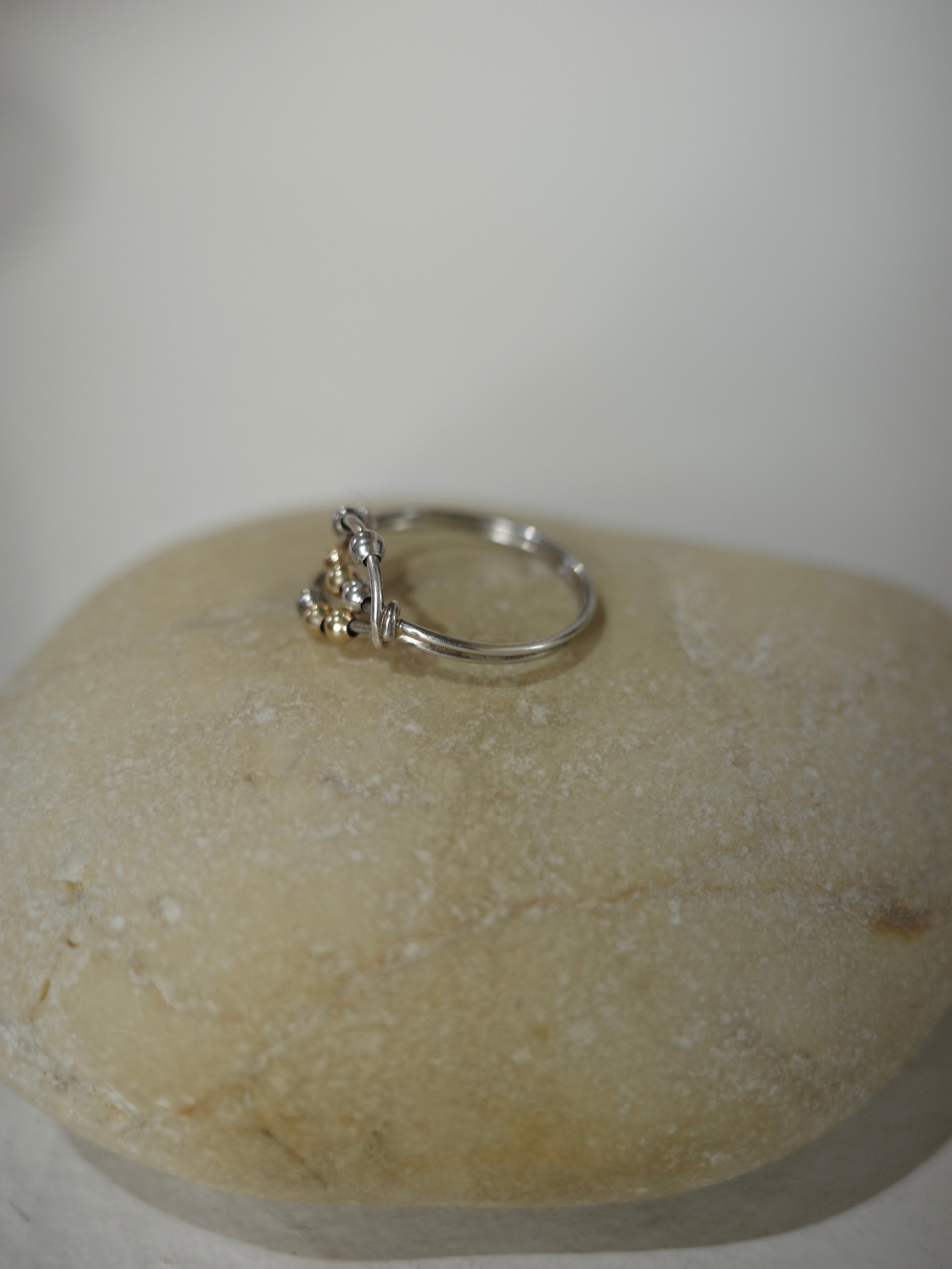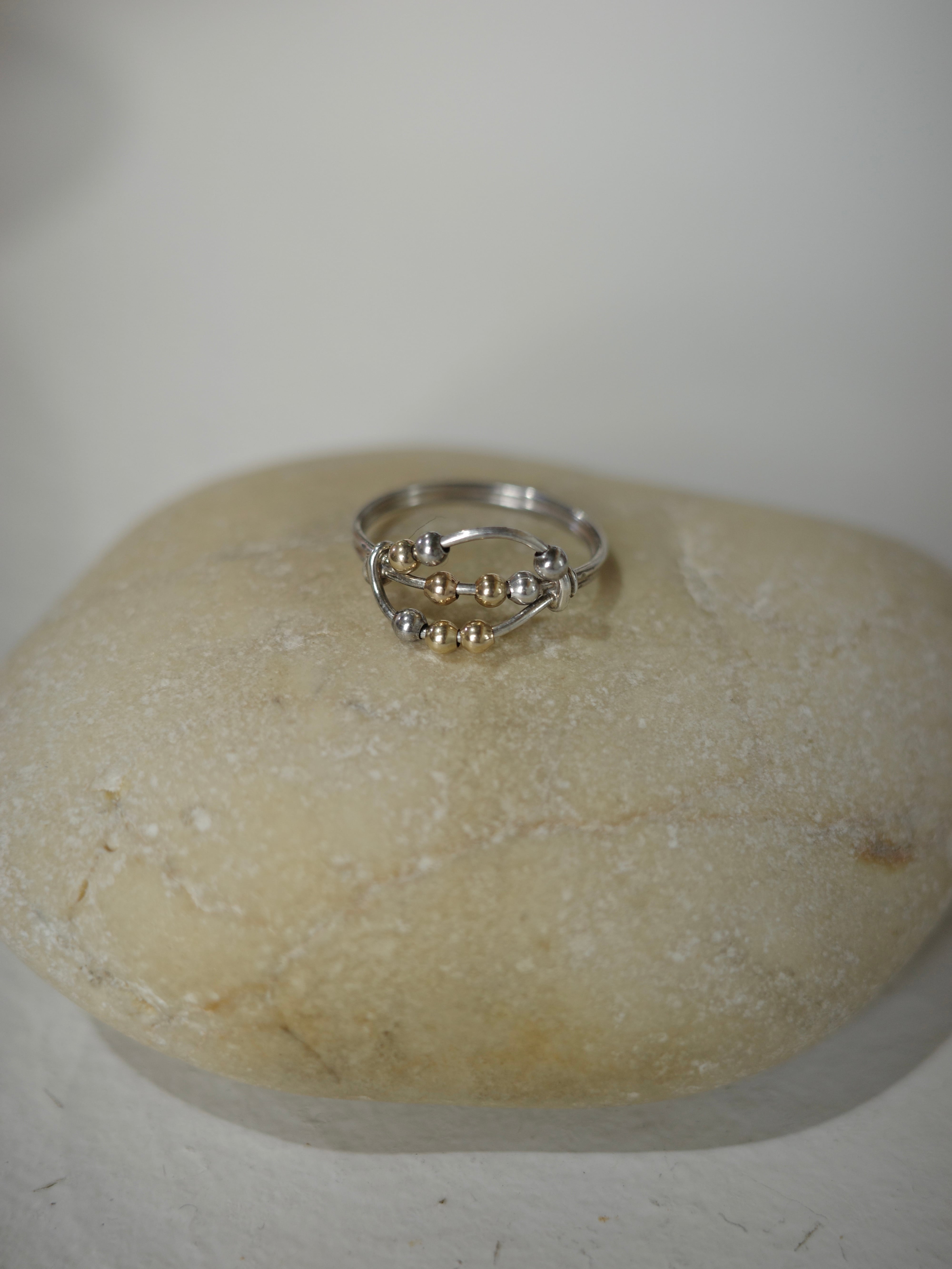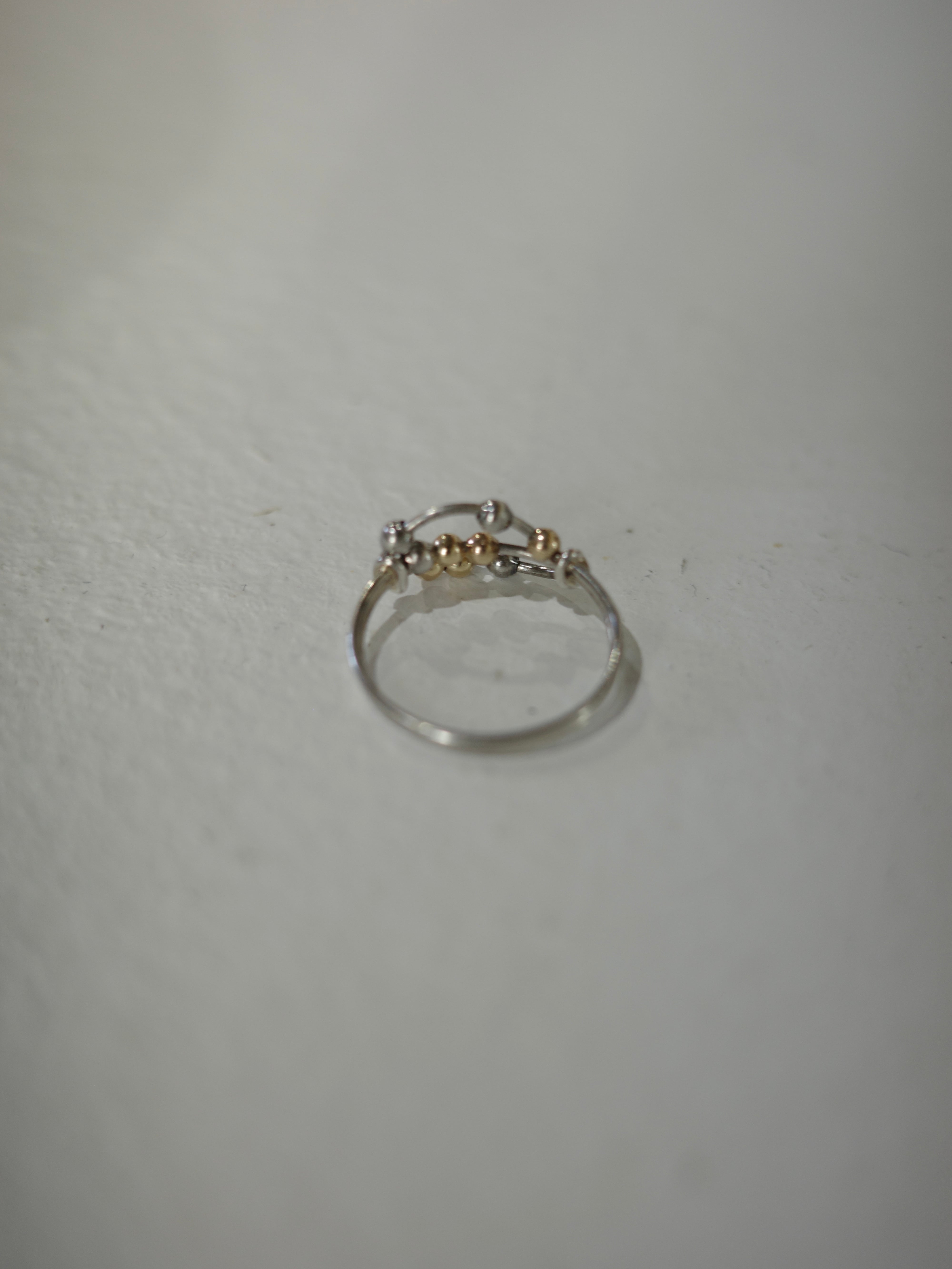 アメリカより仕入れたヴィンテージリングです。シルバーワイヤーで作られた繊細なデザインで、ゴールドシルバーの動くビーズがアクセントになっています。