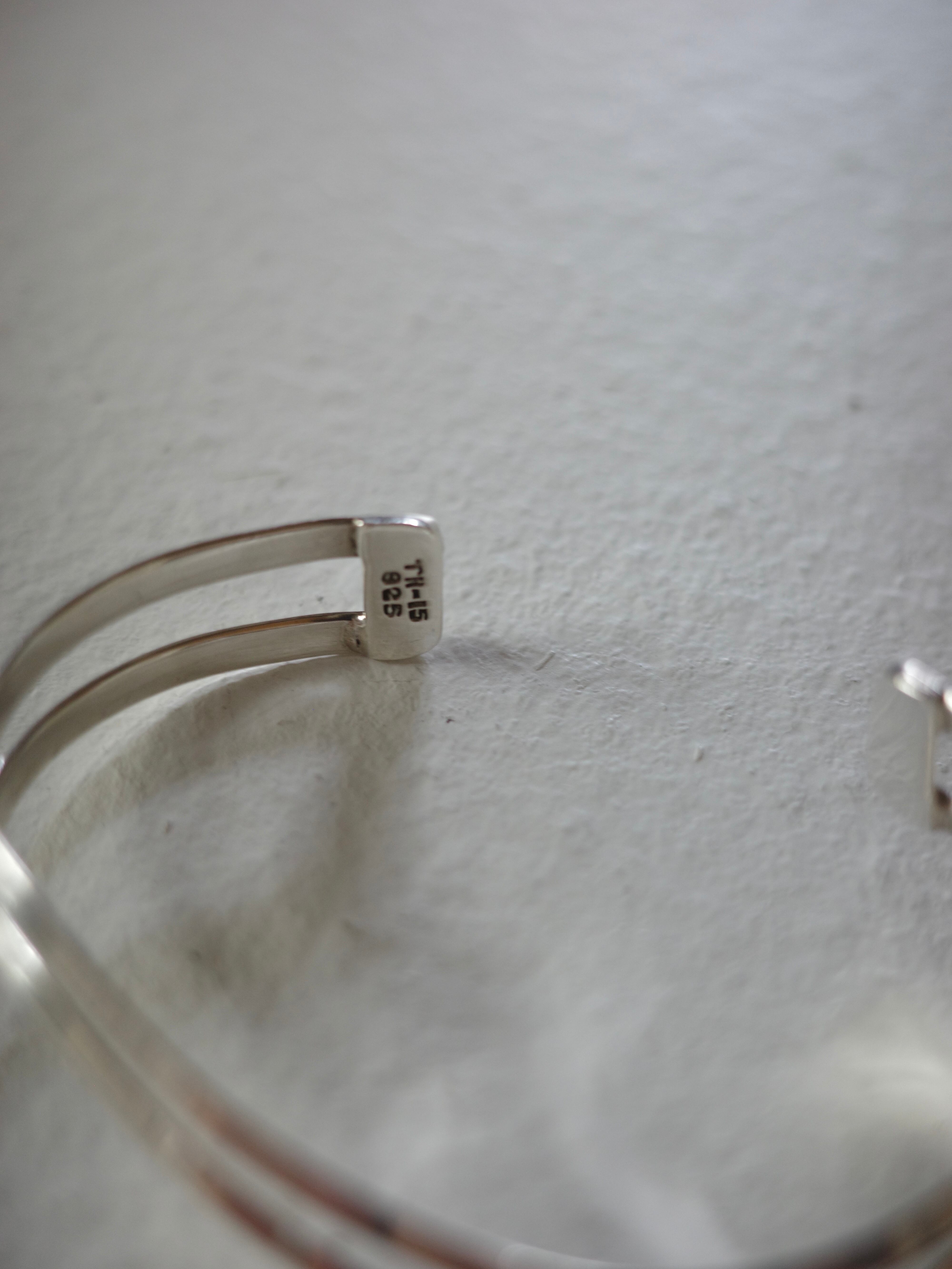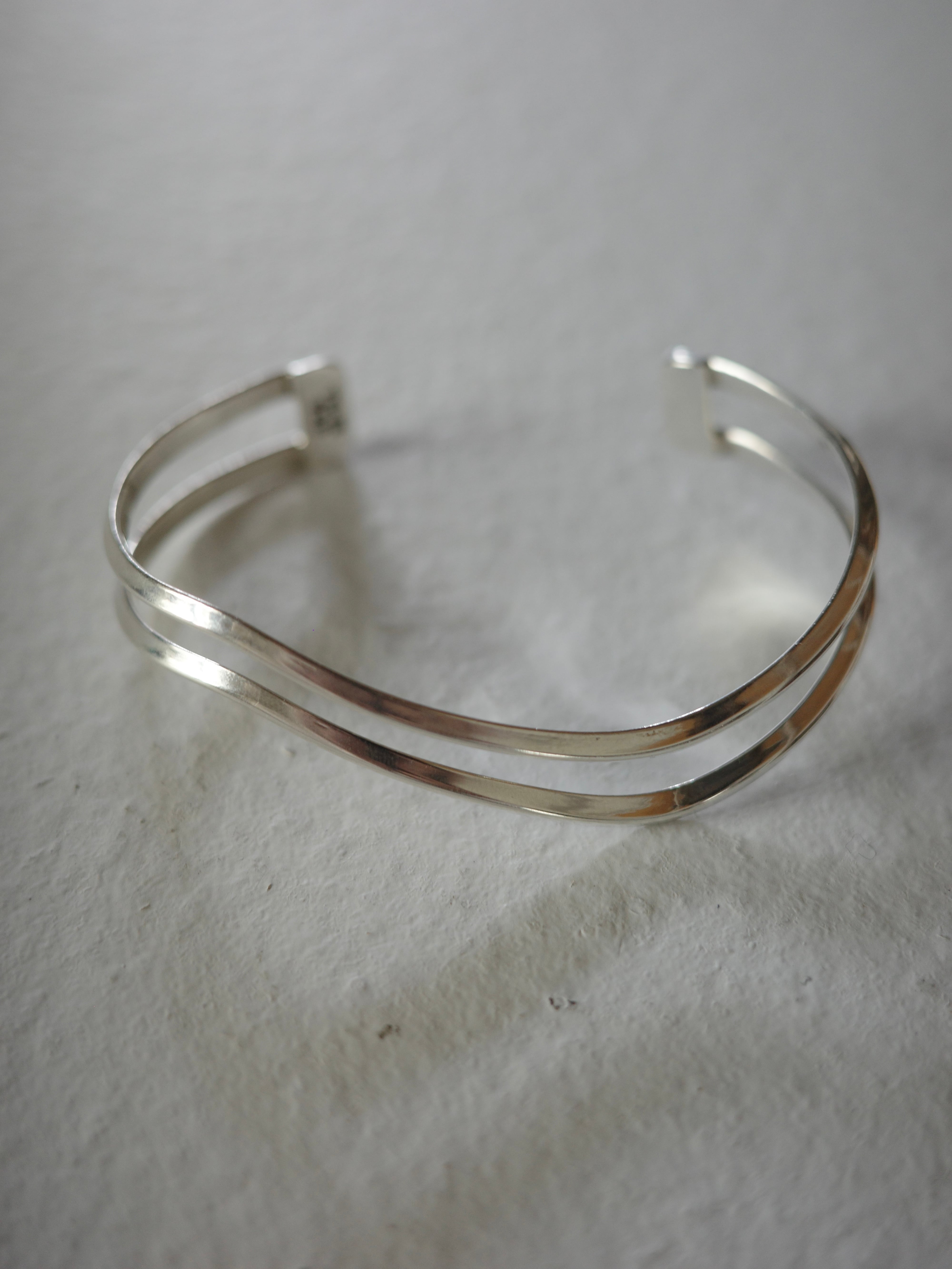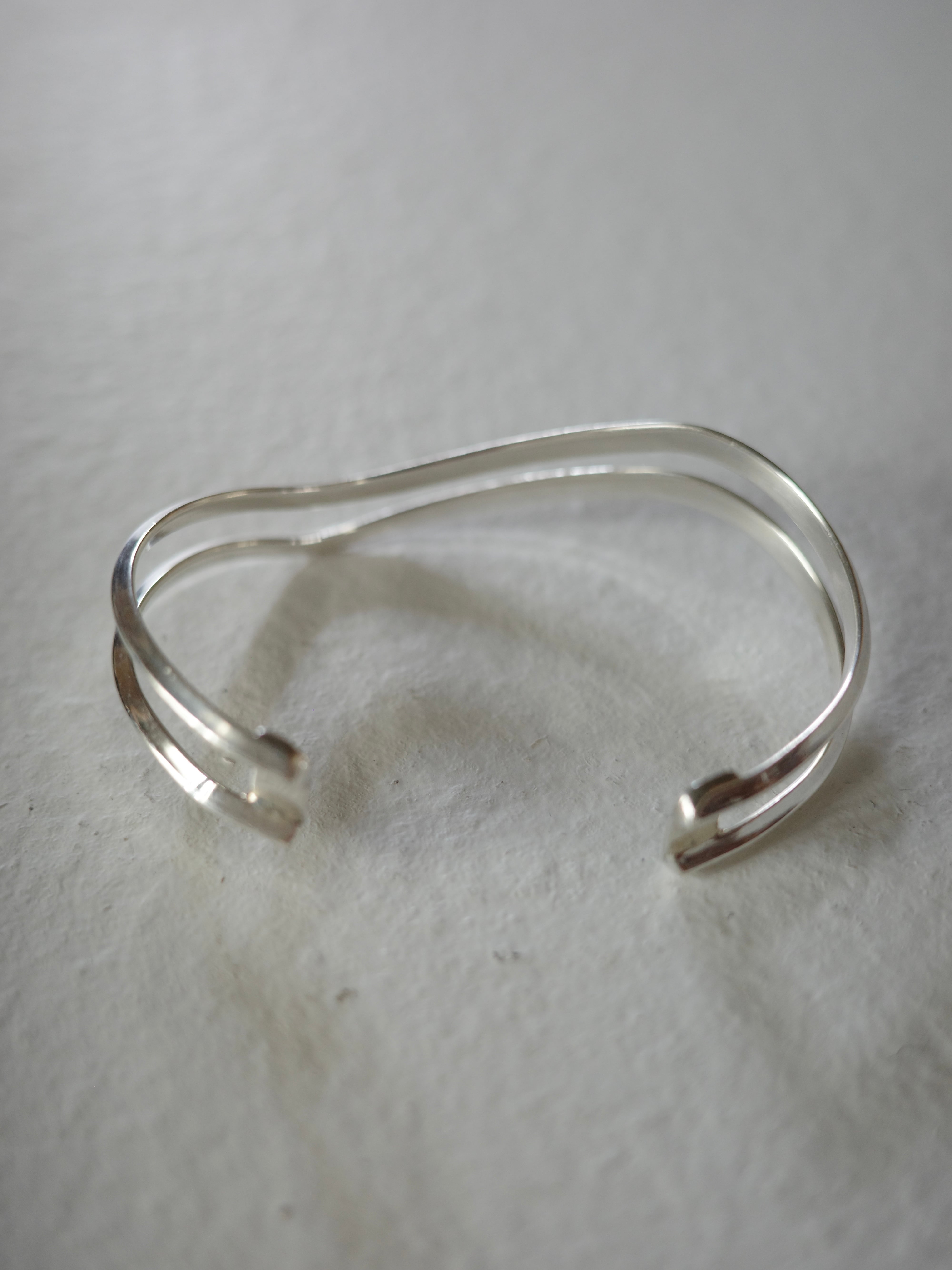 アメリカより仕入れたヴィンテージバングルです。2連になった曲線的なデザインがかっこ良いアイテム。重厚感がありますが抜けのあるデザインが素敵です。