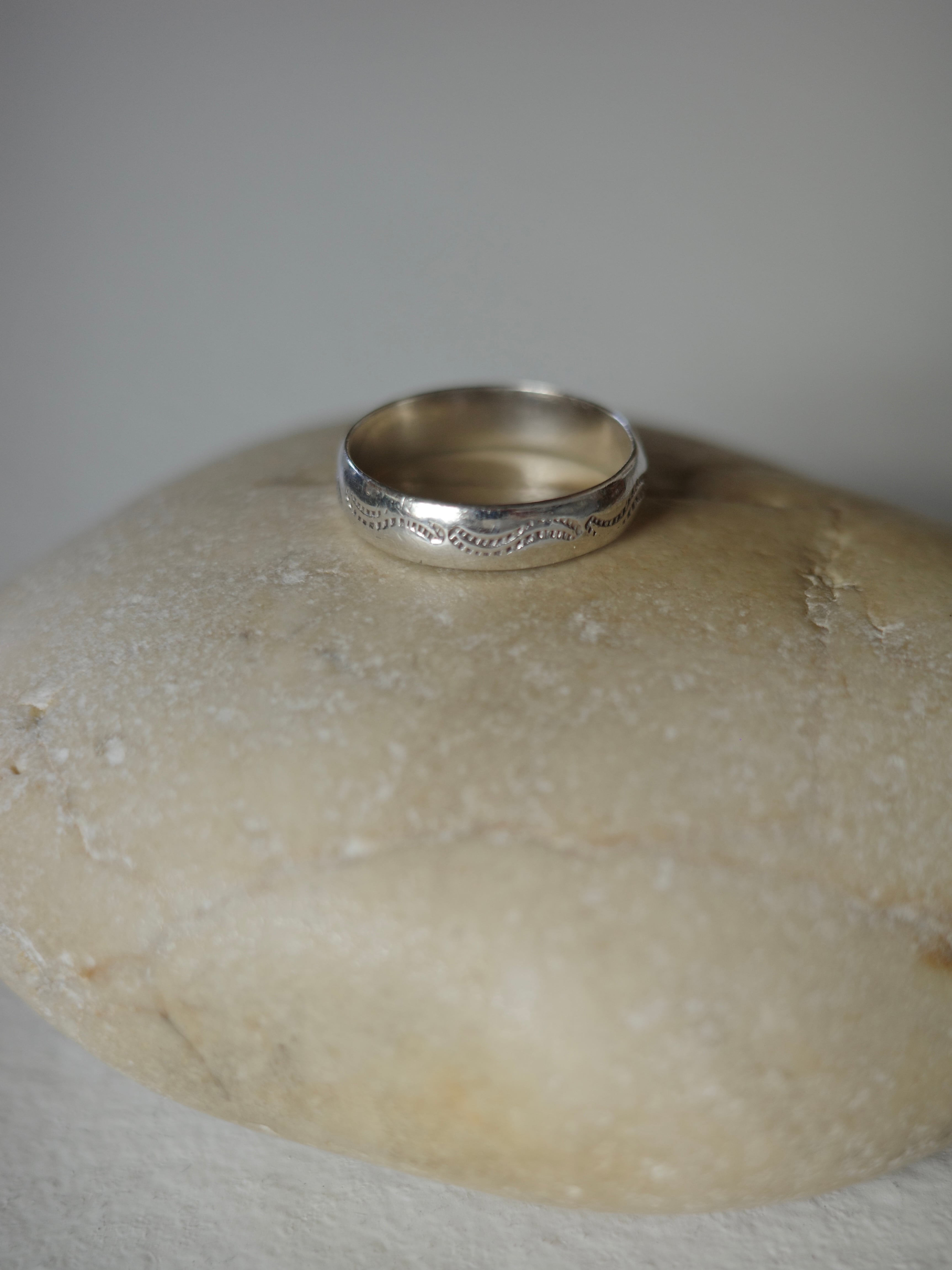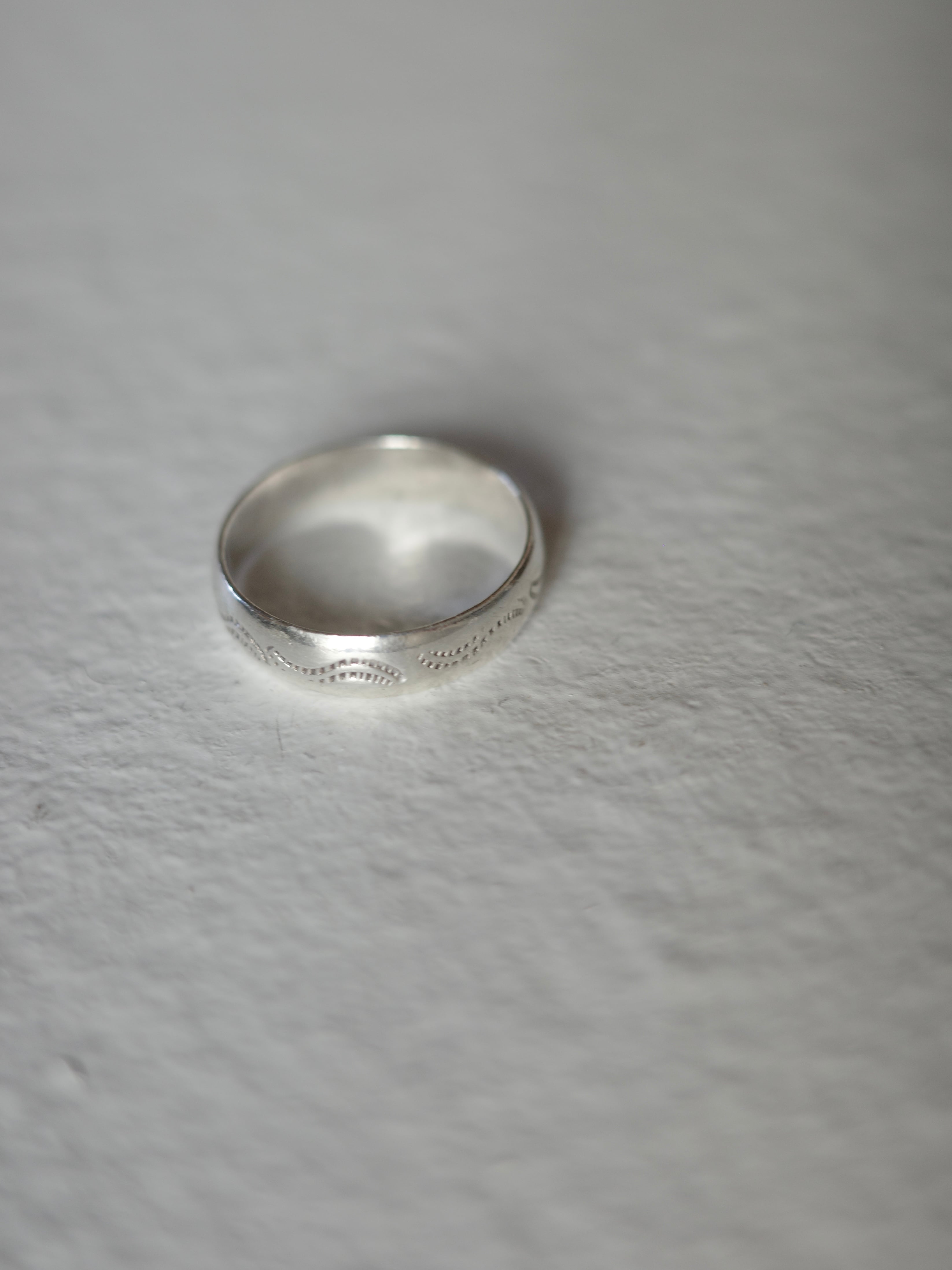 アメリカより仕入れたヴィンテージリングです。さりげなく繊細な刻印が施されたネイティブアメリカンなデザインが素敵です。