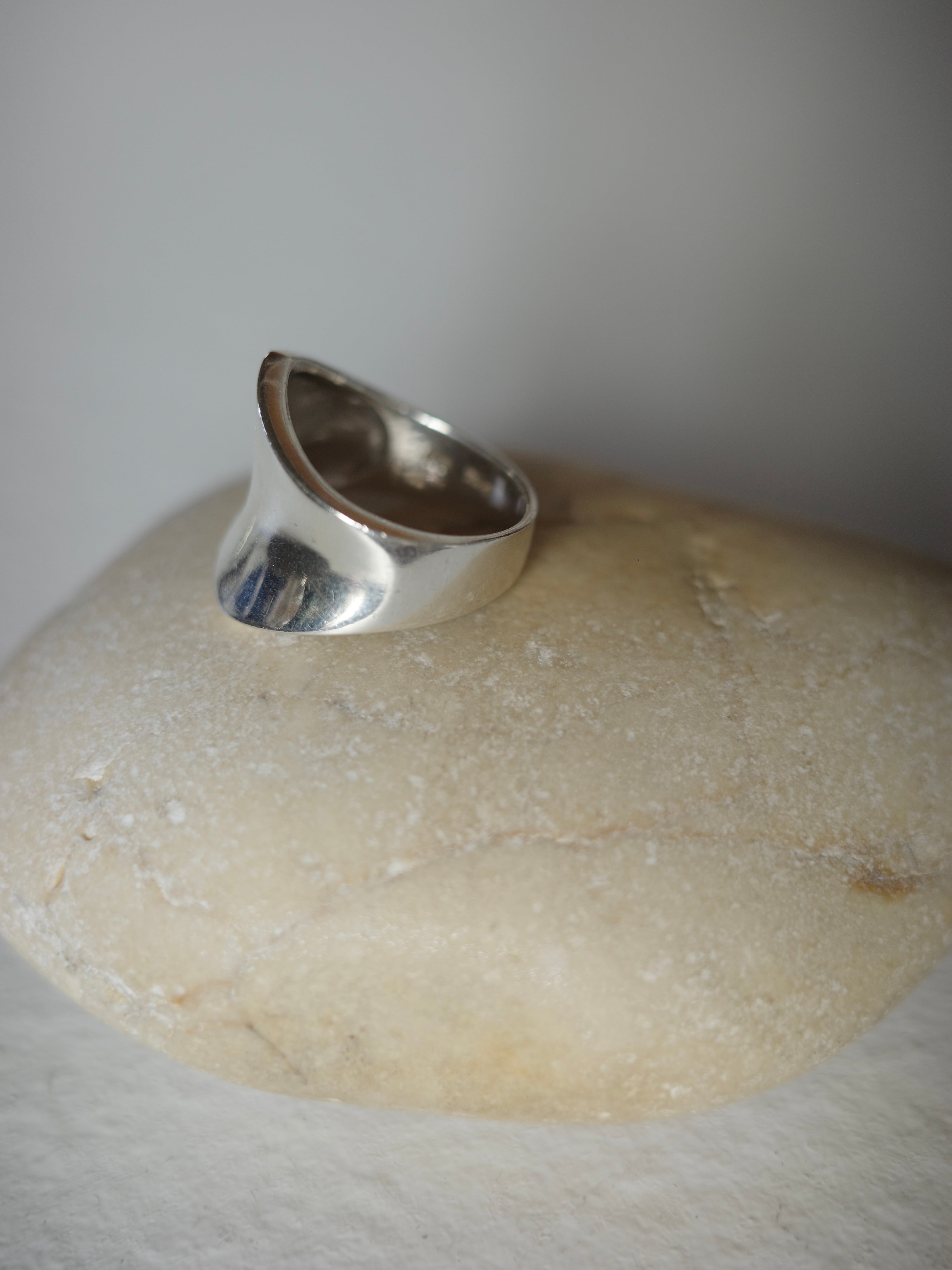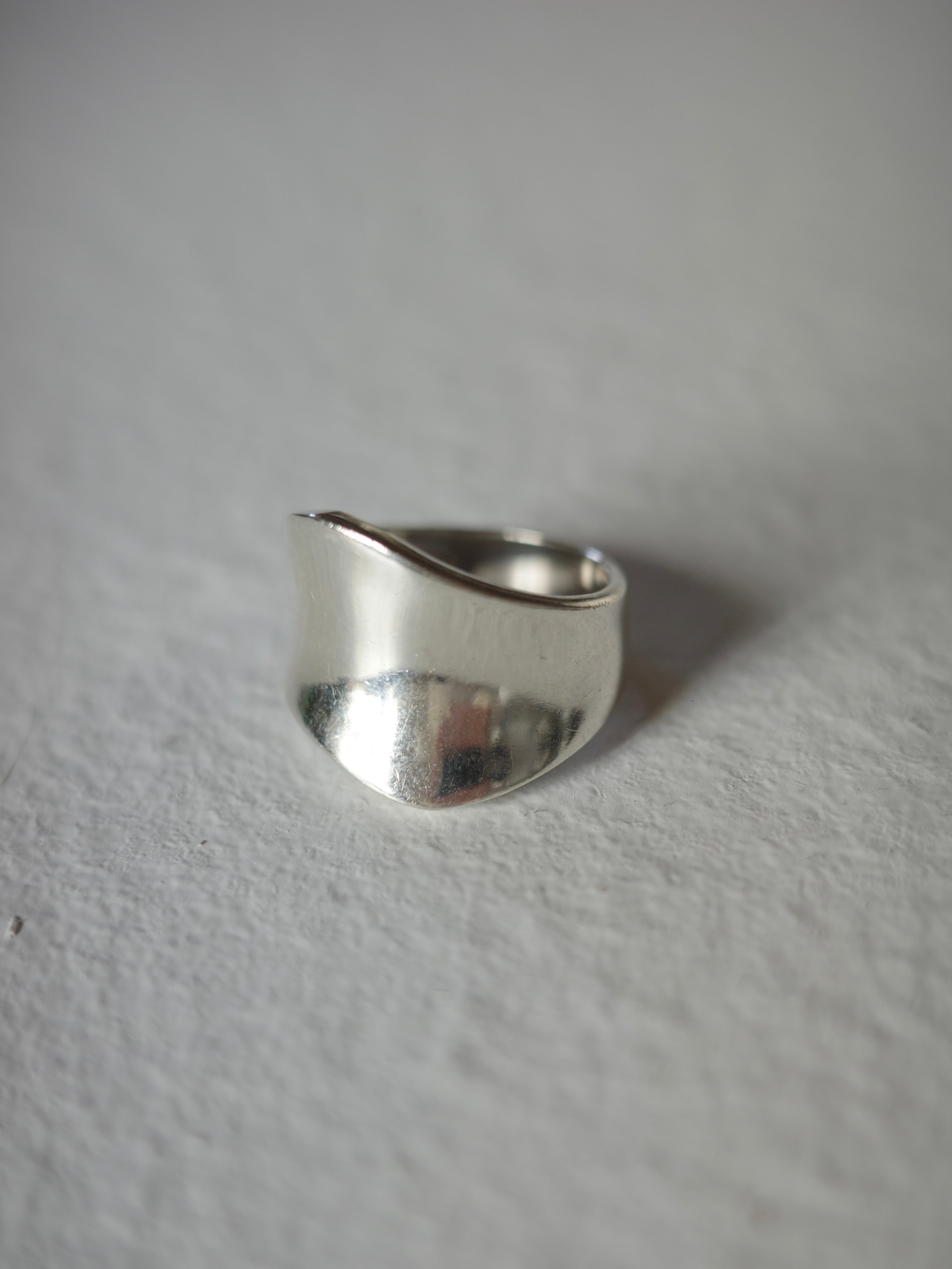 アメリカより仕入れたヴィンテージリングです。ワイドで厚みもあり重厚感のあるリングです、歪で滑らかな曲線デザインが雰囲気のあるアイテムです。