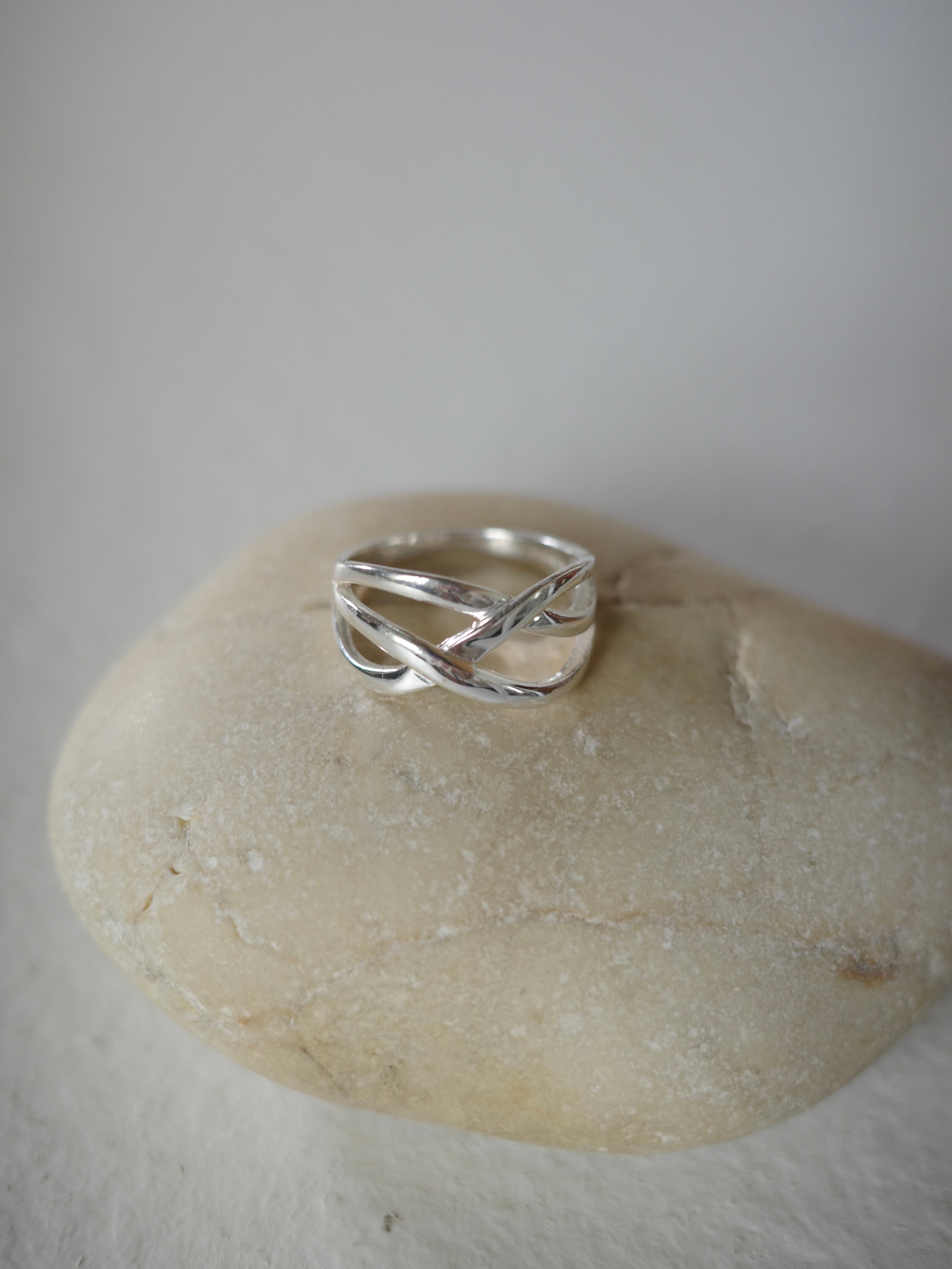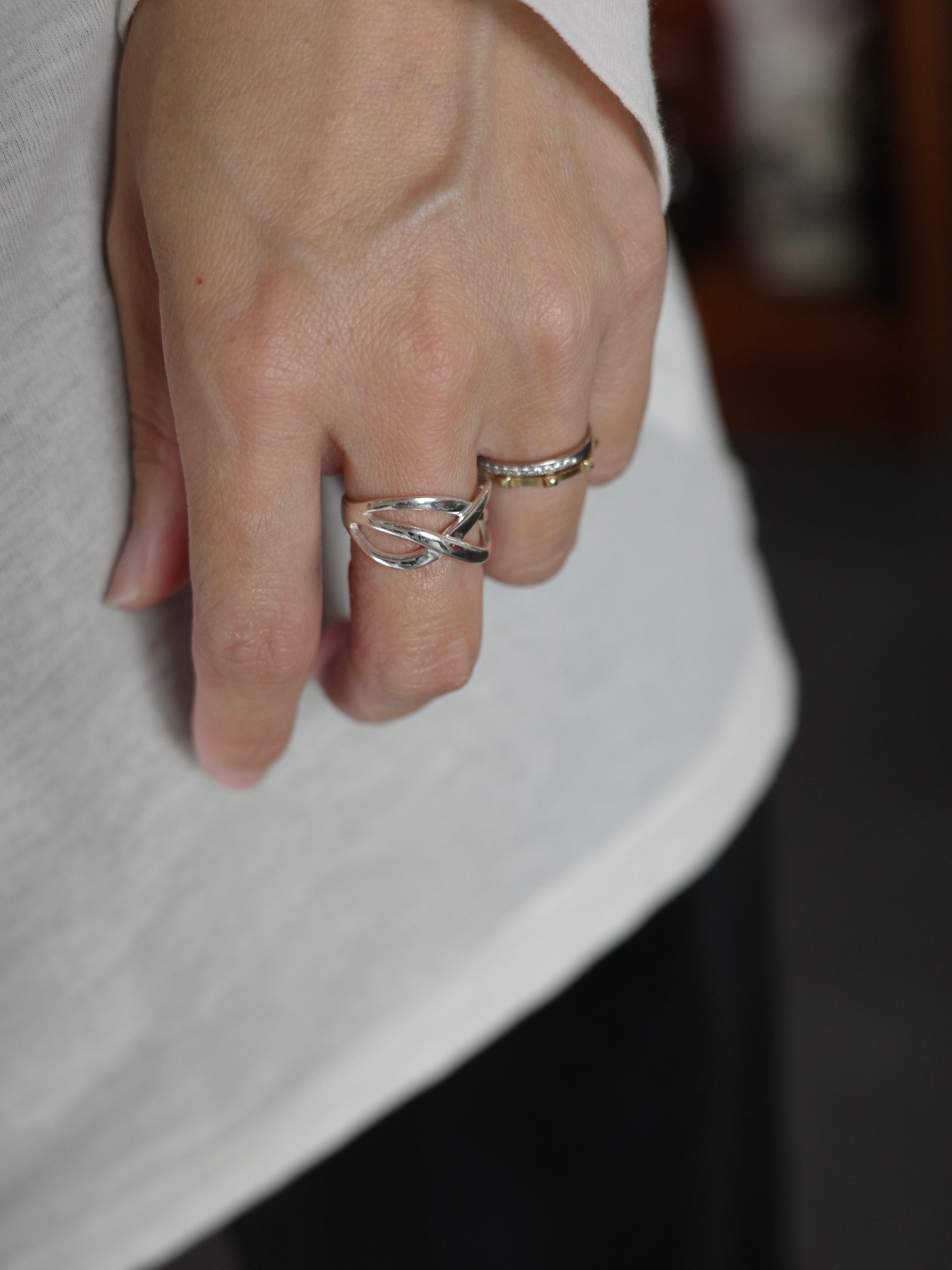 アメリカより仕入れたヴィンテージリングです。3本のラインが曲線的に絡み合ったようなデザインで、ボリューム感がありつつも抜け感もあり上品に着用頂けるデザインです。