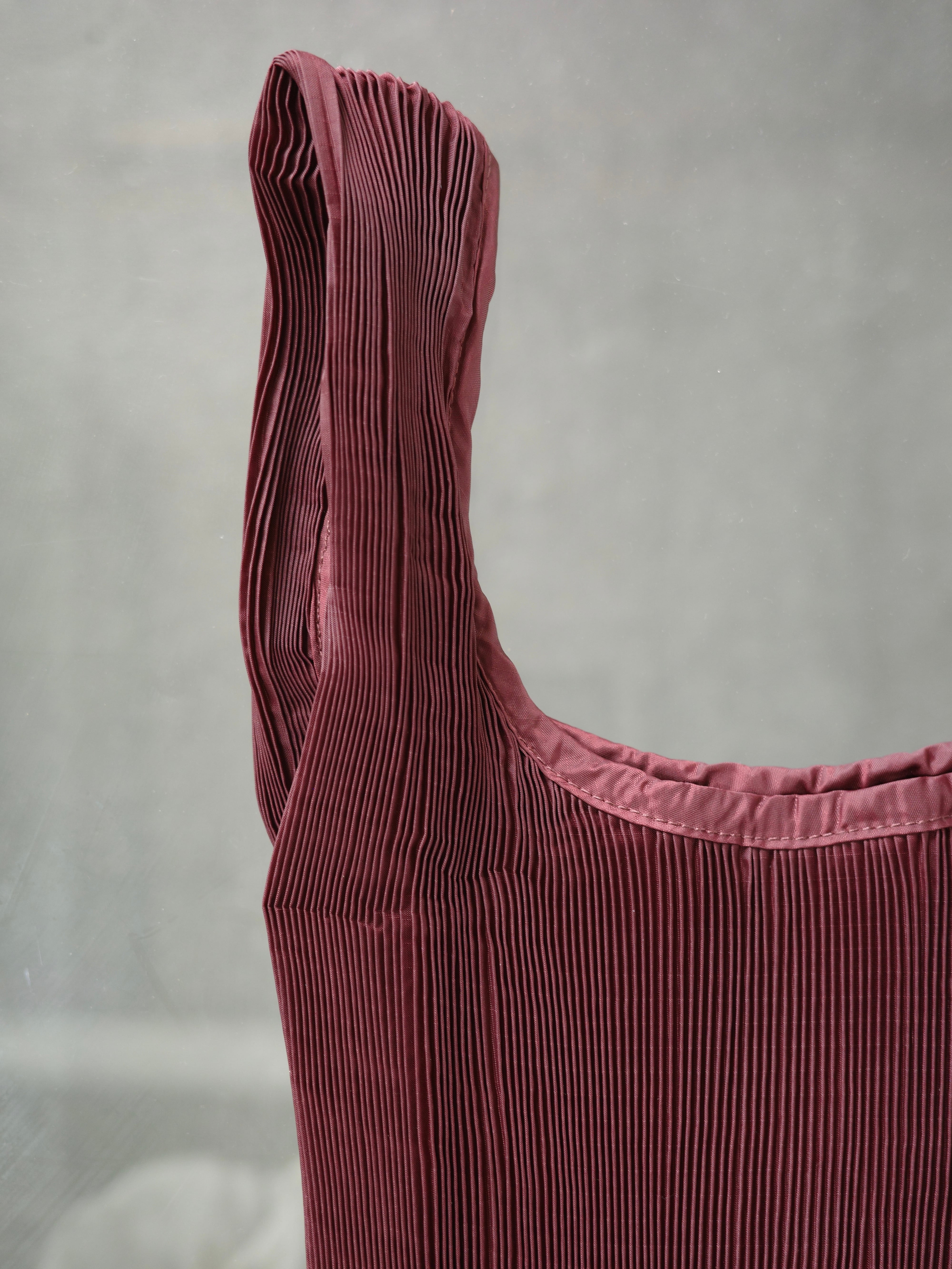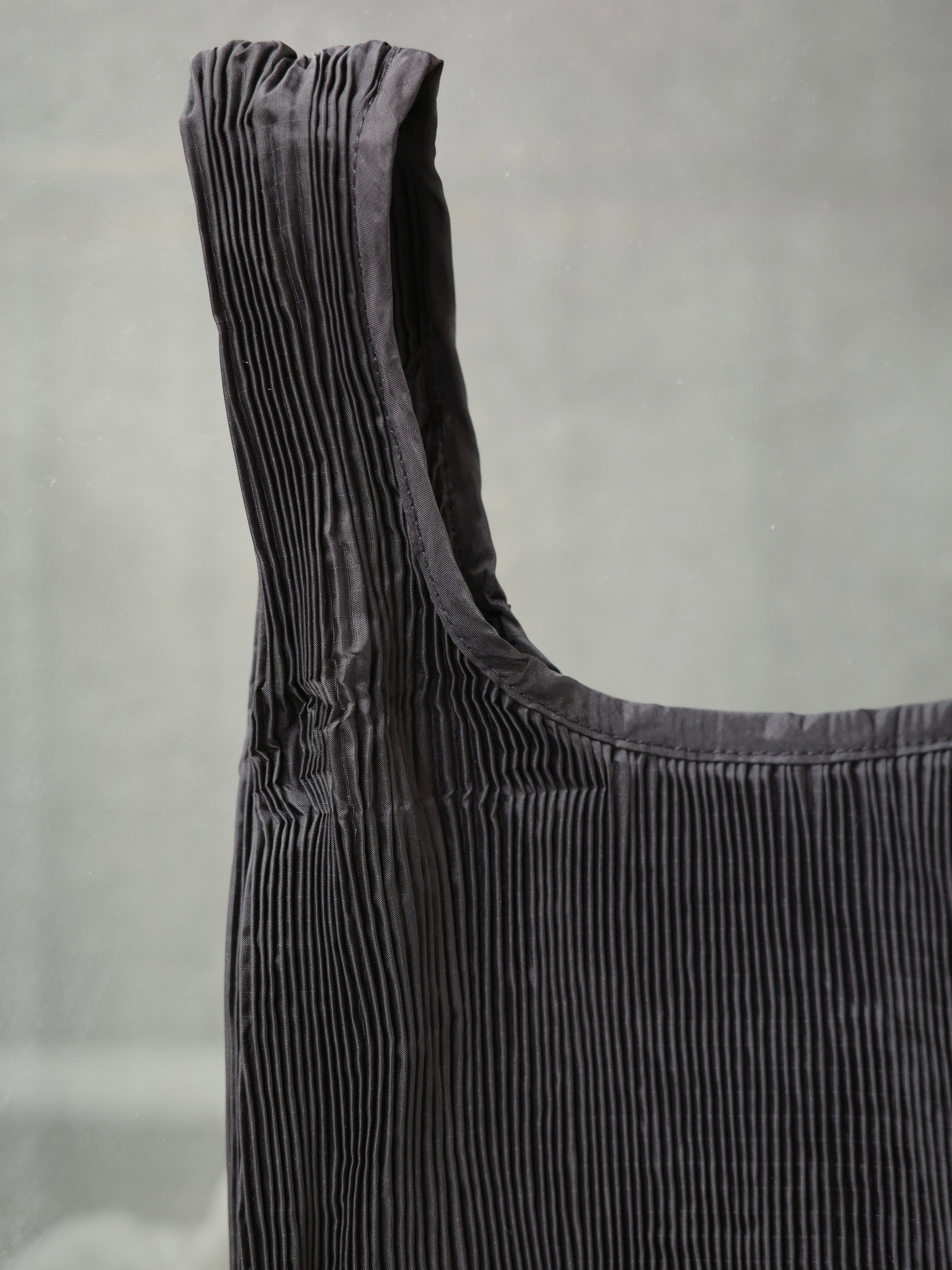 2025 Holiday collectionの、プリーツデザインの折りたたみバッグです。従来のエコバッグをよりファッショナブルに進化させたデザインで、サブバッグとしておしゃれにもっていただけます。巾着袋がセットになっているので、持ち運びにも便利ですし、巾着バッグはポーチとして小物を入れて使うのもおすすめです。