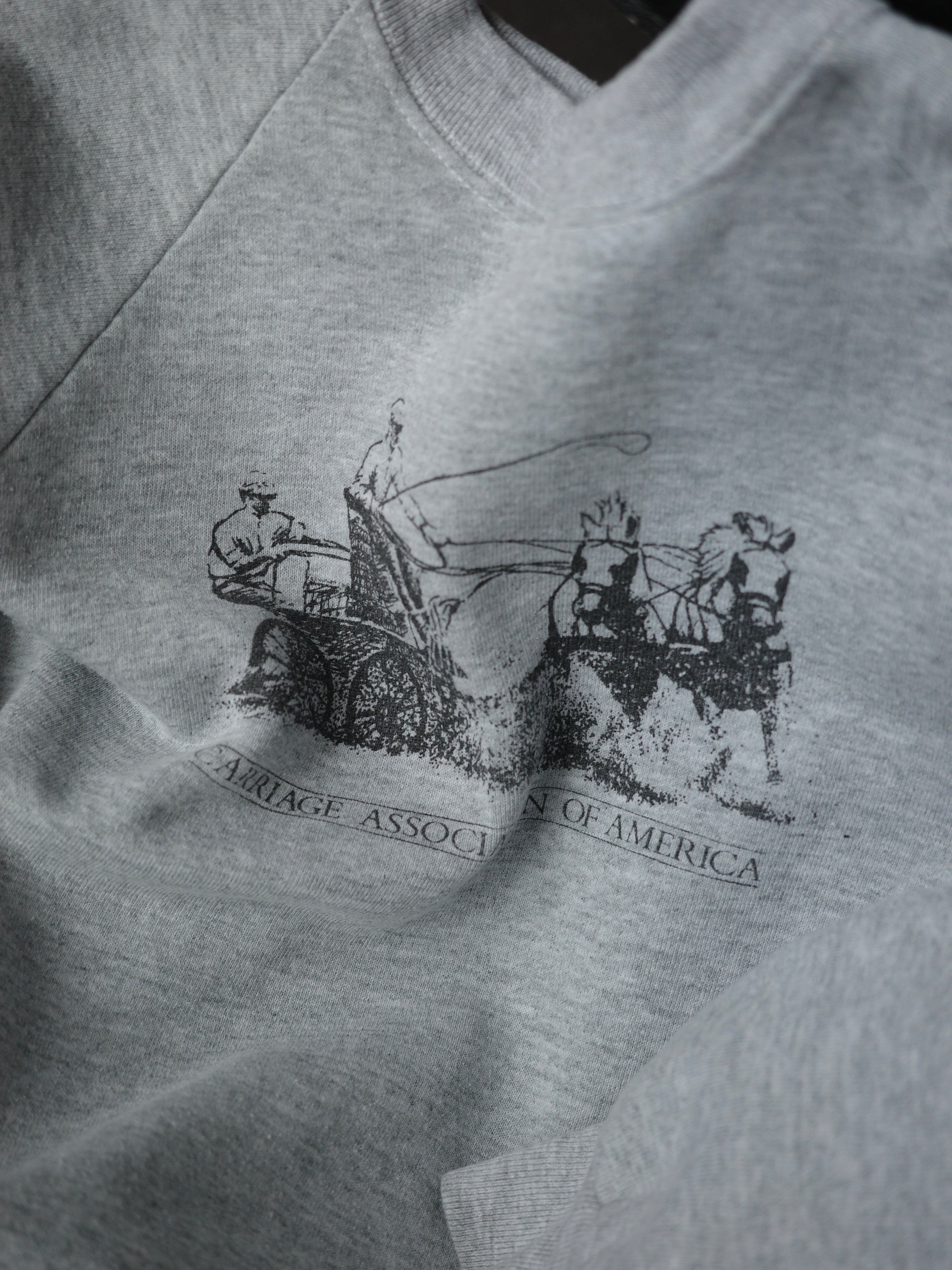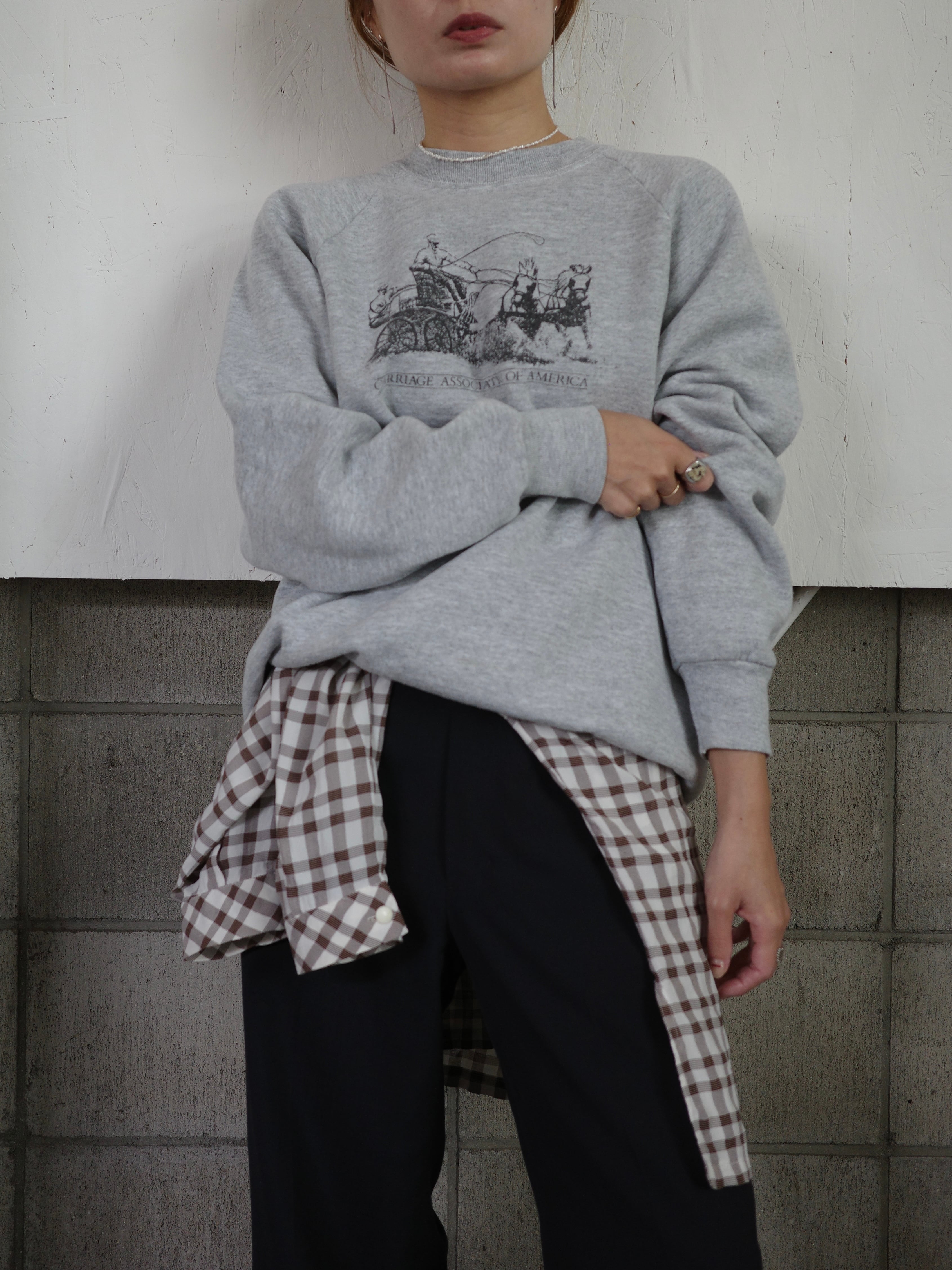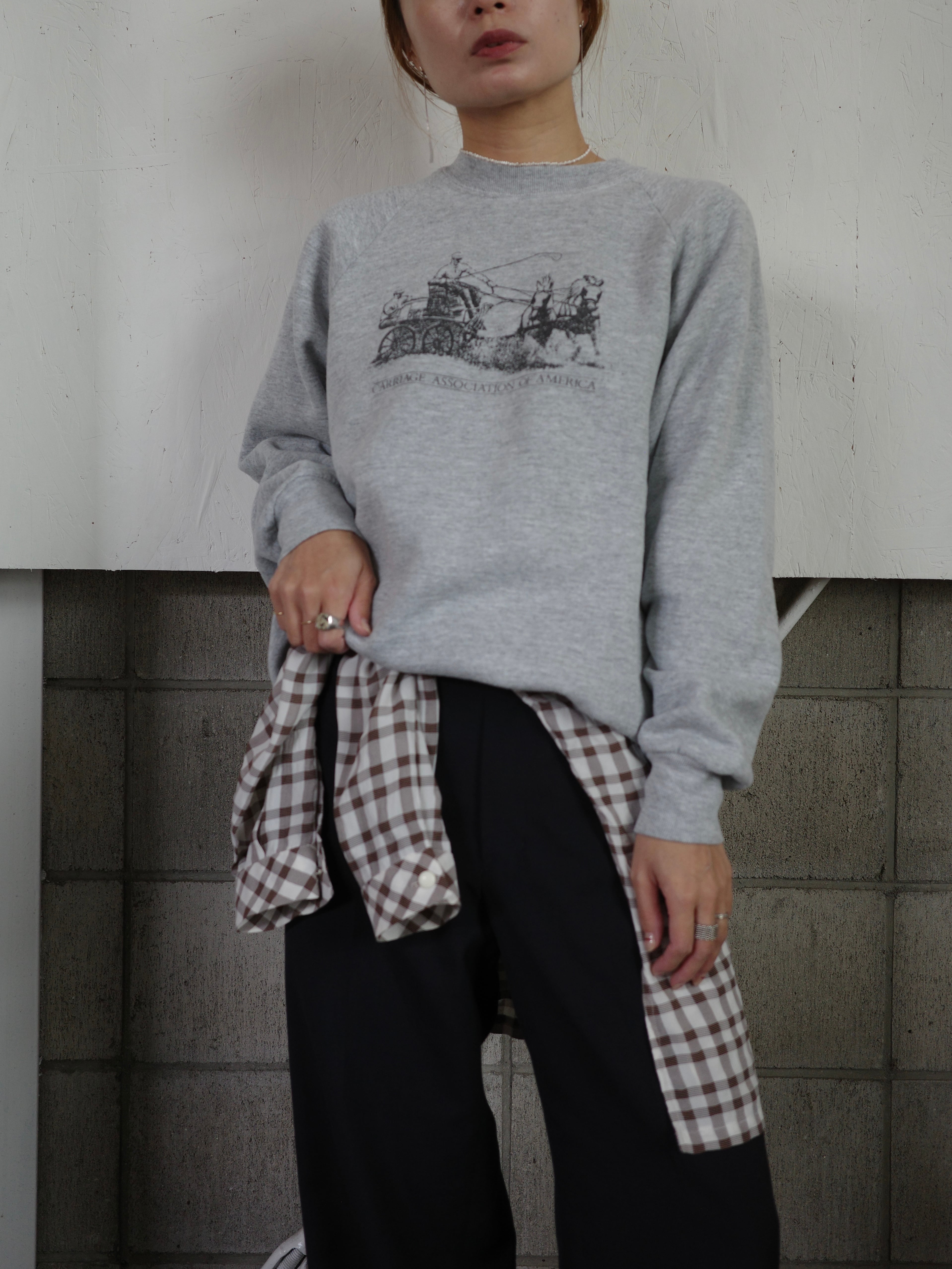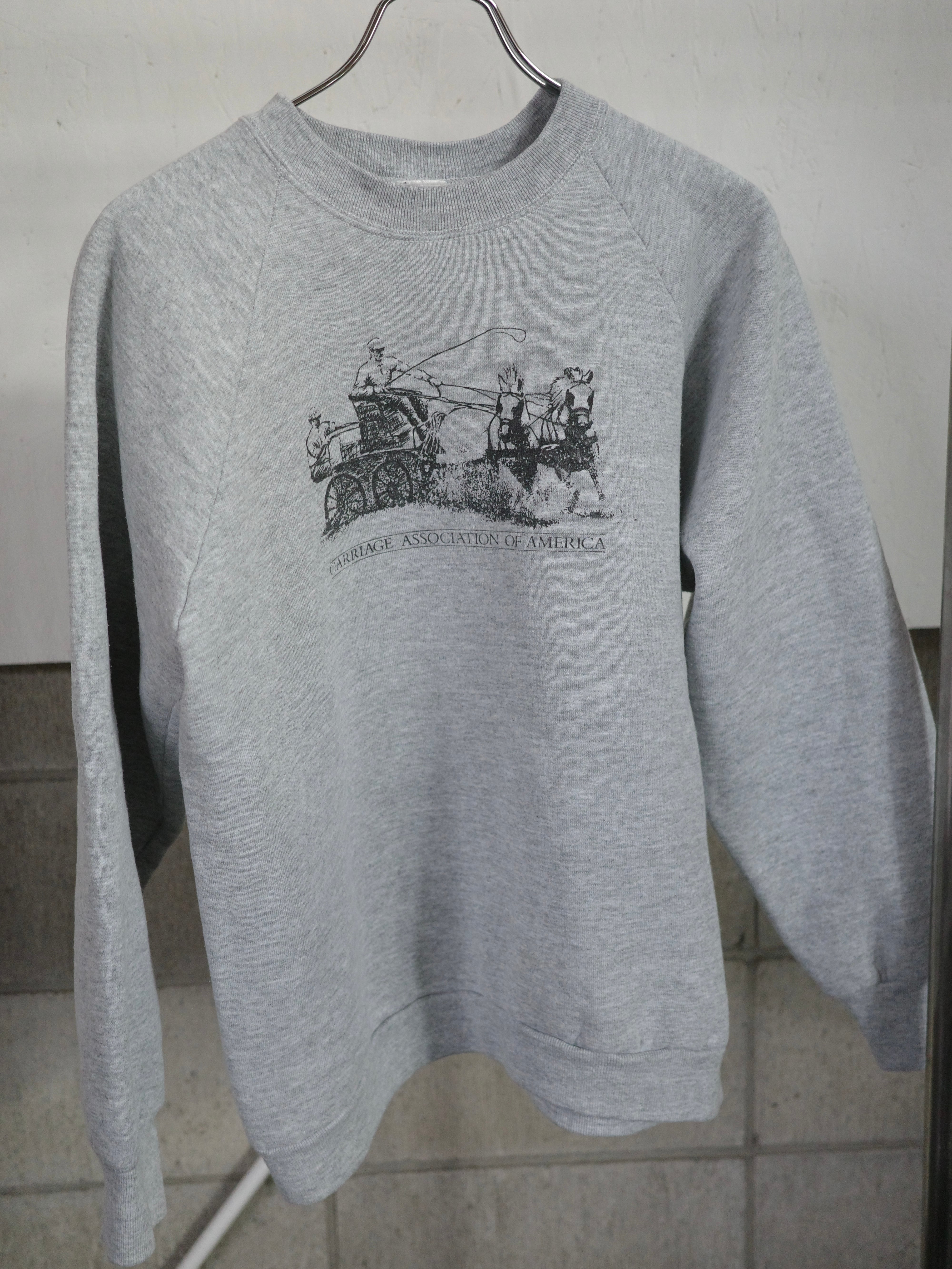 90年代Fruit of the roomのスウェットです。ラグランの形になっています。コンパクトなサイズ感で控えめなフォトプリントなので、スウェットでもカジュアルになりすぎないデザインです。
