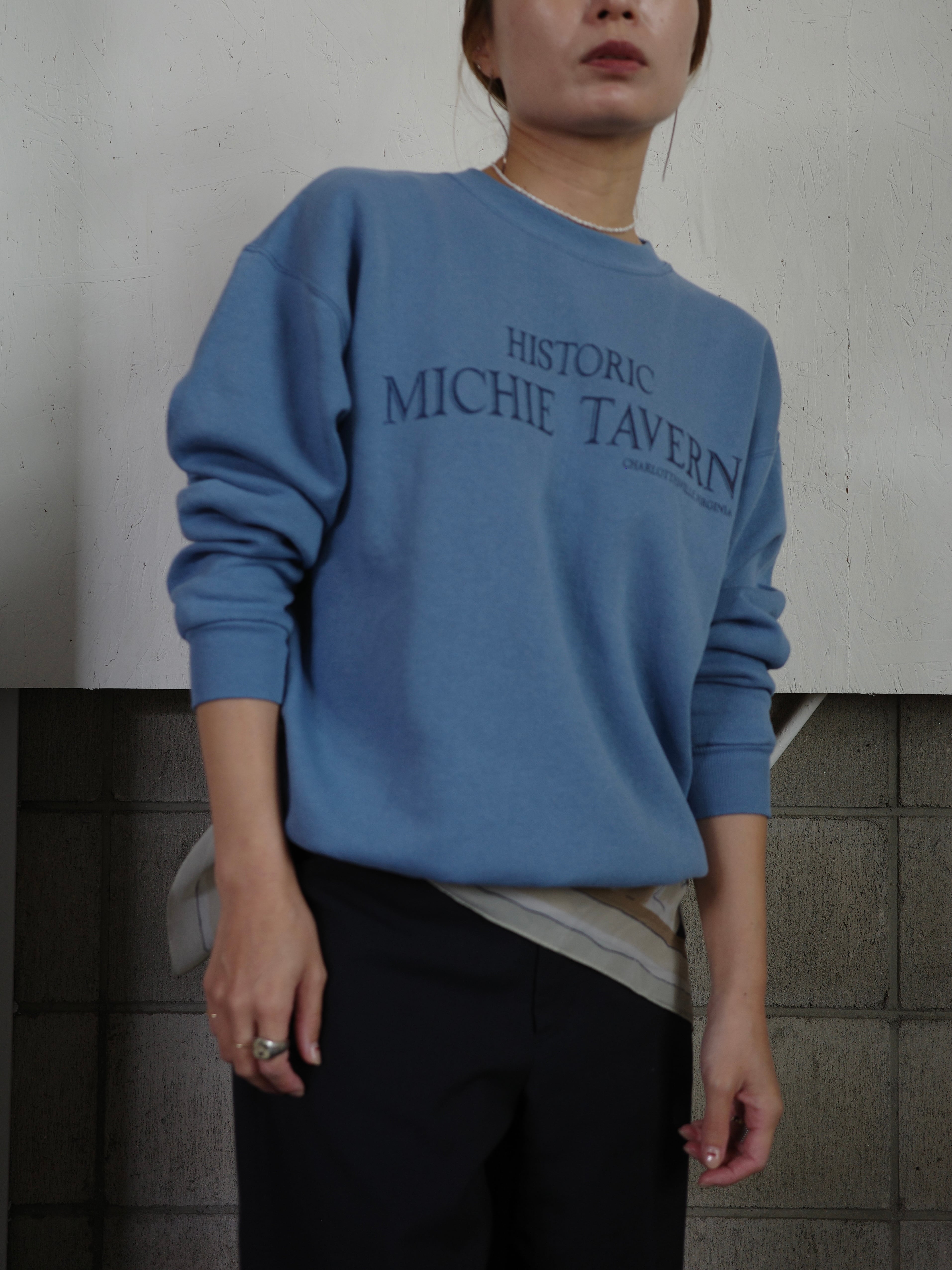 コンパクトなサイズ感とシャープなロゴのフォントで、大人っぽく着用できます。絶妙なブルーカラーが差し色になり、1枚で着ても、ジャケットやアウターのインナーとしてもアクセントになります。