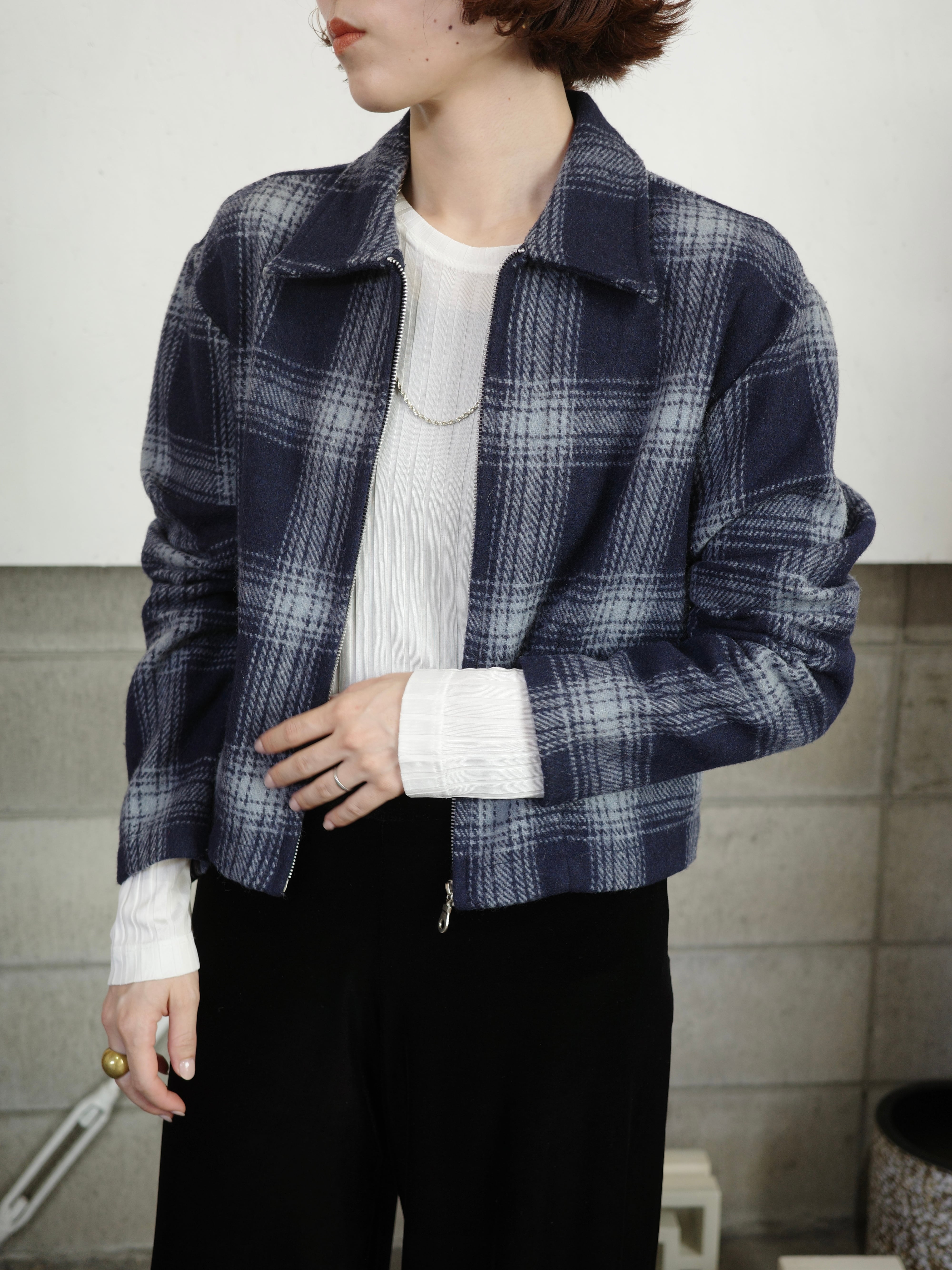 ウールのショート丈ブルゾンです。軽くてさらっと羽織れるのにウールで暖かく、長い期間着ていただけます。こんなパクトなサイズ感なのでワイドなパンツやスカートと相性が良く、小柄な方もバランスのとりやすいアイテムです。