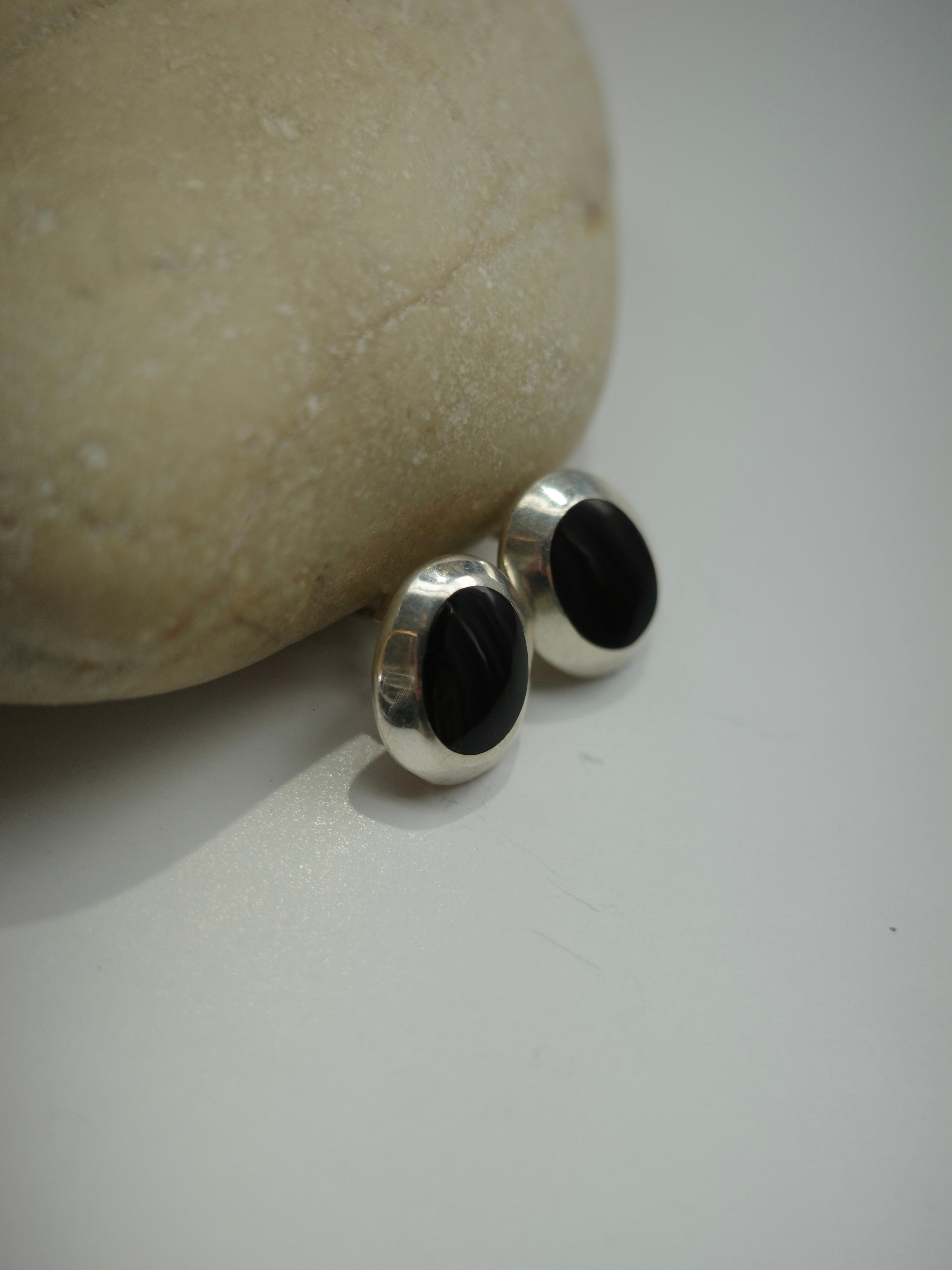 アメリカより仕入れたヴィンテージピアスです。シンプルなオーバル型のオニキスです。ボリューム感がありすぎないので着用しやすく、顔まわりを引き締まった印象にしてくれます。