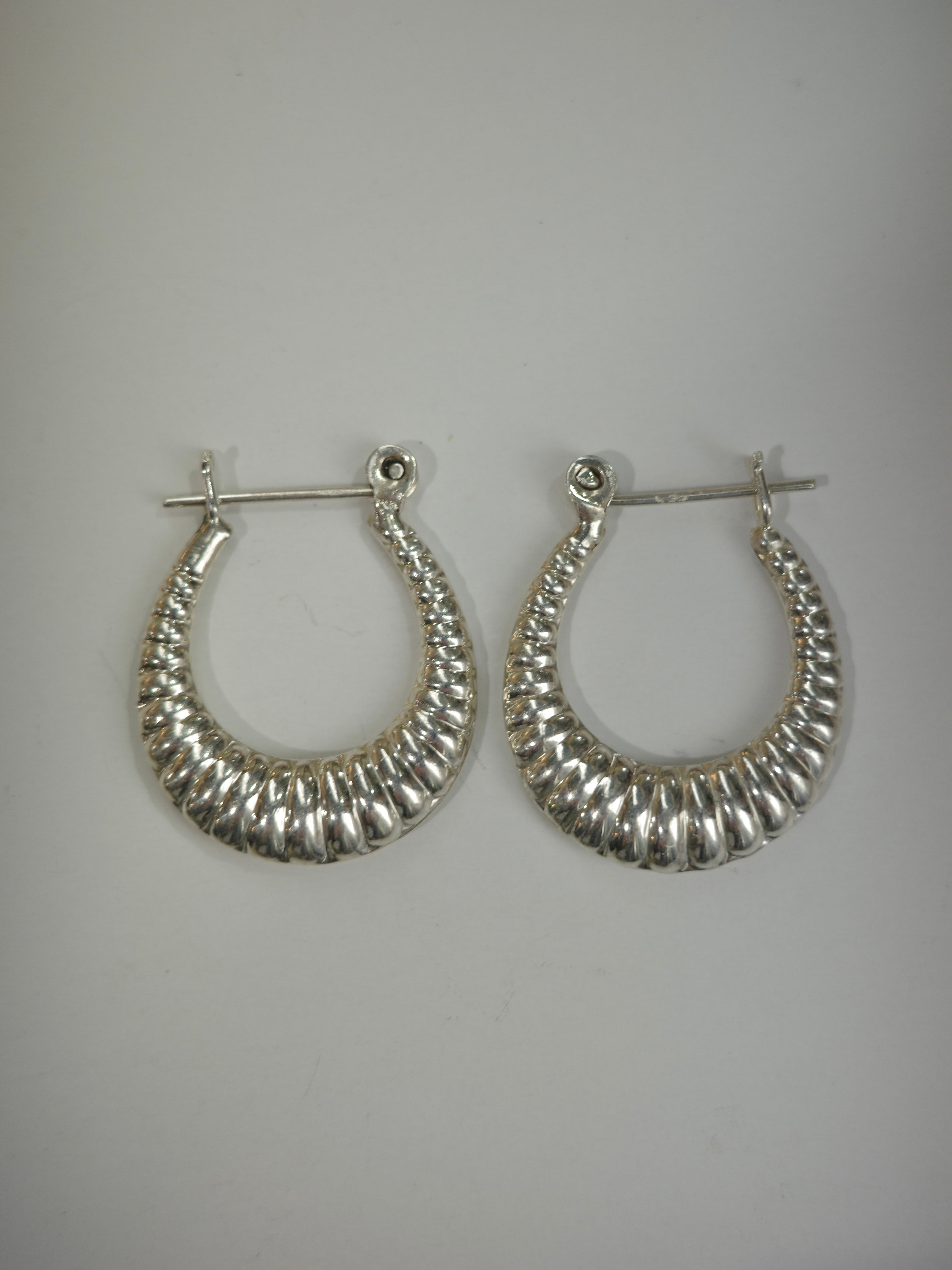 アメリカより仕入れたヴィンテージピアスです。ヴィンテージの定番であるリブデザインのフープは一つは持っておきたいアイテム。中空なので軽位付け心地で、デイリーに着用いただけます。