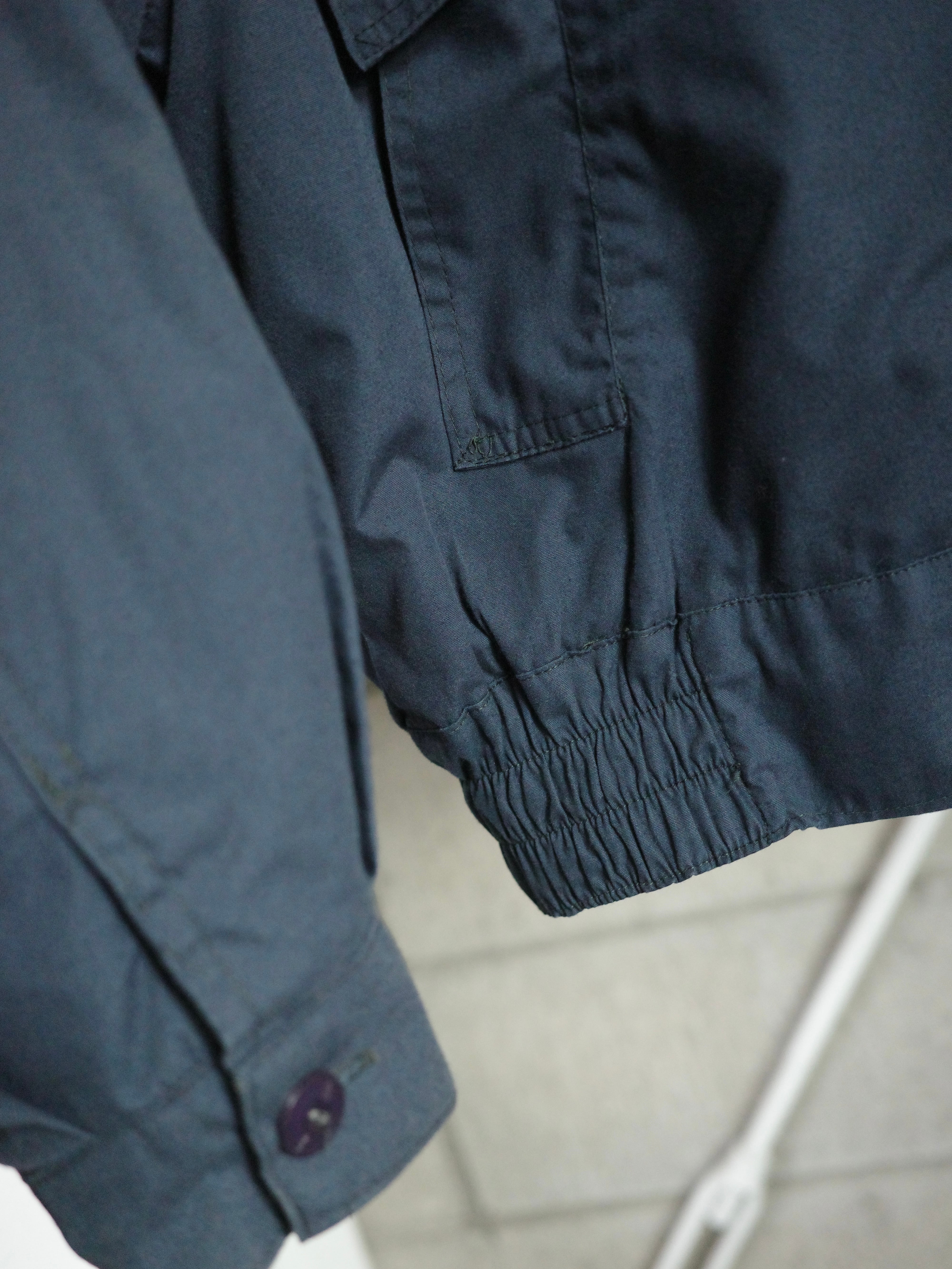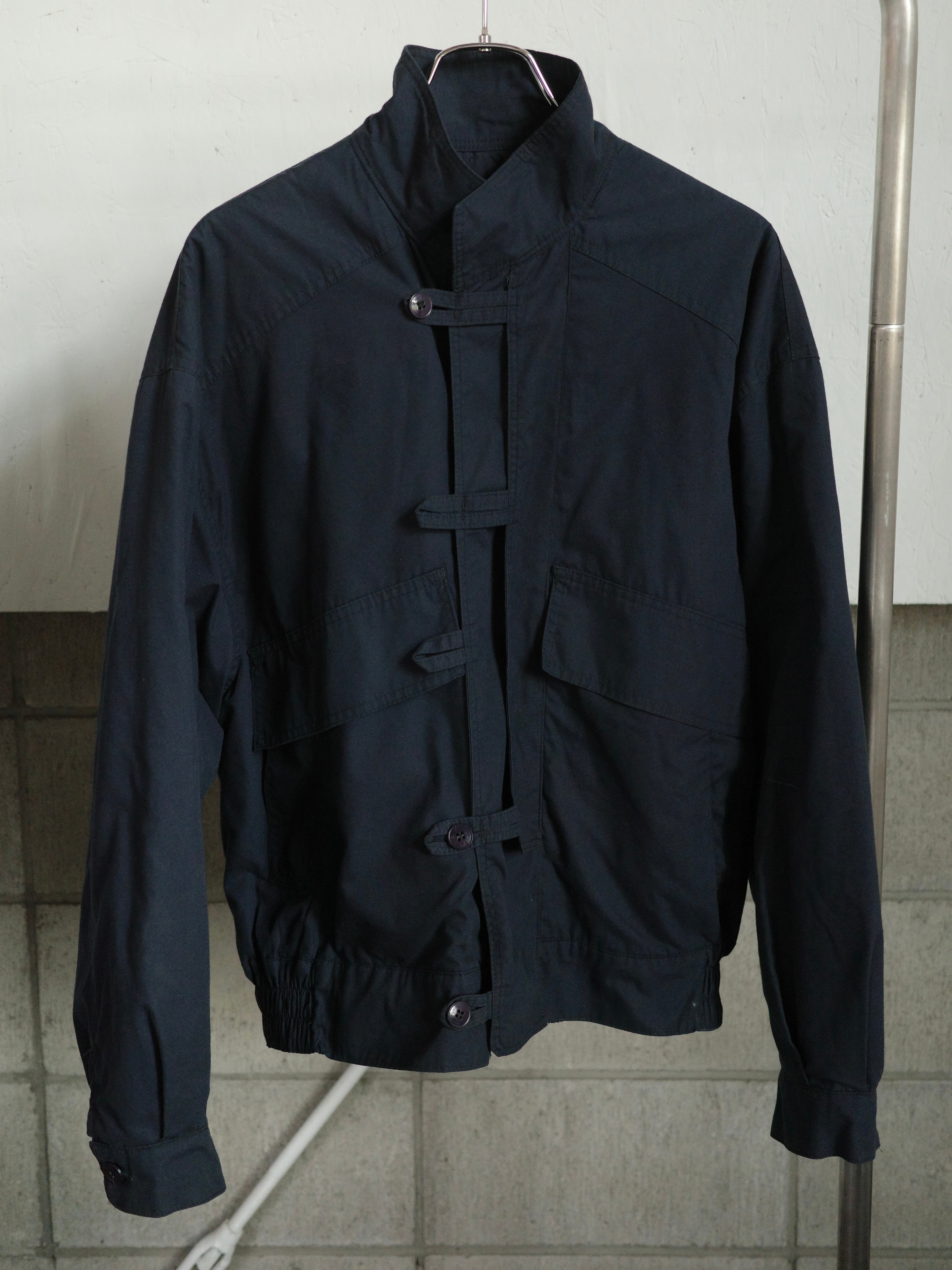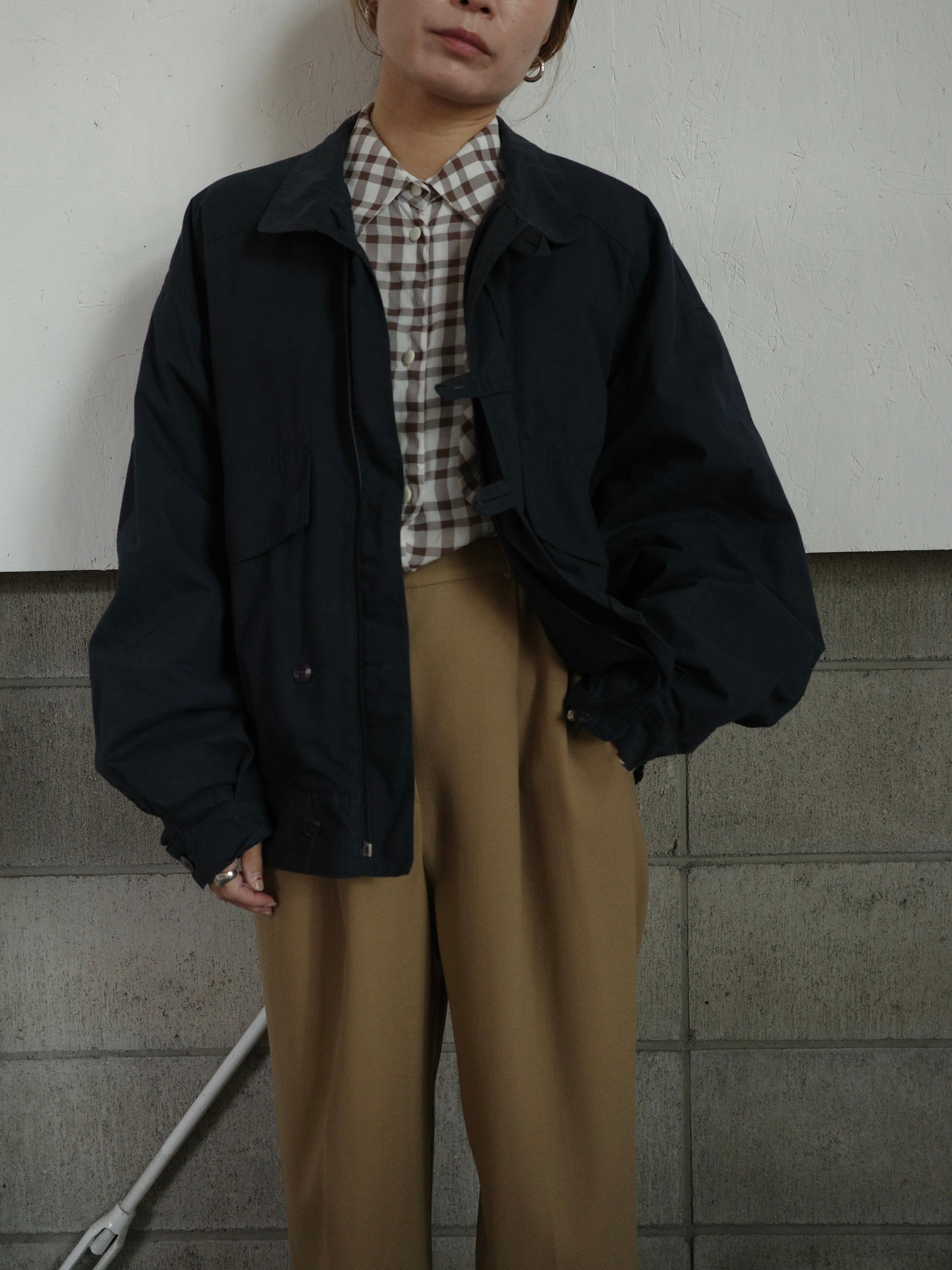ネイビーのコンパクトなブルゾンです。ボタンループのついたミリタリー調のデザインですが、丸みのあるシルエットが可愛らしさもあるアイテム。中綿キルティングで暖かく、襟を立てて切るのも表情が変わって素敵です。