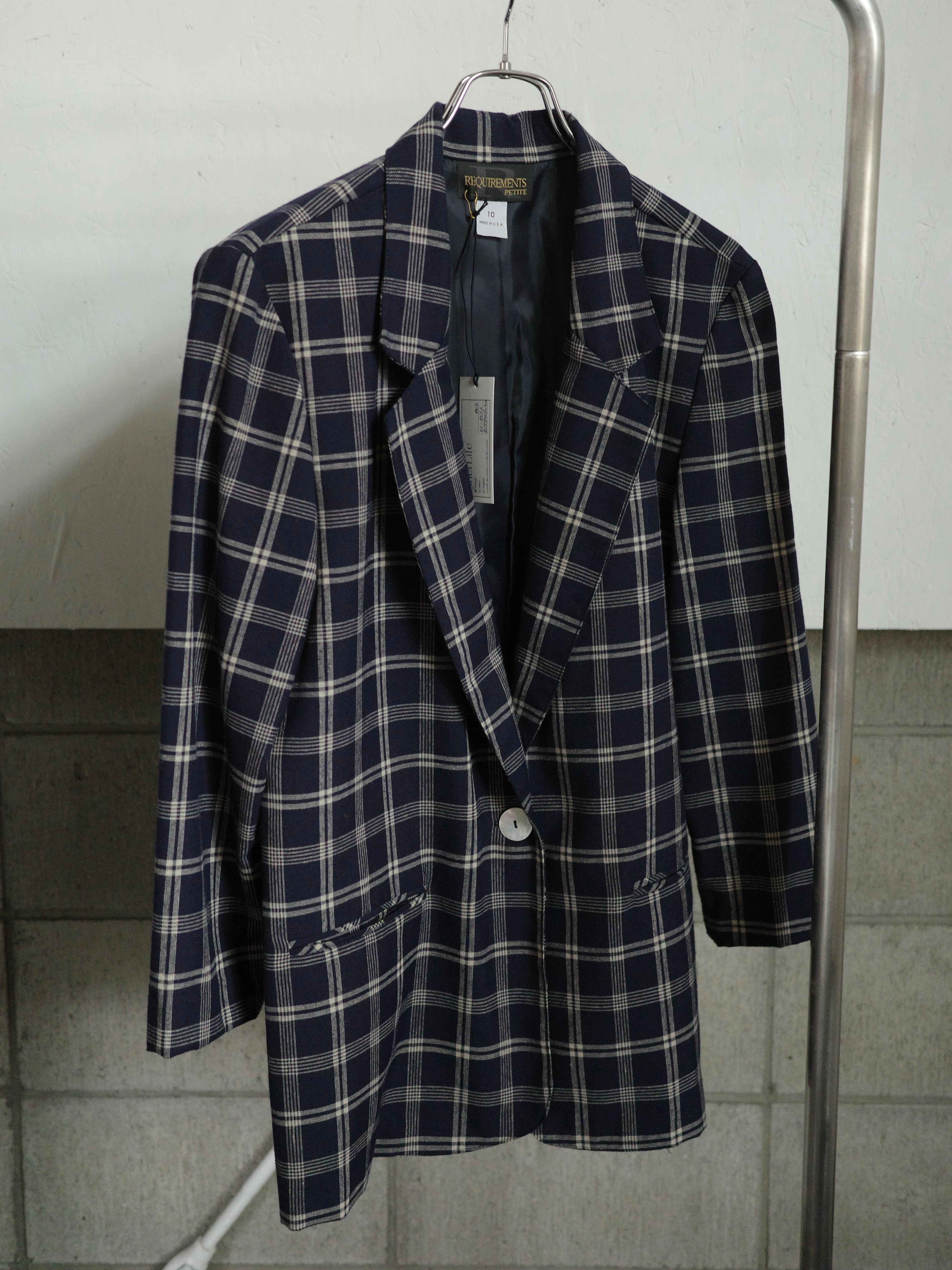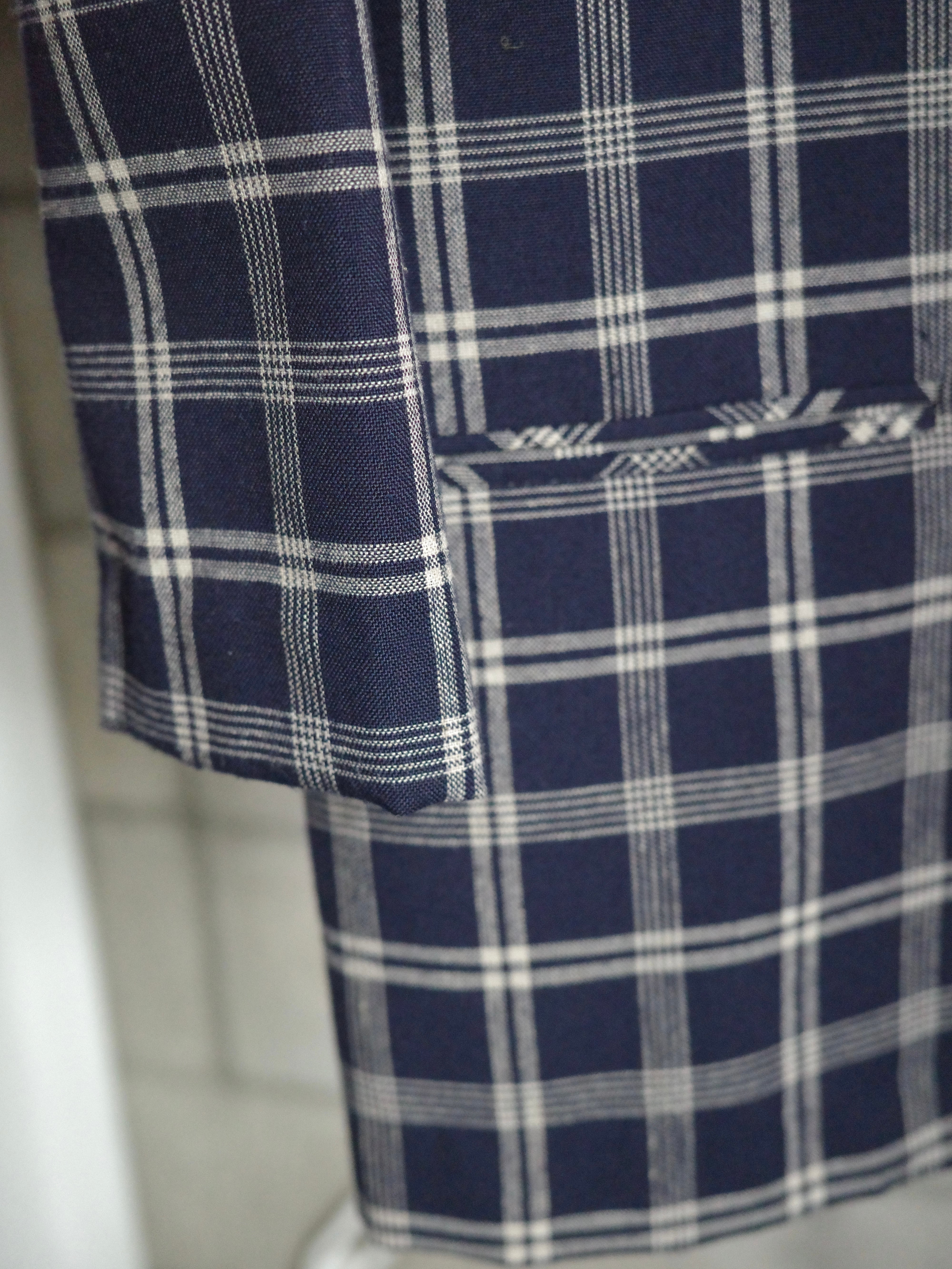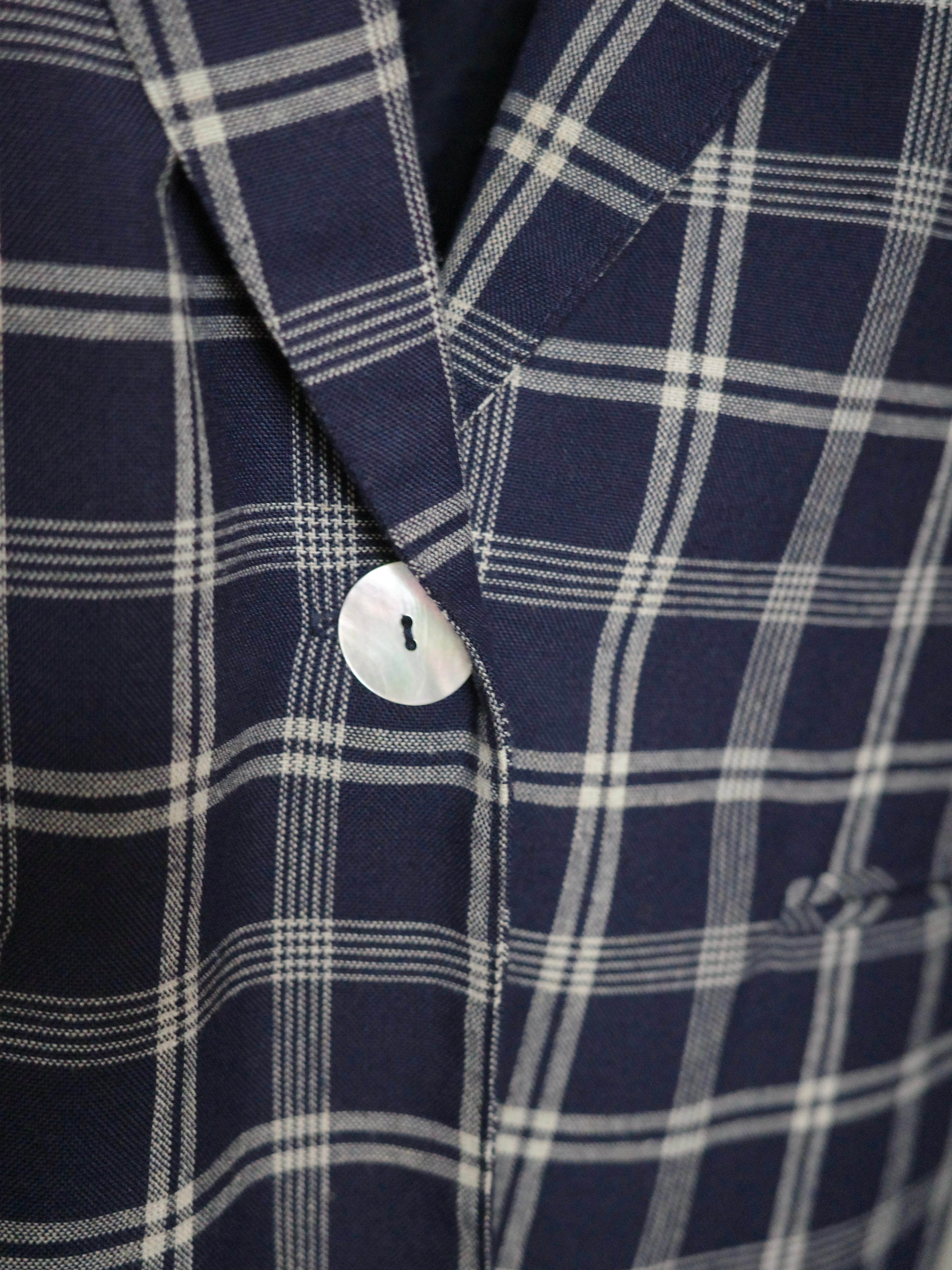 made in USAの薄手のジャケットです。大人なネイビーチェックに、大きな貝ボタンがアクセントになっています。