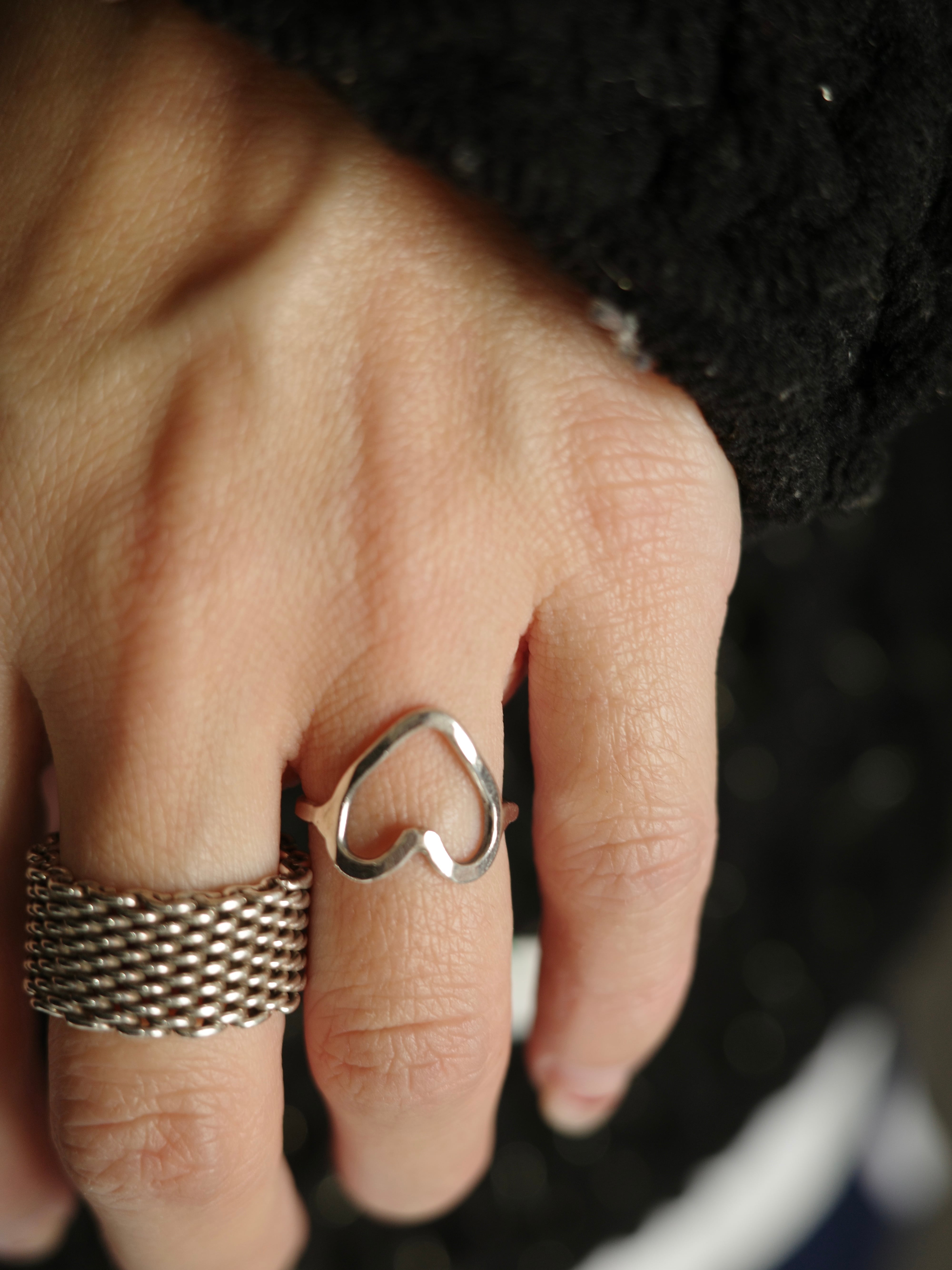 <vintage silver925> heart hammered ring
