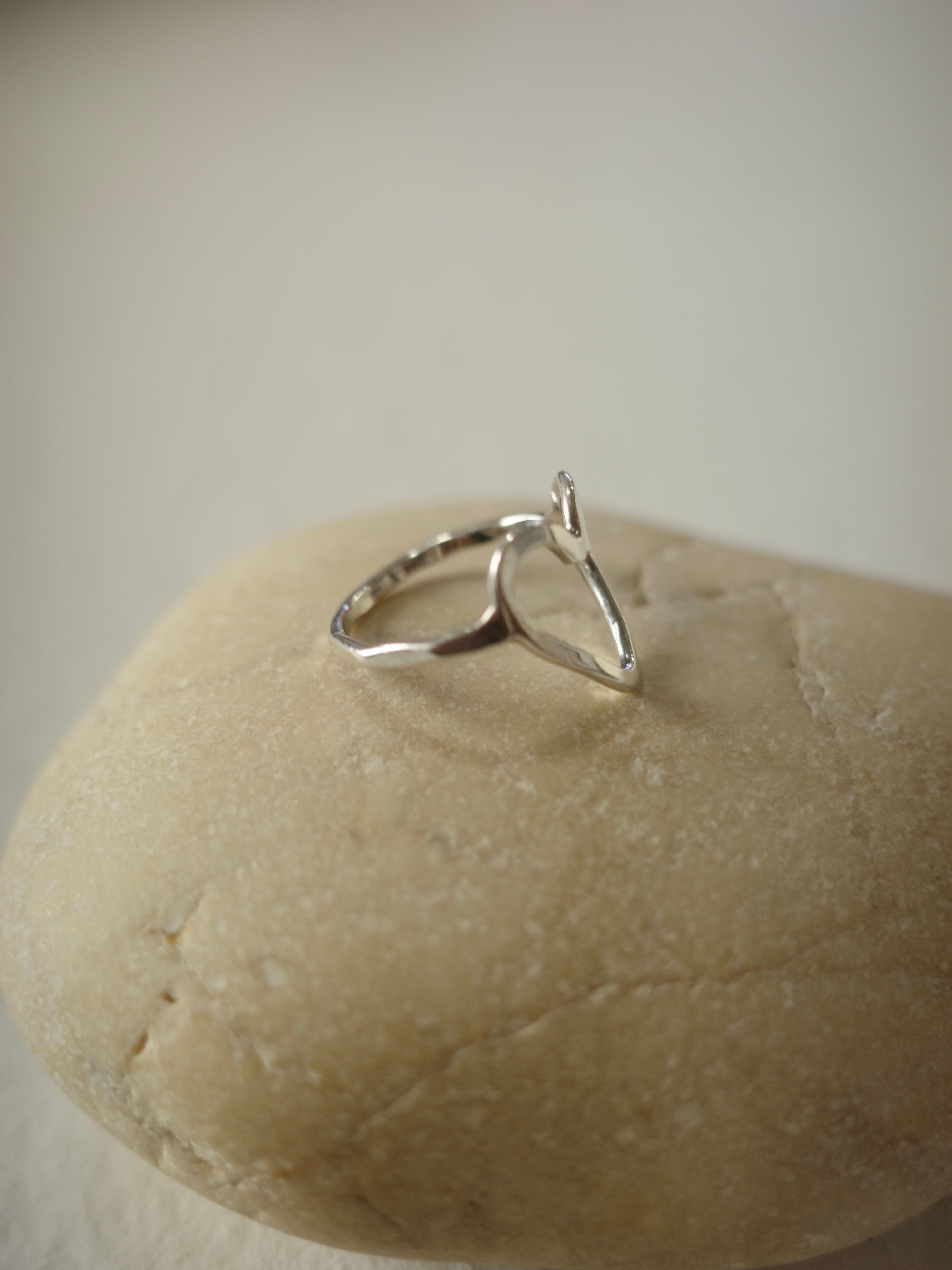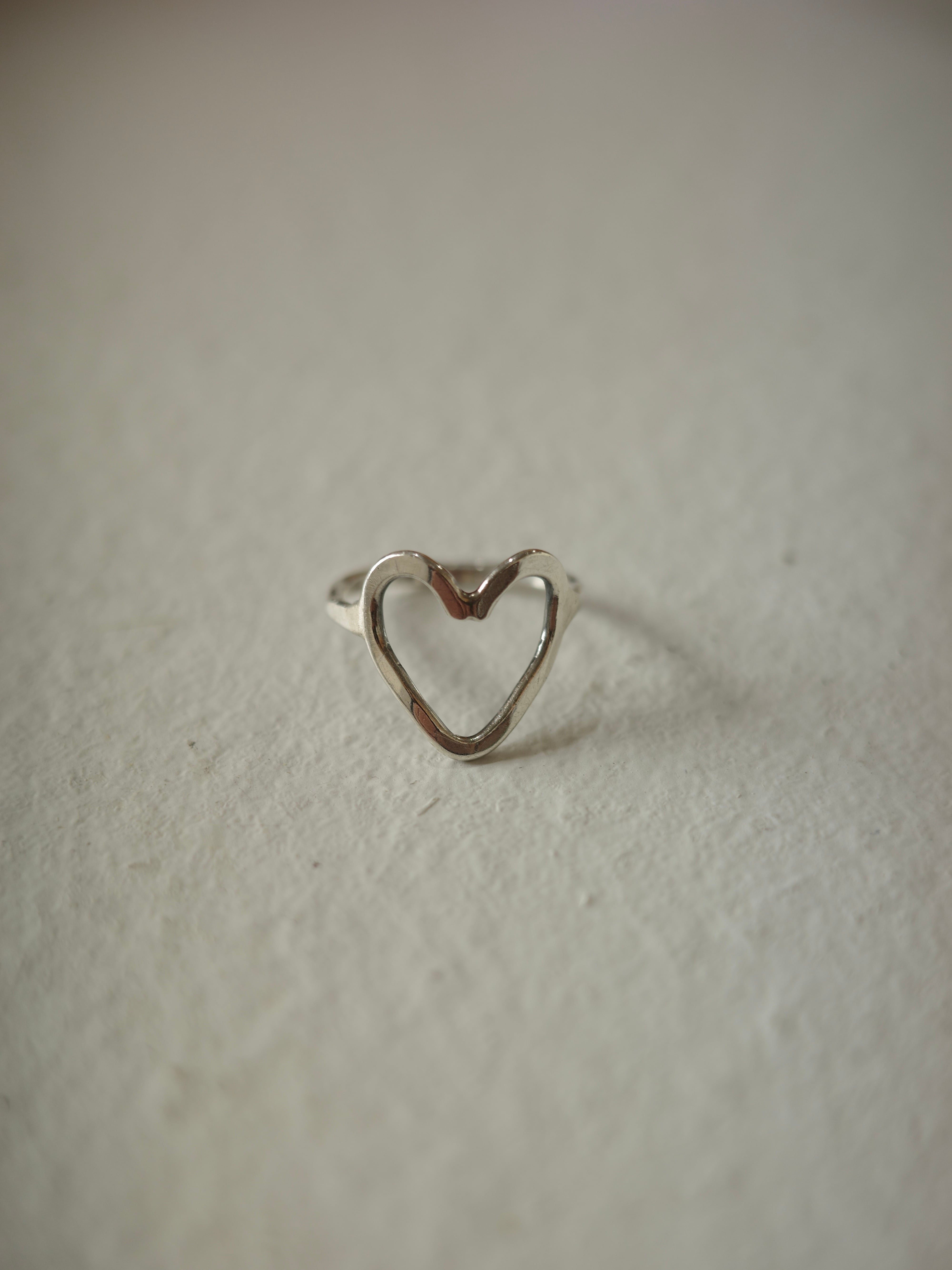 アメリカより仕入れたヴィンテージリングです。全体がハンマー打ちされていて、線形の歪なハート型が味のあるデザインです。