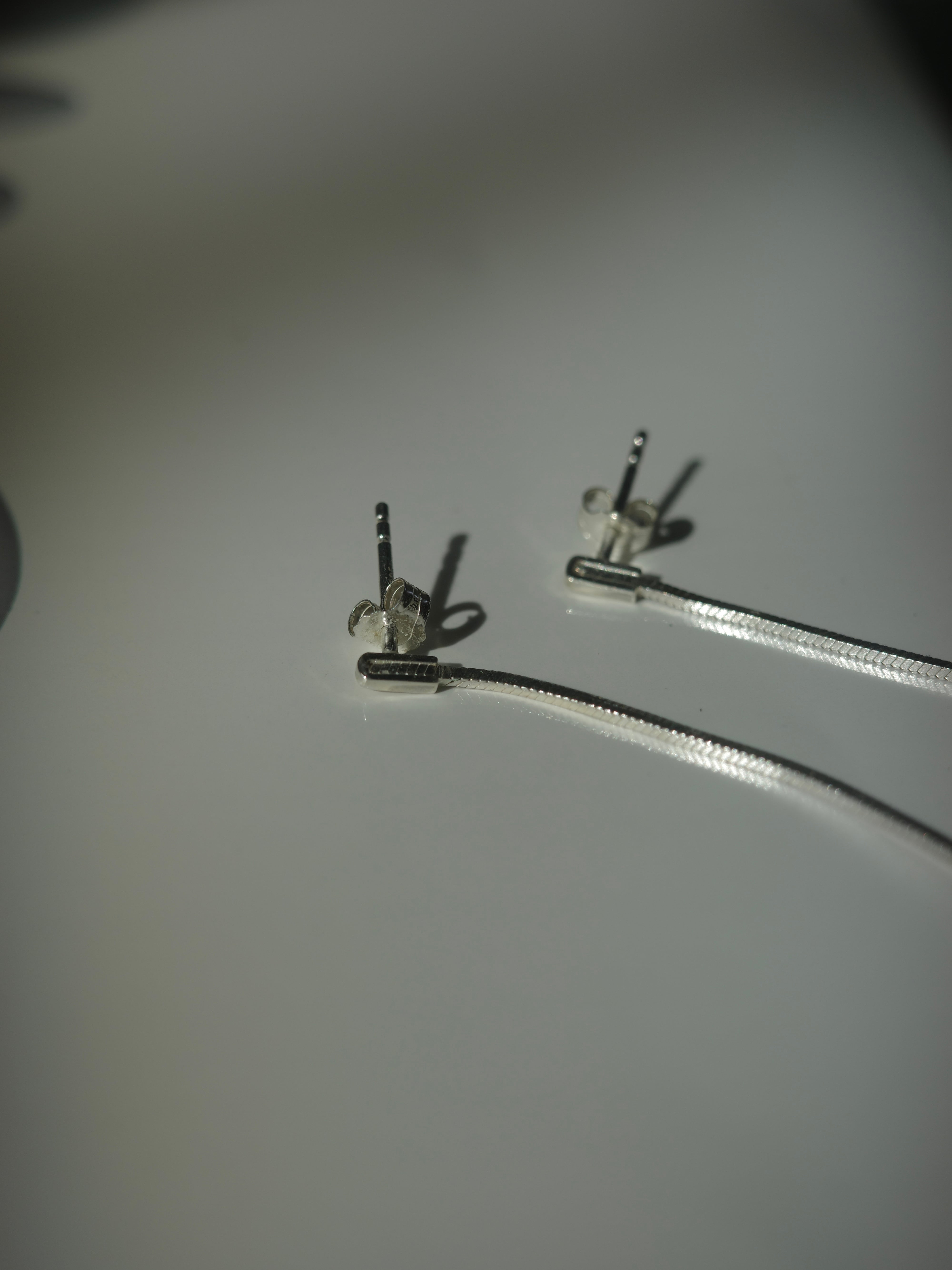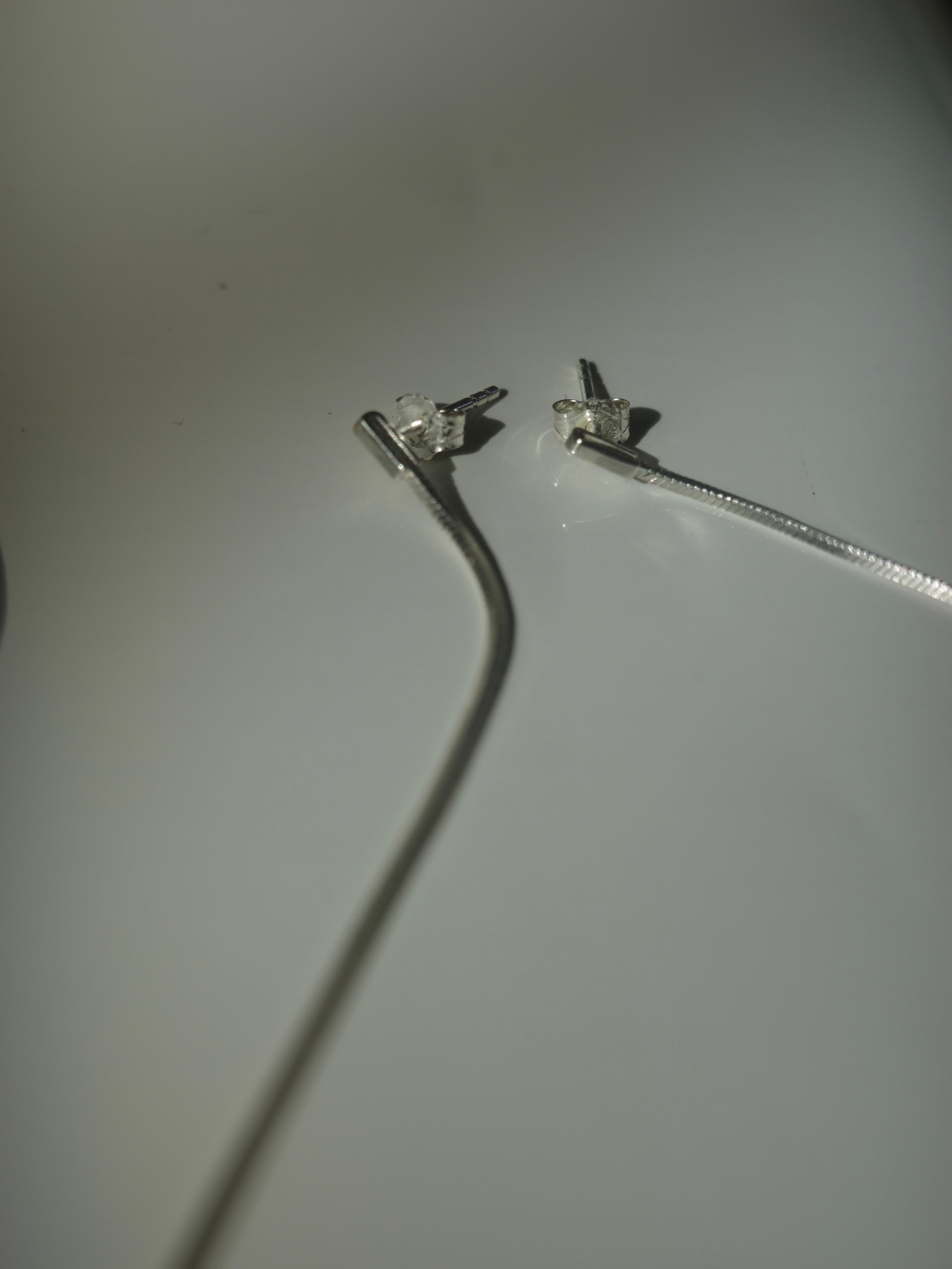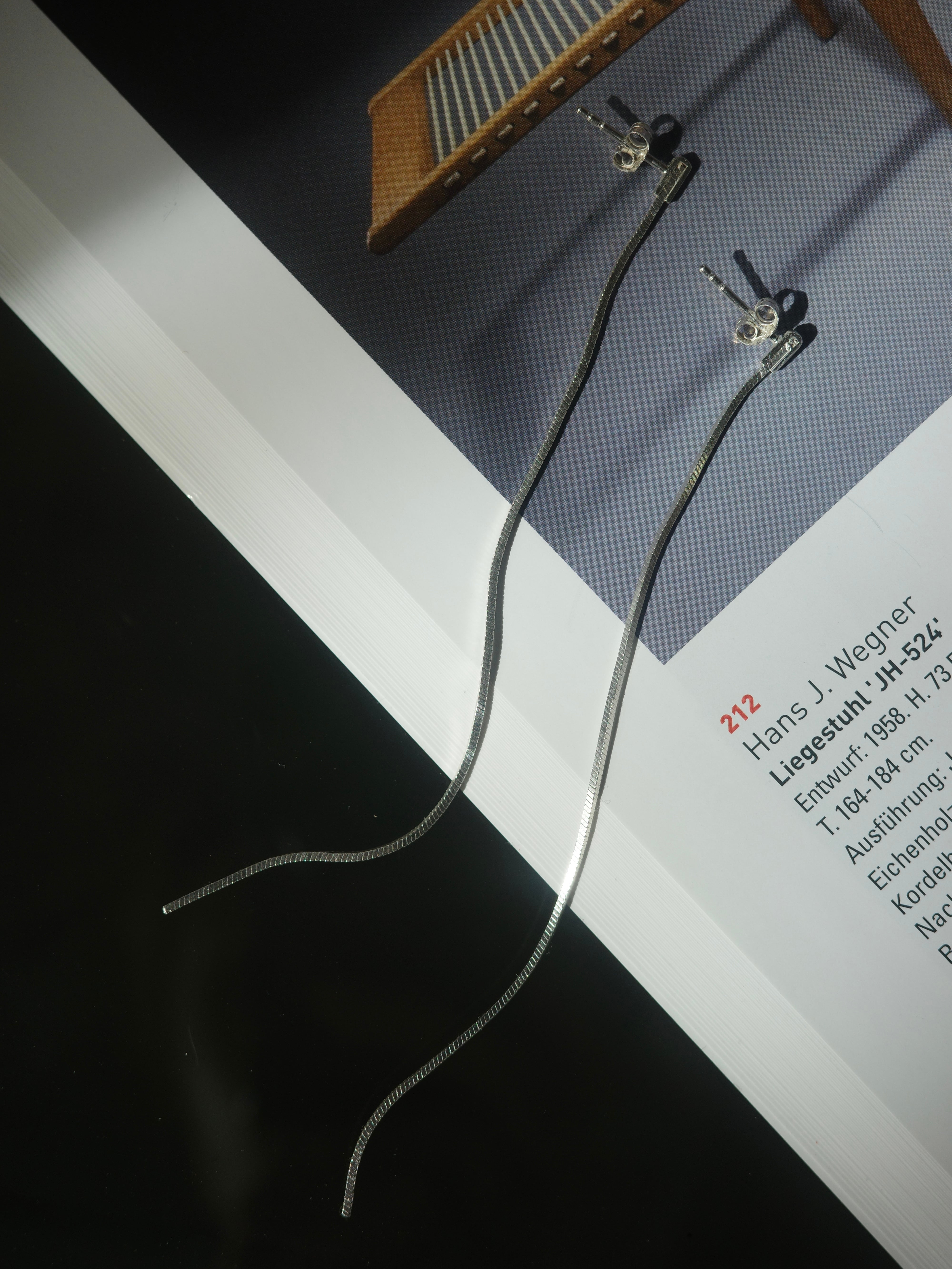 ポストが付く部分もなるべくボリュームが出ないよう、耳からそのままチェーンが垂れているような華奢感を出しています。