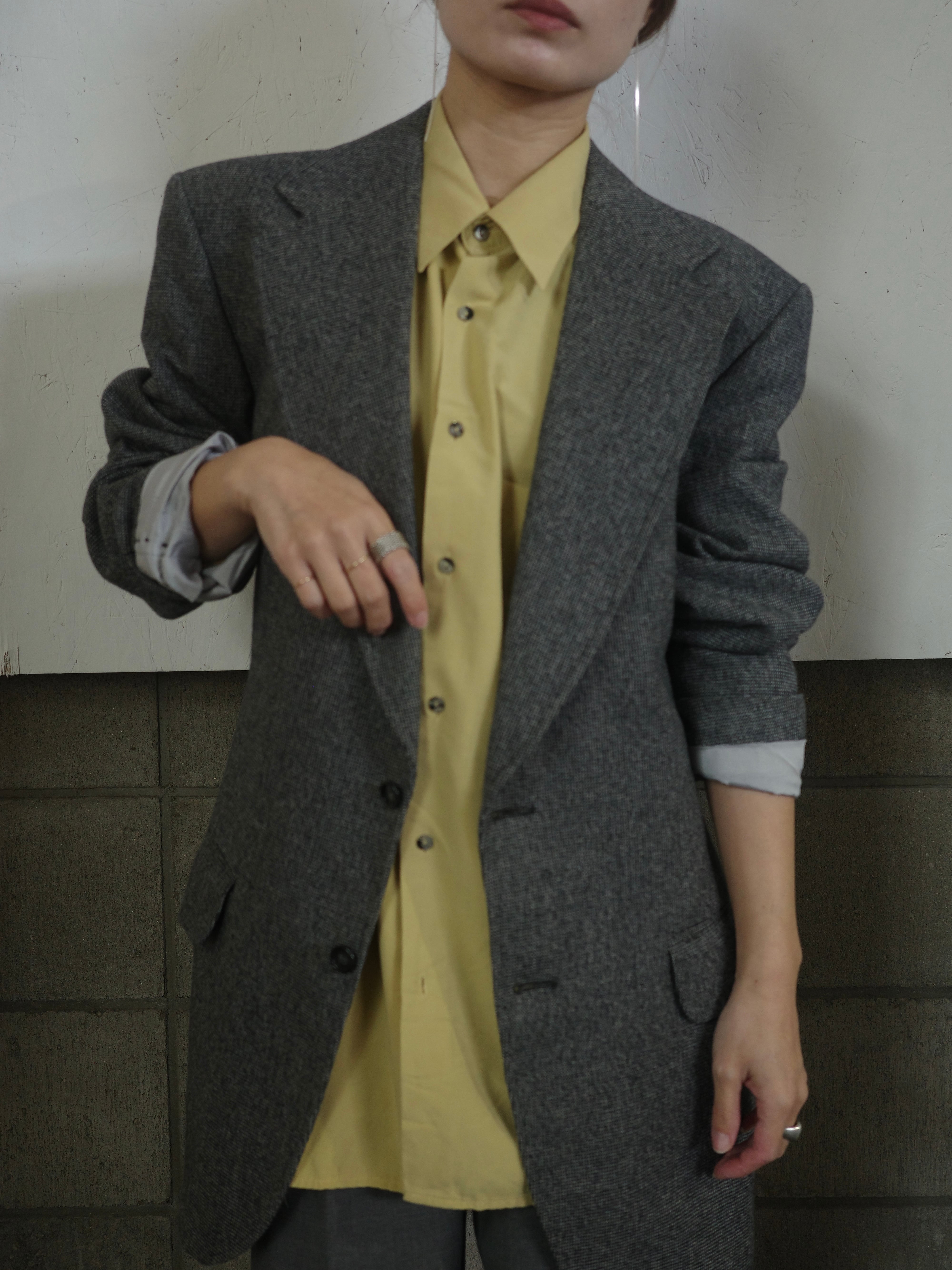 made in sweadenのウールのしっかりとした生地感のジャケットです。オーバーサイズなアイテムですが、ウエストが若干シェイプされていて、メンズっぽくなりすぎず綺麗に着用いただけます。