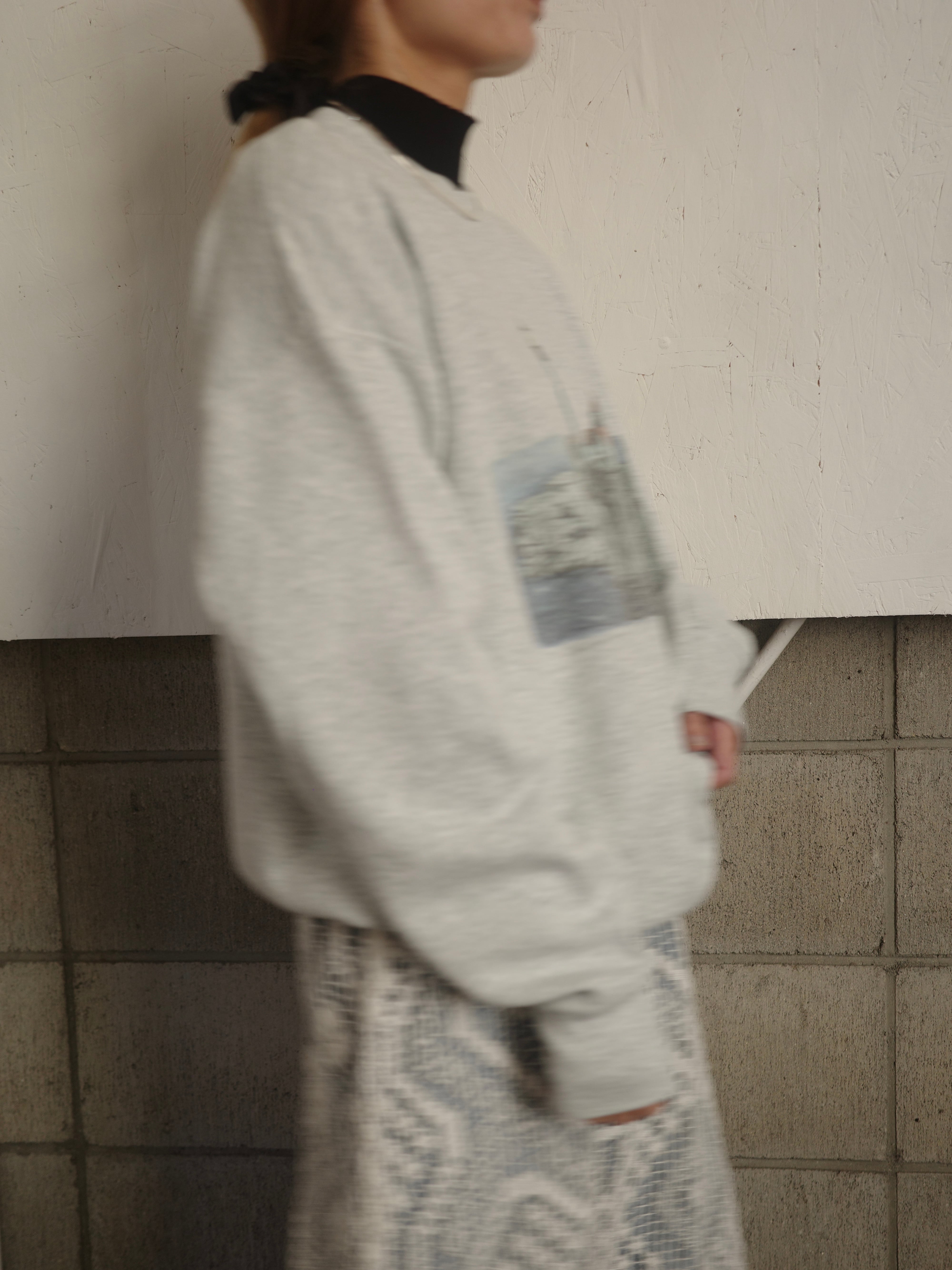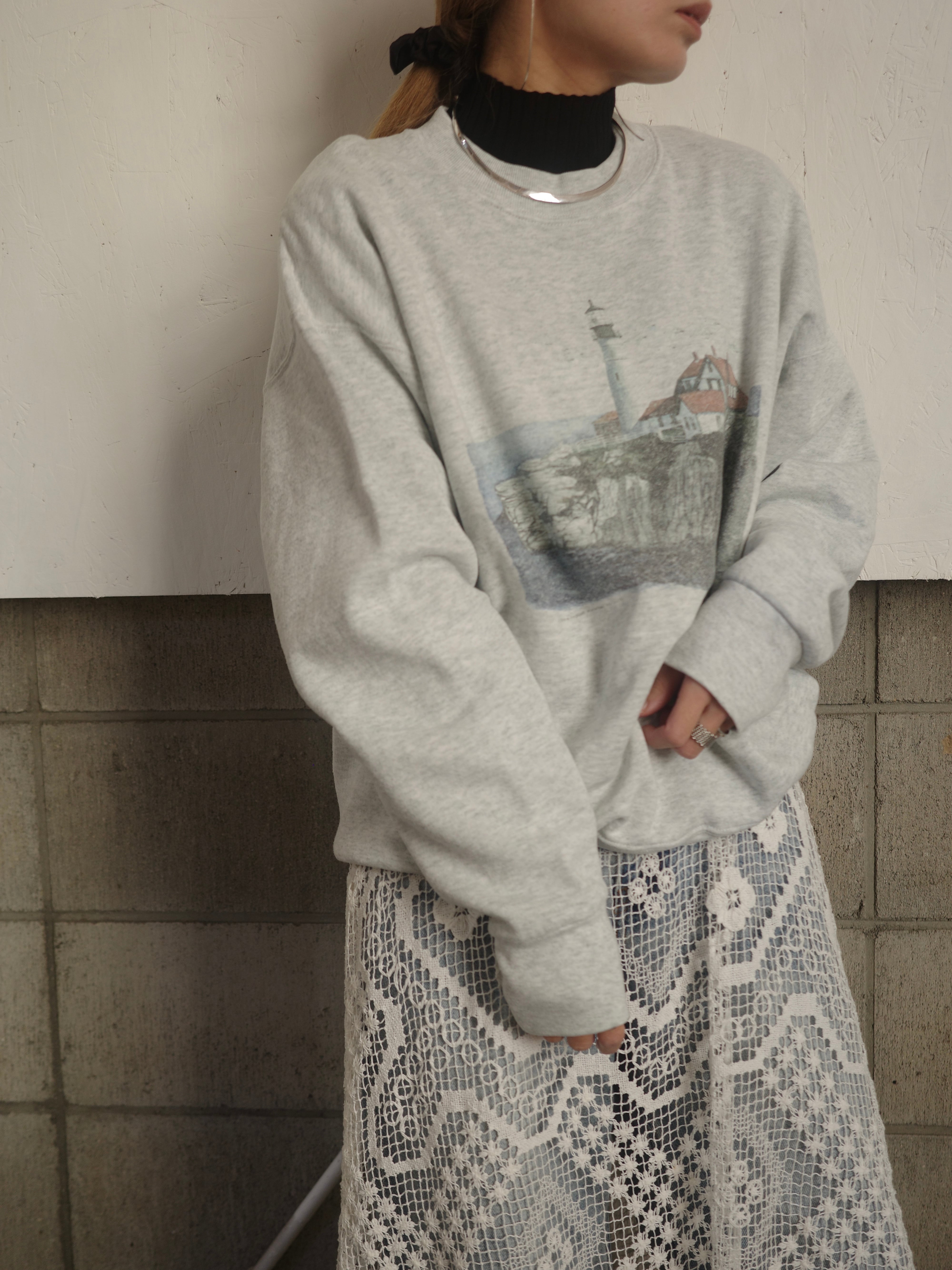fruit of the roomをベースとした霜降りグレーカラーのスウェットです。風景画のプリントがロゴなどに比べてカジュアルになりすぎず、色合いも相まって大人っぽく着用いただけます。