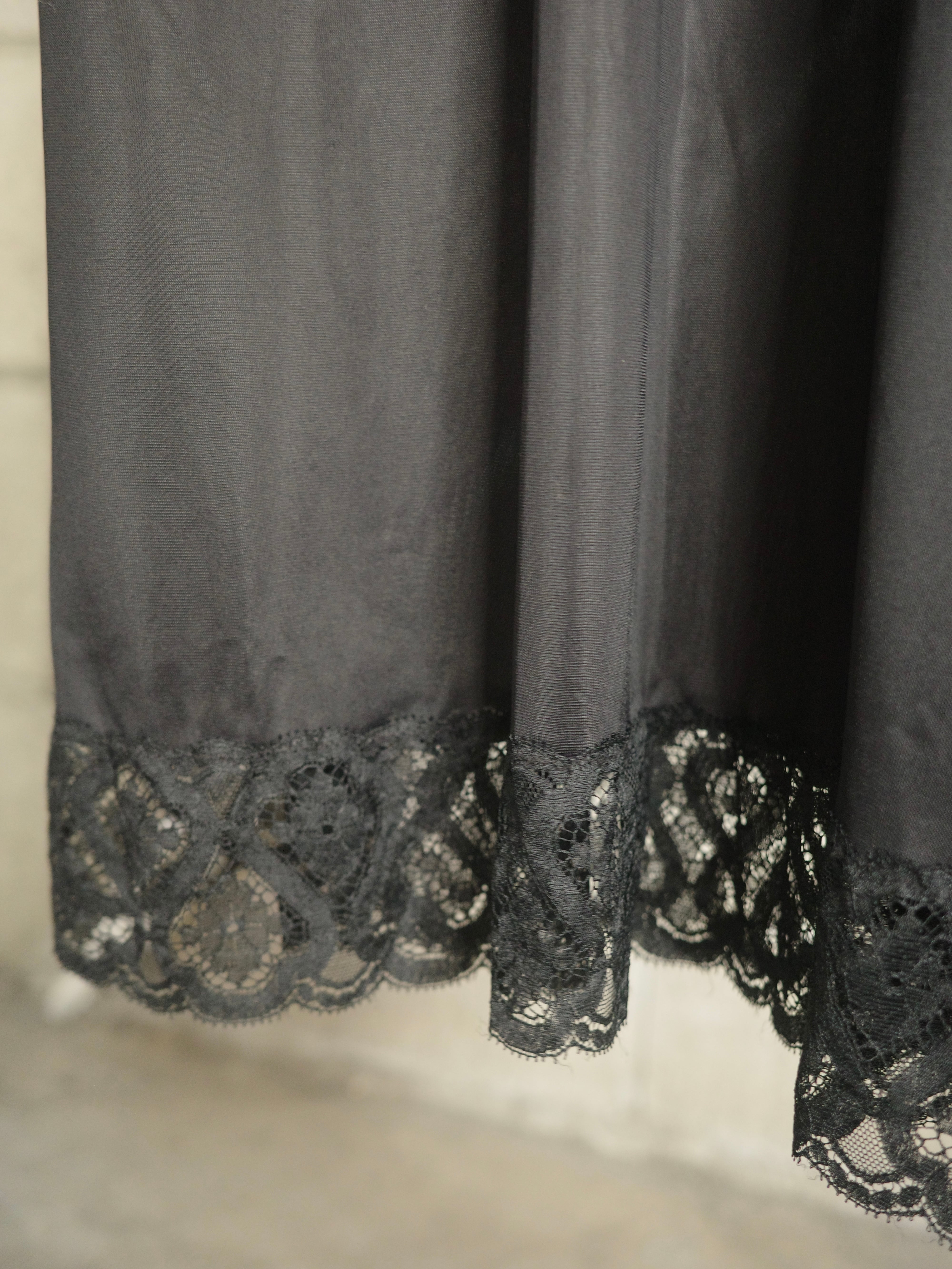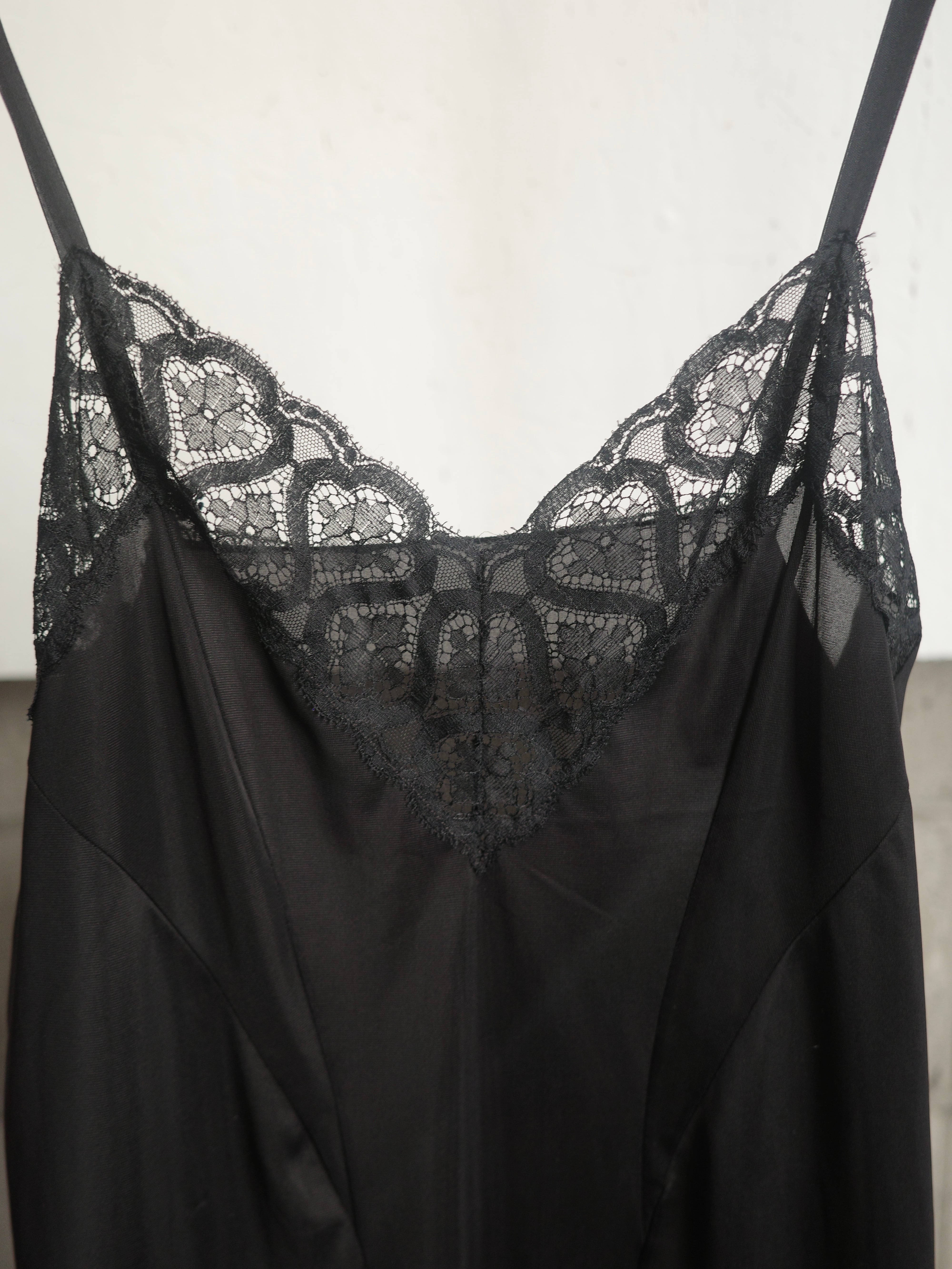 シンプルなレースのキャミワンピースです。季節問わず重ね着に重宝するアイテム。秋冬はニットやタートルの上から重ねても、逆にキャミを裾から覗かせて上からニットやスウェットを着るのも可愛いです。一つあると着回しの効く万能アイテムです。