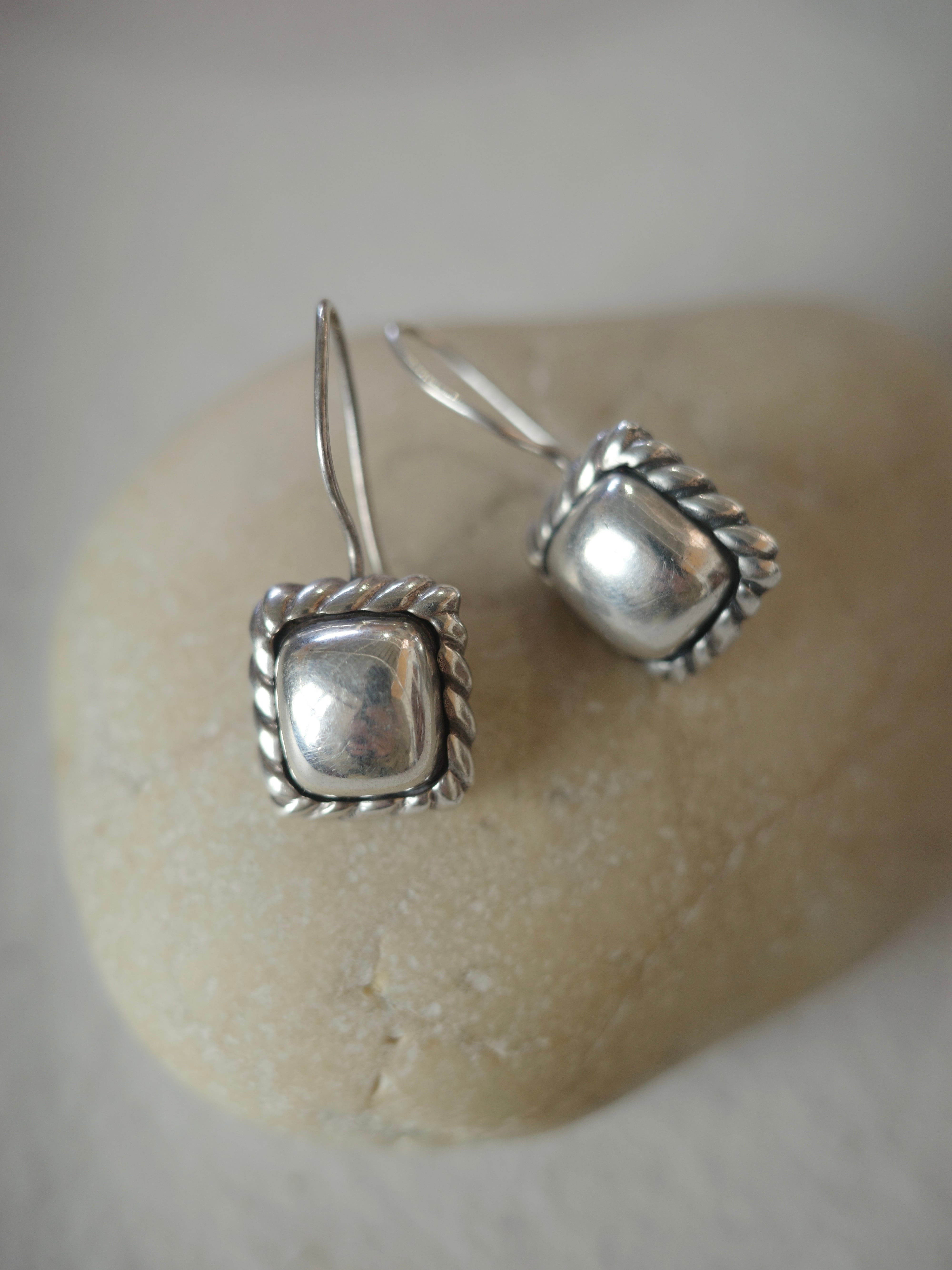 アメリカより仕入れたヴィンテージピアスです。スクエア型のぷっくりとしたモチーフがネイティブなかっこ良いデザイン。裏抜きされているので重すぎないのも嬉しいポイントです。