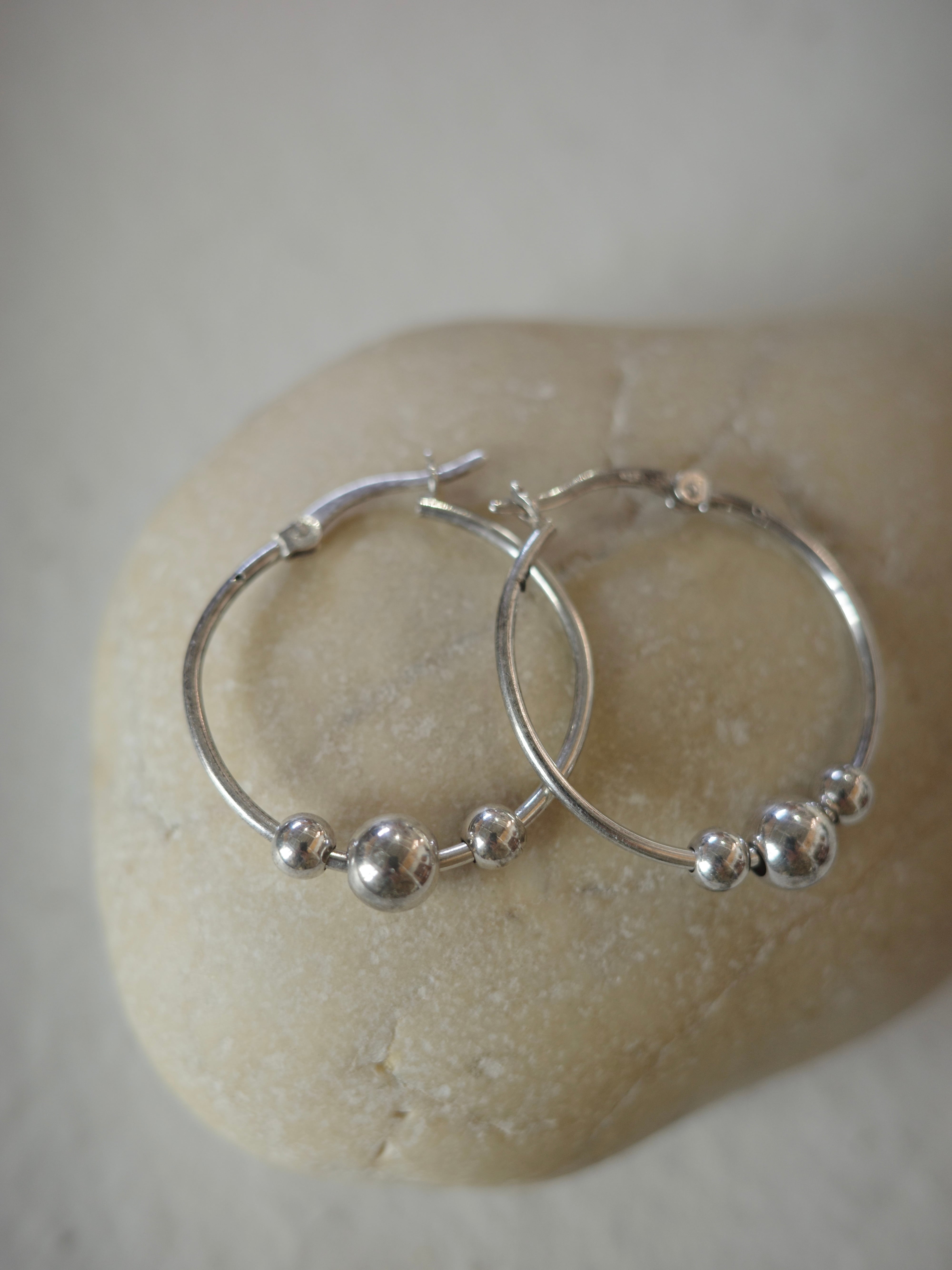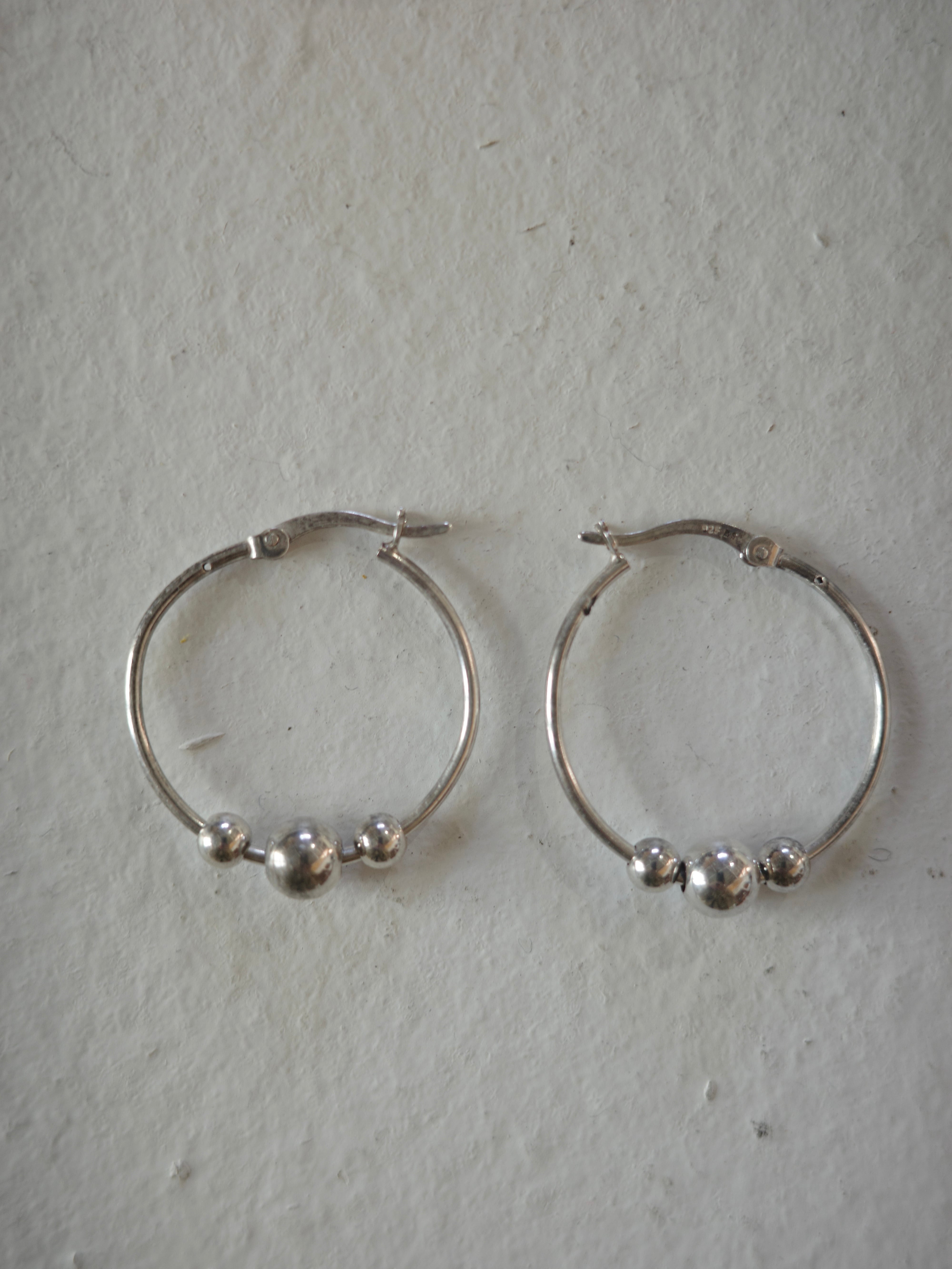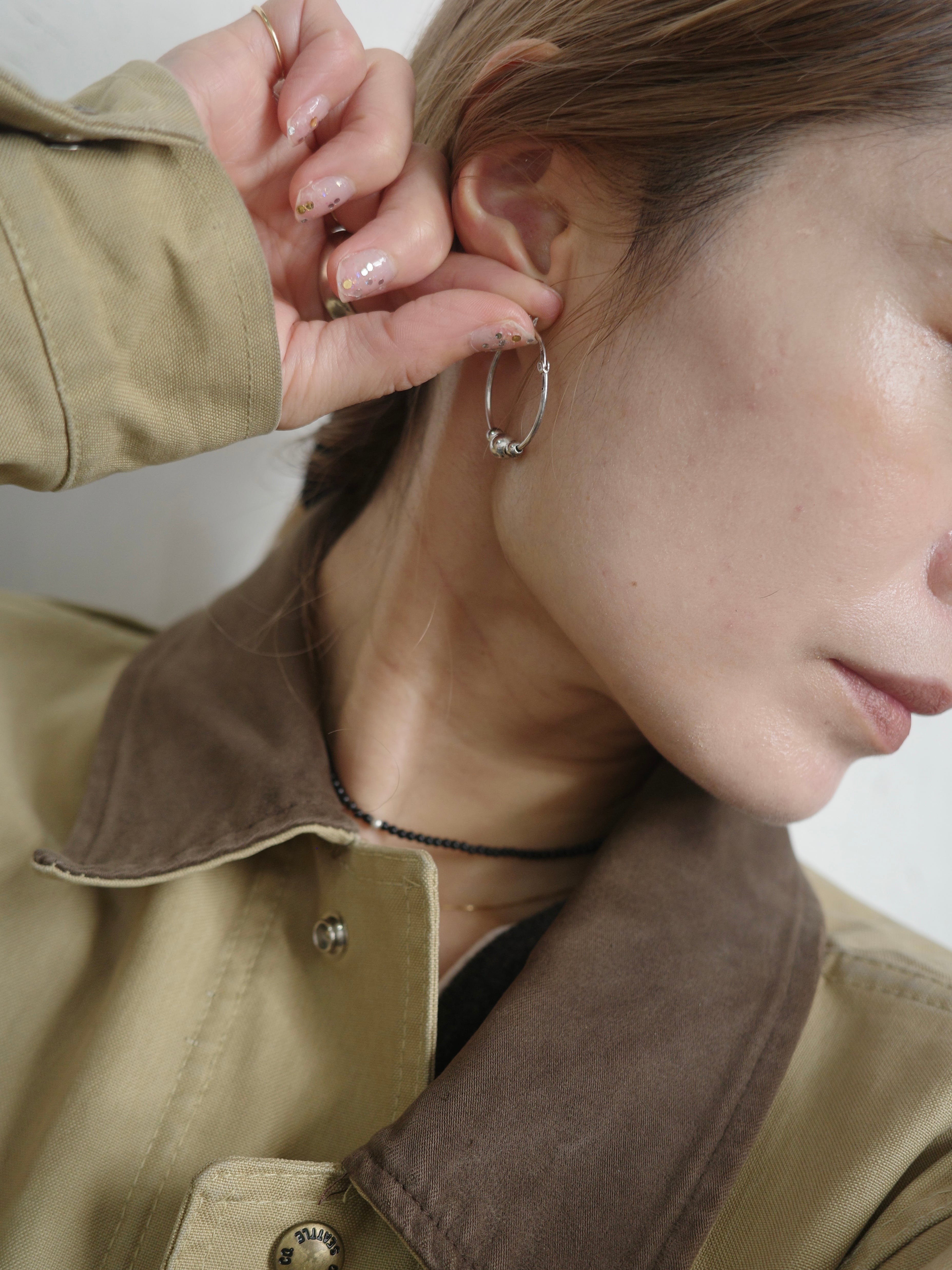 アメリカより仕入れたヴィンテージピアスです。シンプルな華奢フープにビーズが通ったデザインです。程よいボリューム感で綺麗目にも合わせやすいアイテムです。