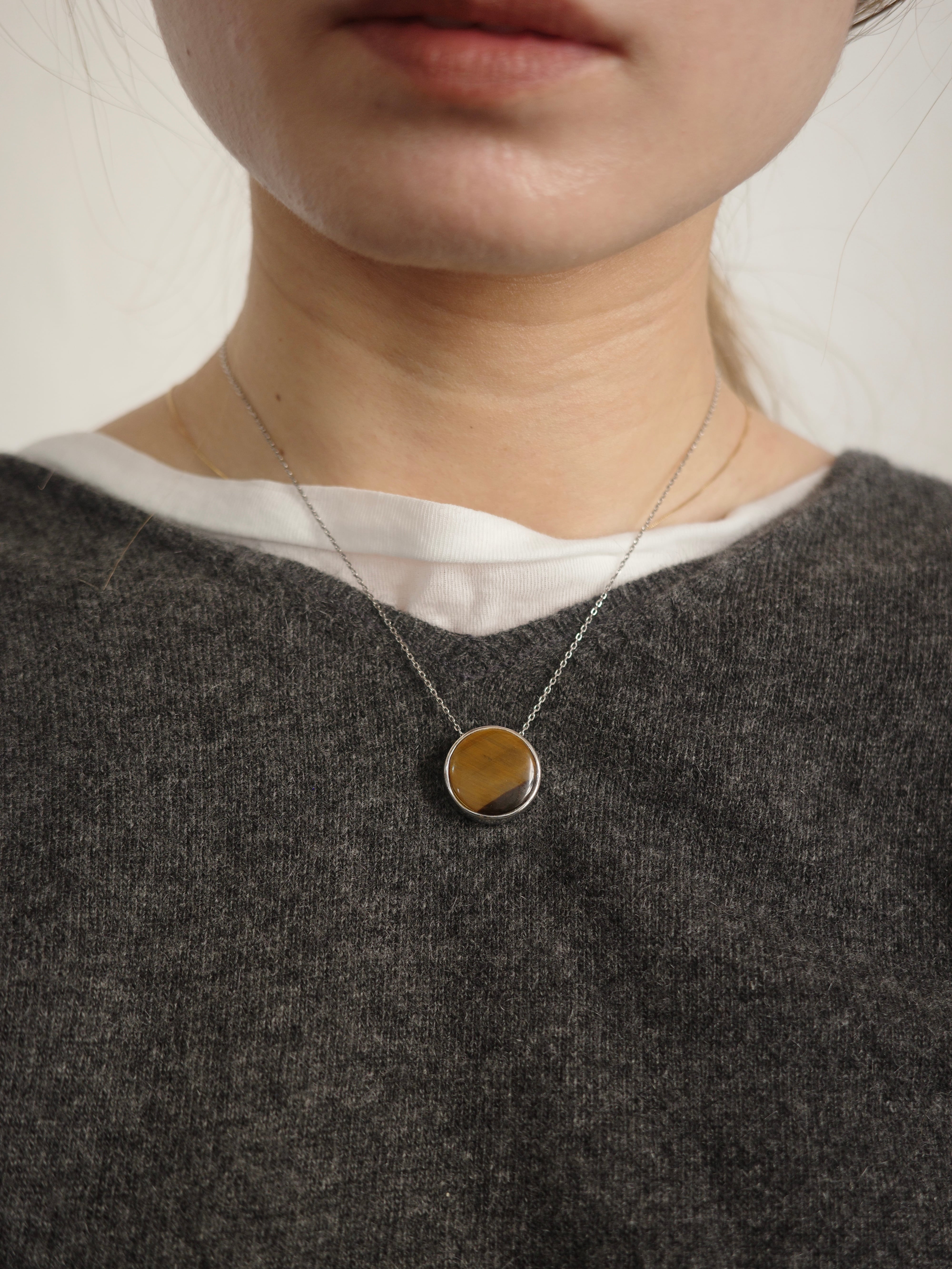 <vintage silver925>tigereye round necklace