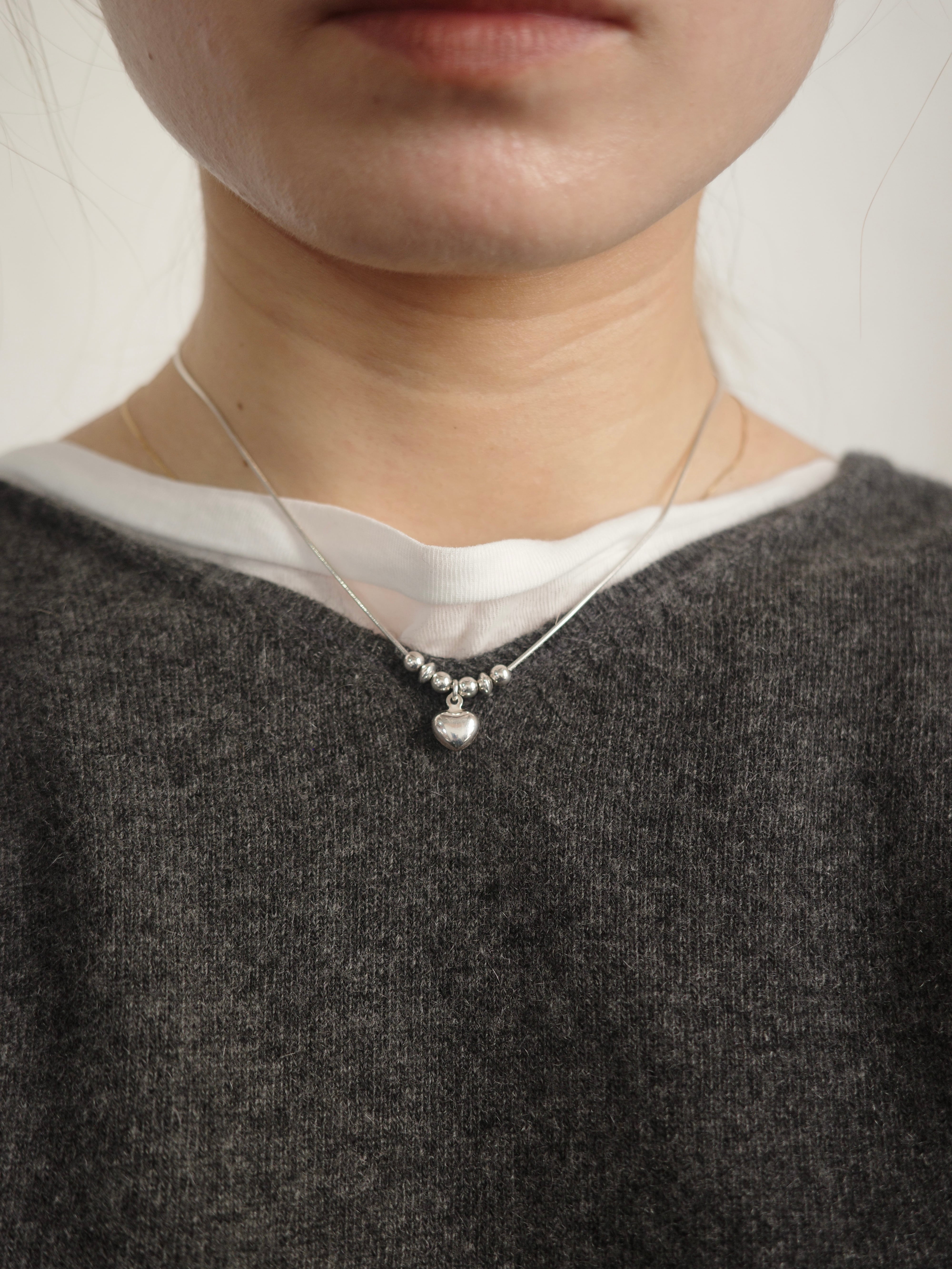 アメリカより仕入れたヴィンテージネックレスです。ぷっくりしたハートチャームに、ボールビーズのついた可愛らしいデザイン。華奢すぎず、ハートでもカジュアルに着用いただけます。