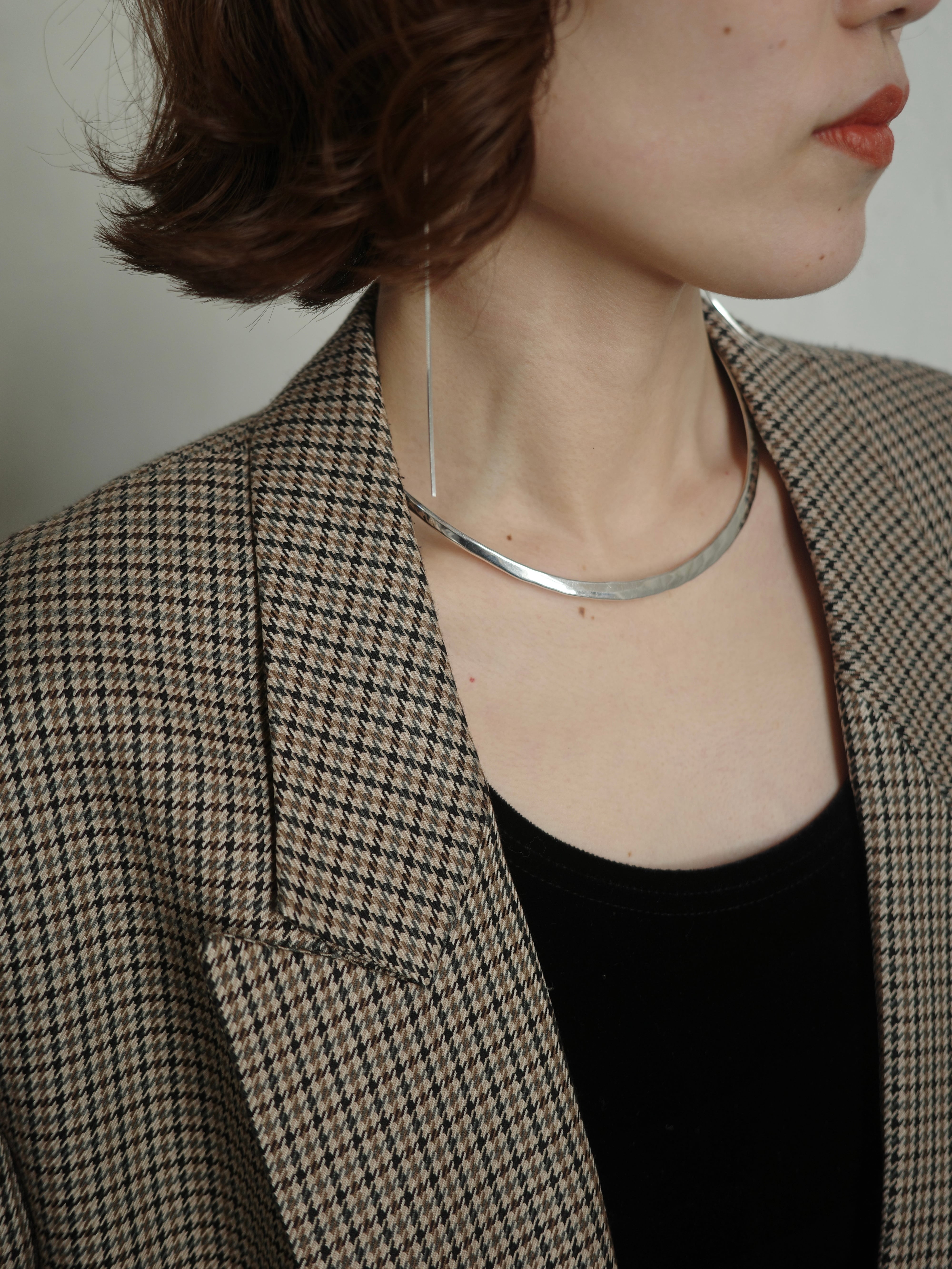 アメリカよオリ仕入れたヴィンテージチョーカーです。シンプルですが、プレート状のデザインが存在感のあるデザインで、顔まわりを華やかにしてくれます。カジュアルスタイルのはずしにも良いですし、パーティーシーンにもおすすめです。