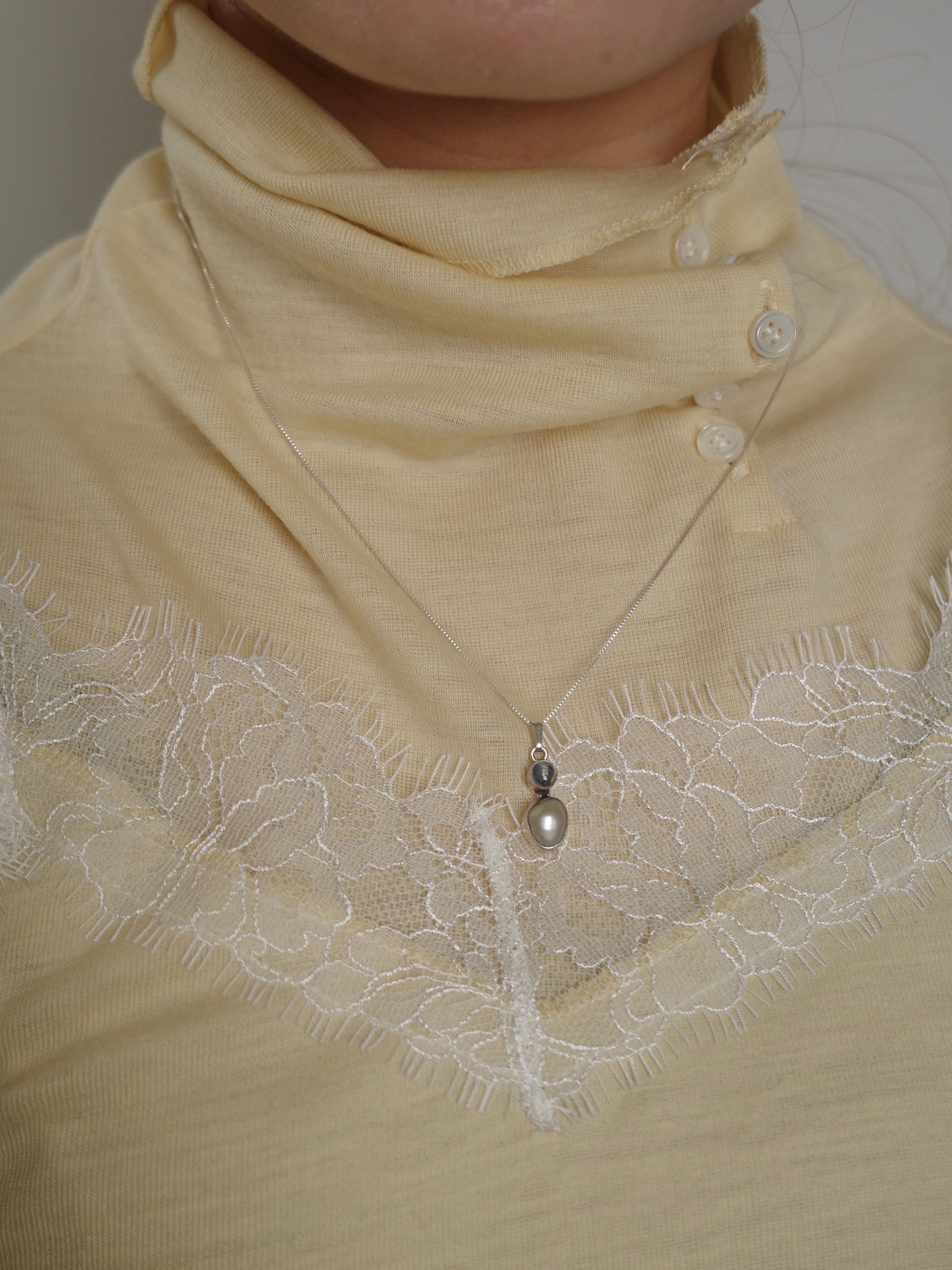 <vintage silver925>moonstone × pearl necklace