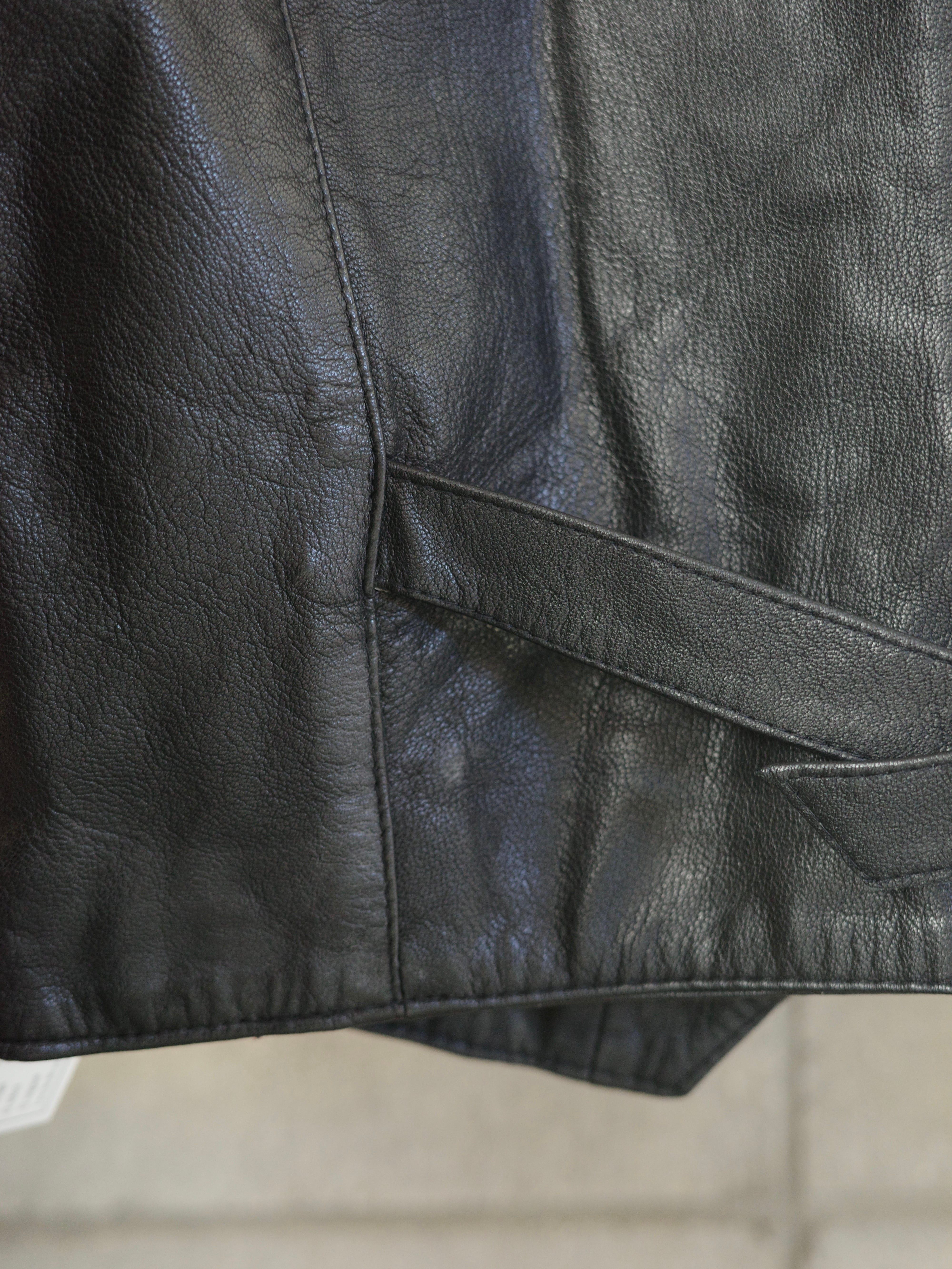 リアルレザーのシンプルなベストです。無駄なデザインがなく幅広いアイテムと重ね着を楽しんでいただける万能なベストです。しっかりした生地感で、経年変化によるしわも味になってカッコ良い一枚です。