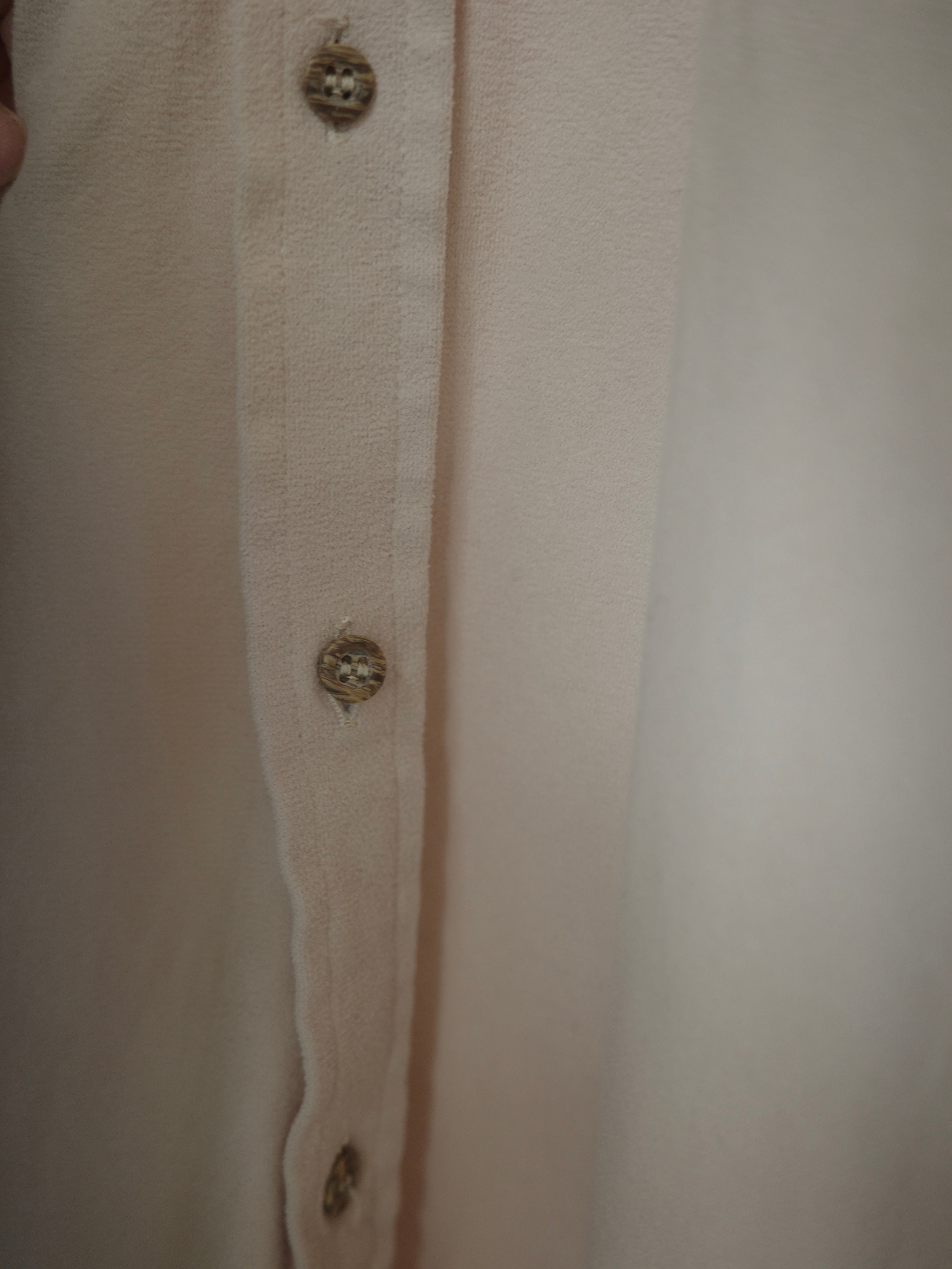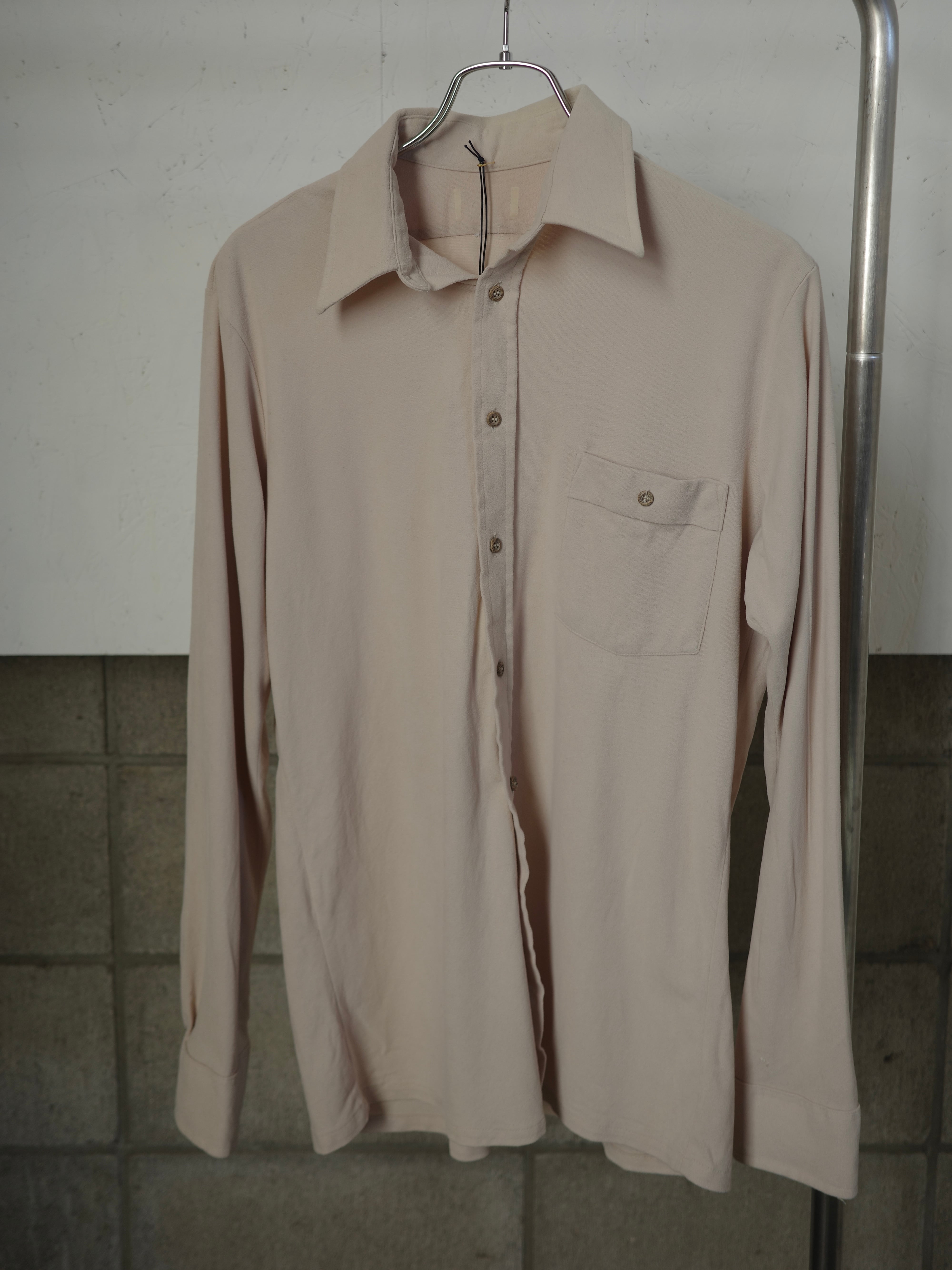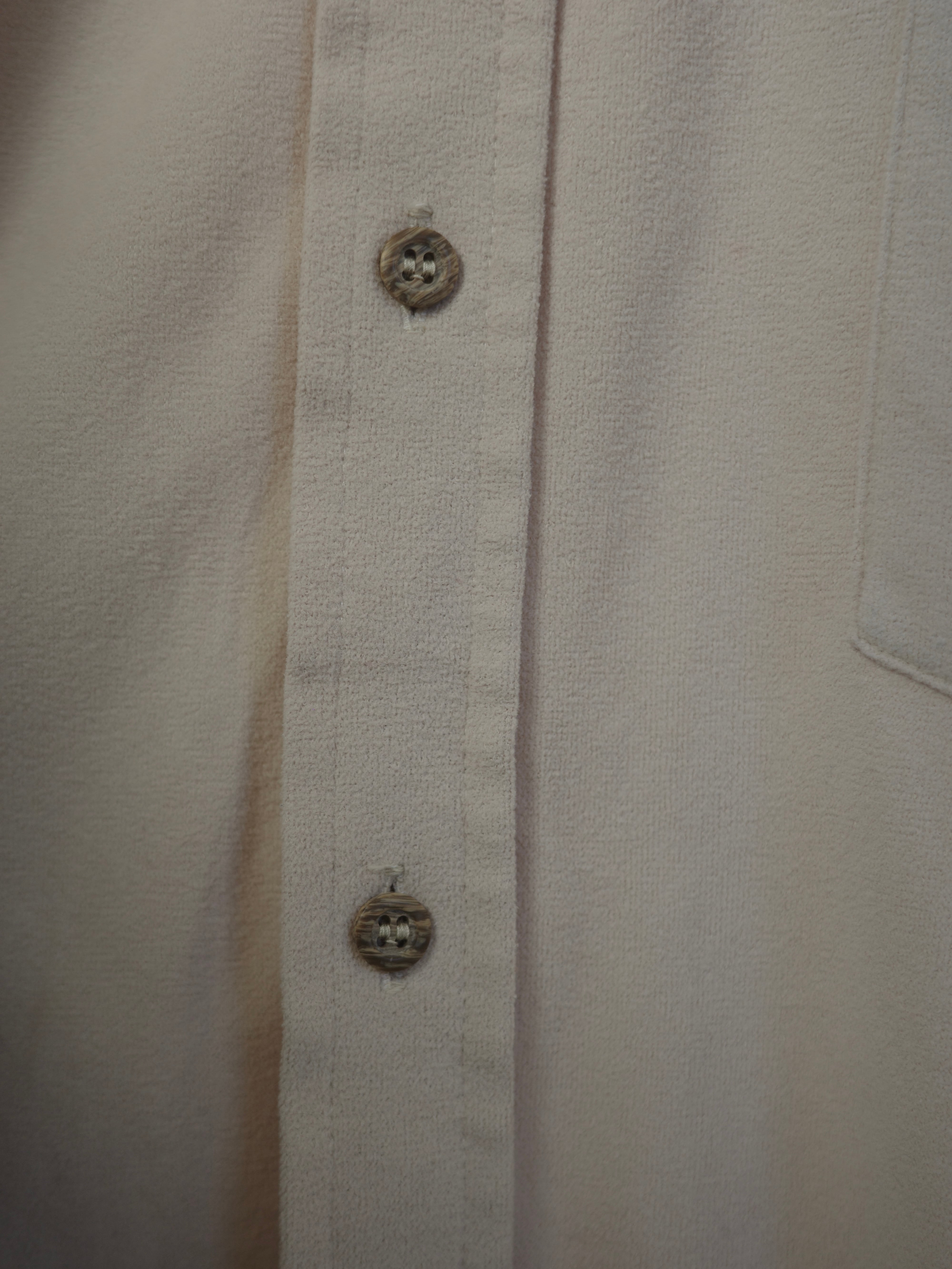 やや起毛したベロア調のシャツです。ヌーデイーなベーじカラーが珍しく、大人っぽく着用できる一枚です。シンプルなのでベストとの重ね着などもおすすめです。