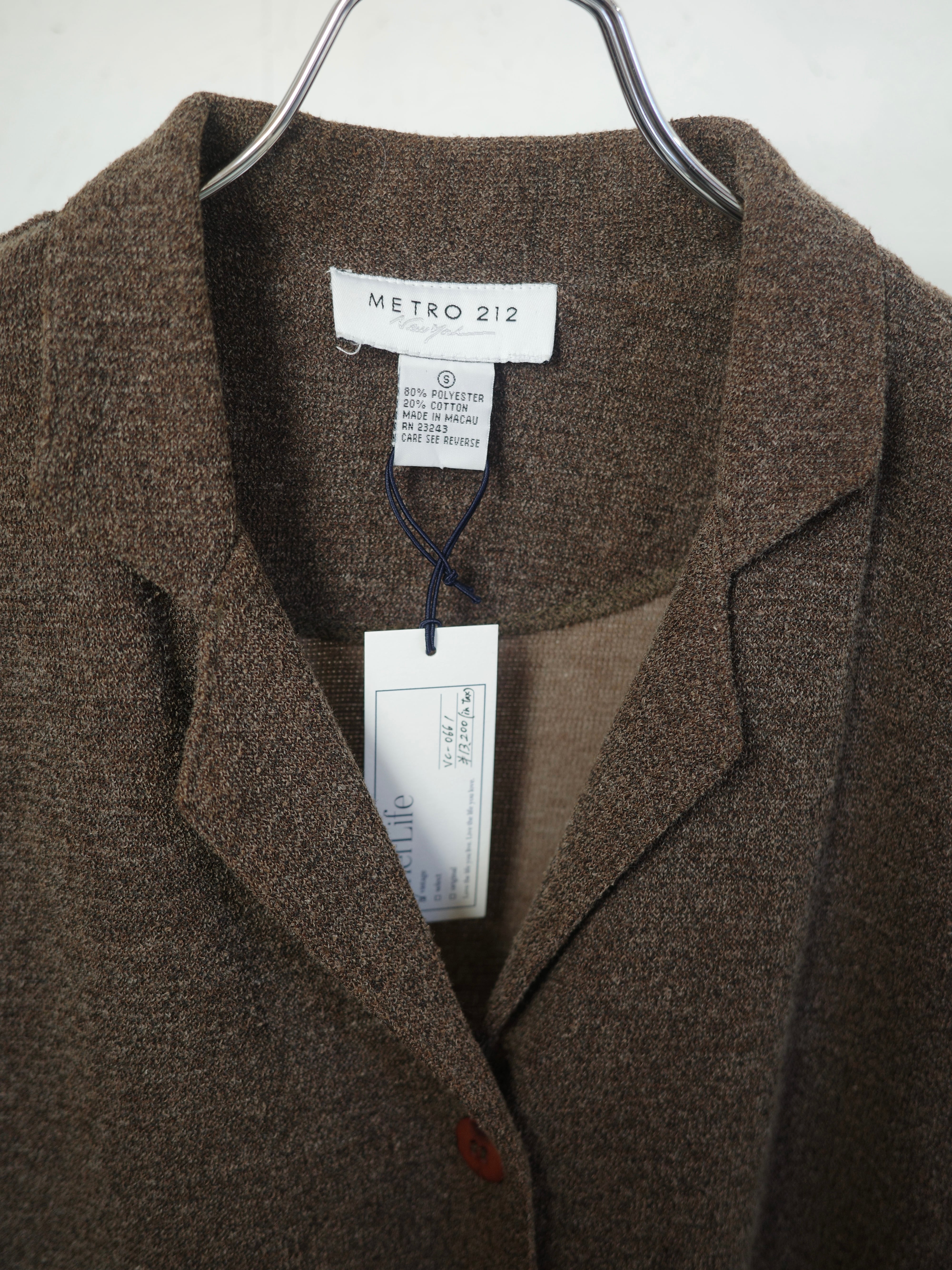 ジャケット型のニットカーディガンです。ややオーバーサイズでゆるっとしたシルエットなので、ラフに羽織っても、ベルトで締めて着るスタイリングも可愛いです。薄手なので、中にタートルなどのインナーも着やすく、上からアウターも着ていただけます。