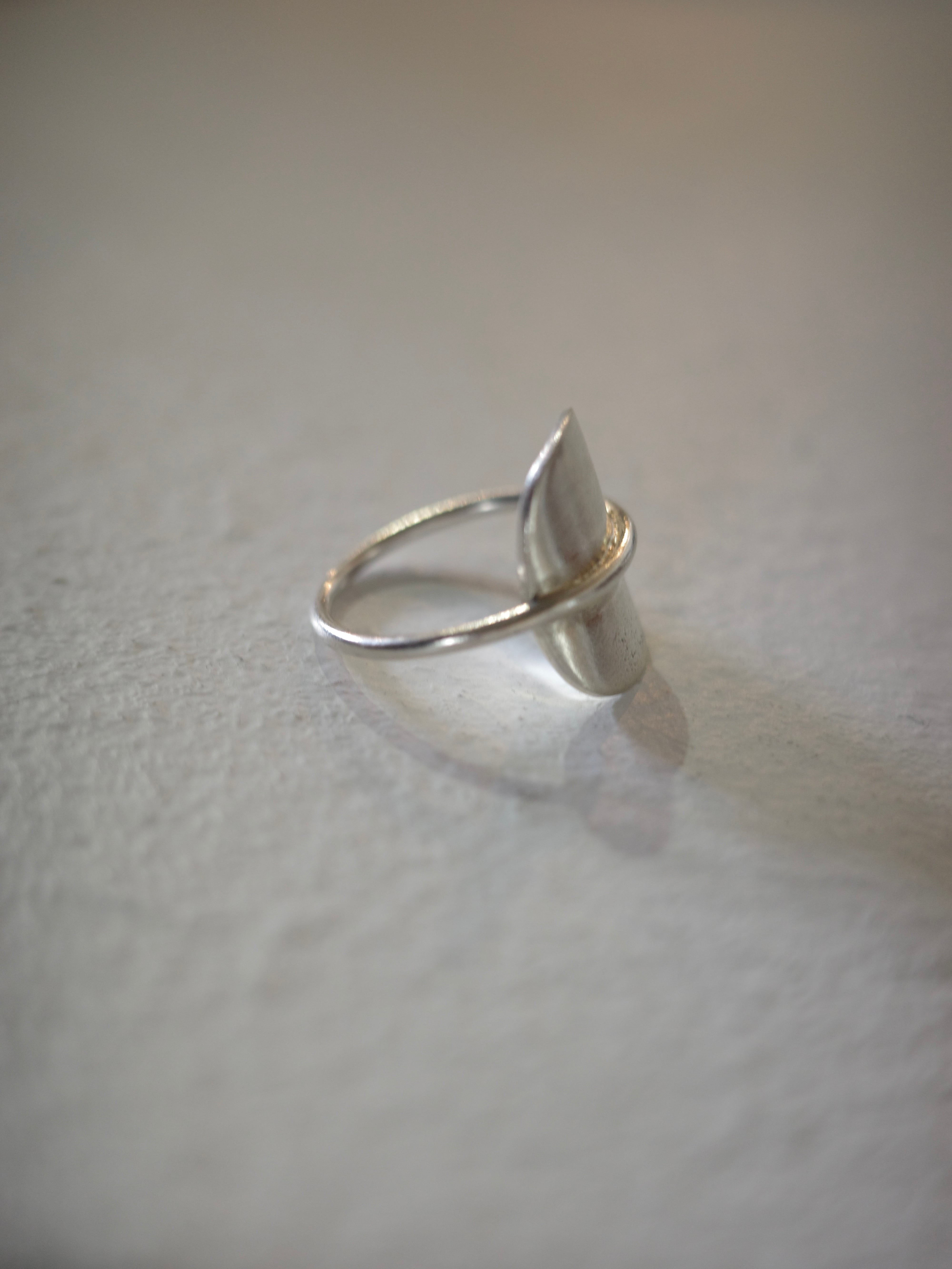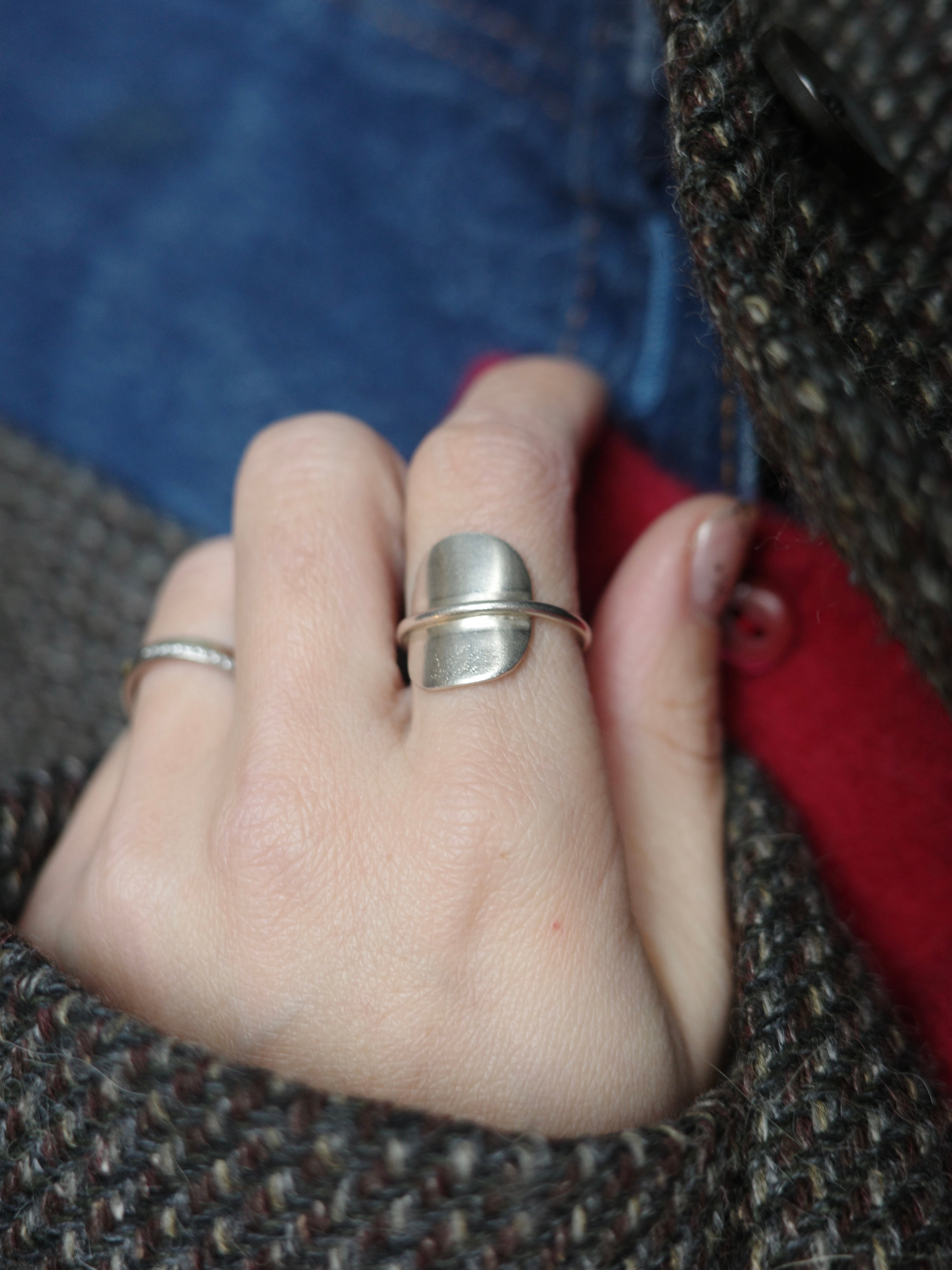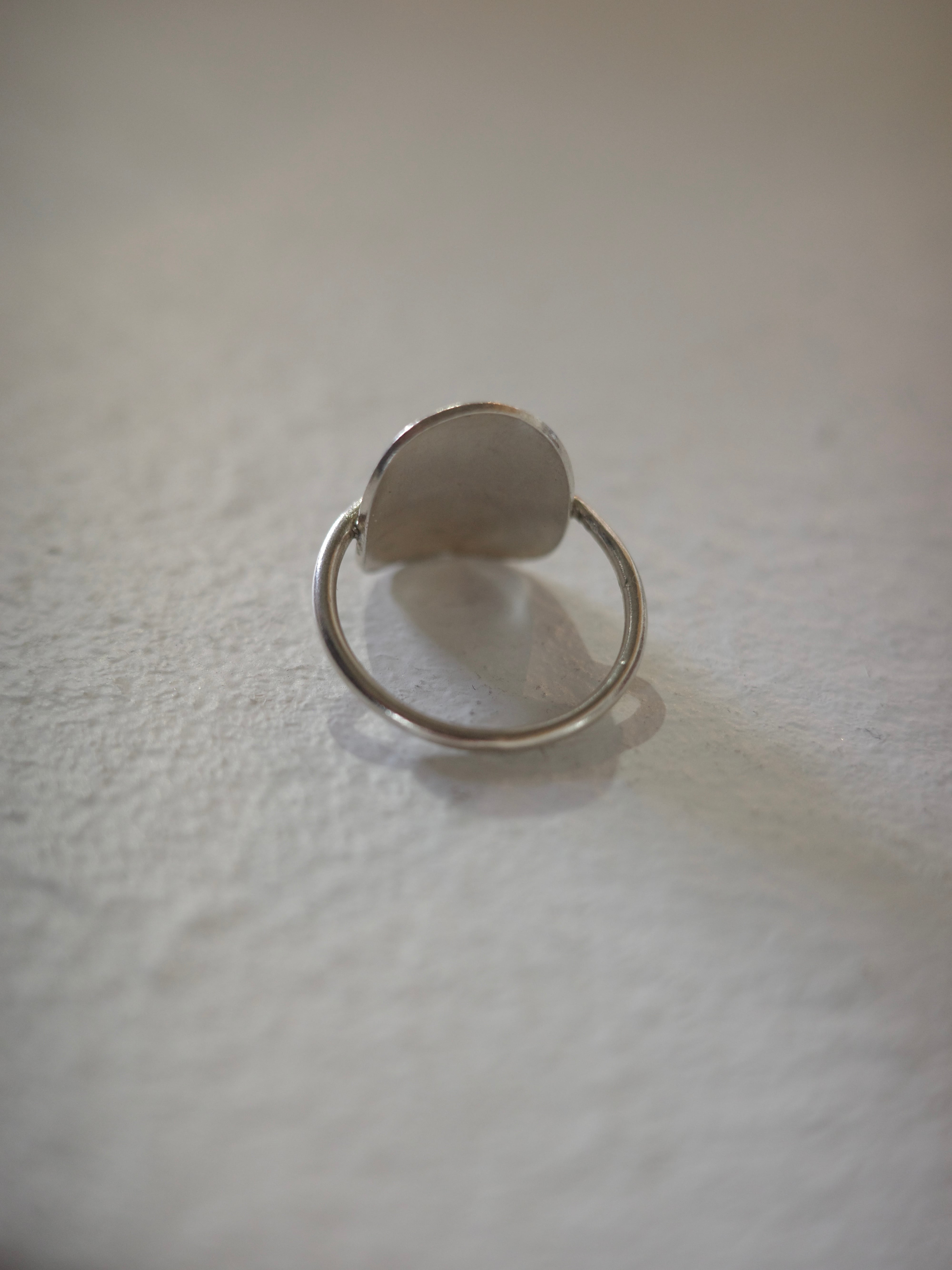 アメリカより仕入れたヴィンテージリングです。ラウンド型のプレートが指に沿うようなデザインが面白いアイテム。繊細ながら存在感もあります。