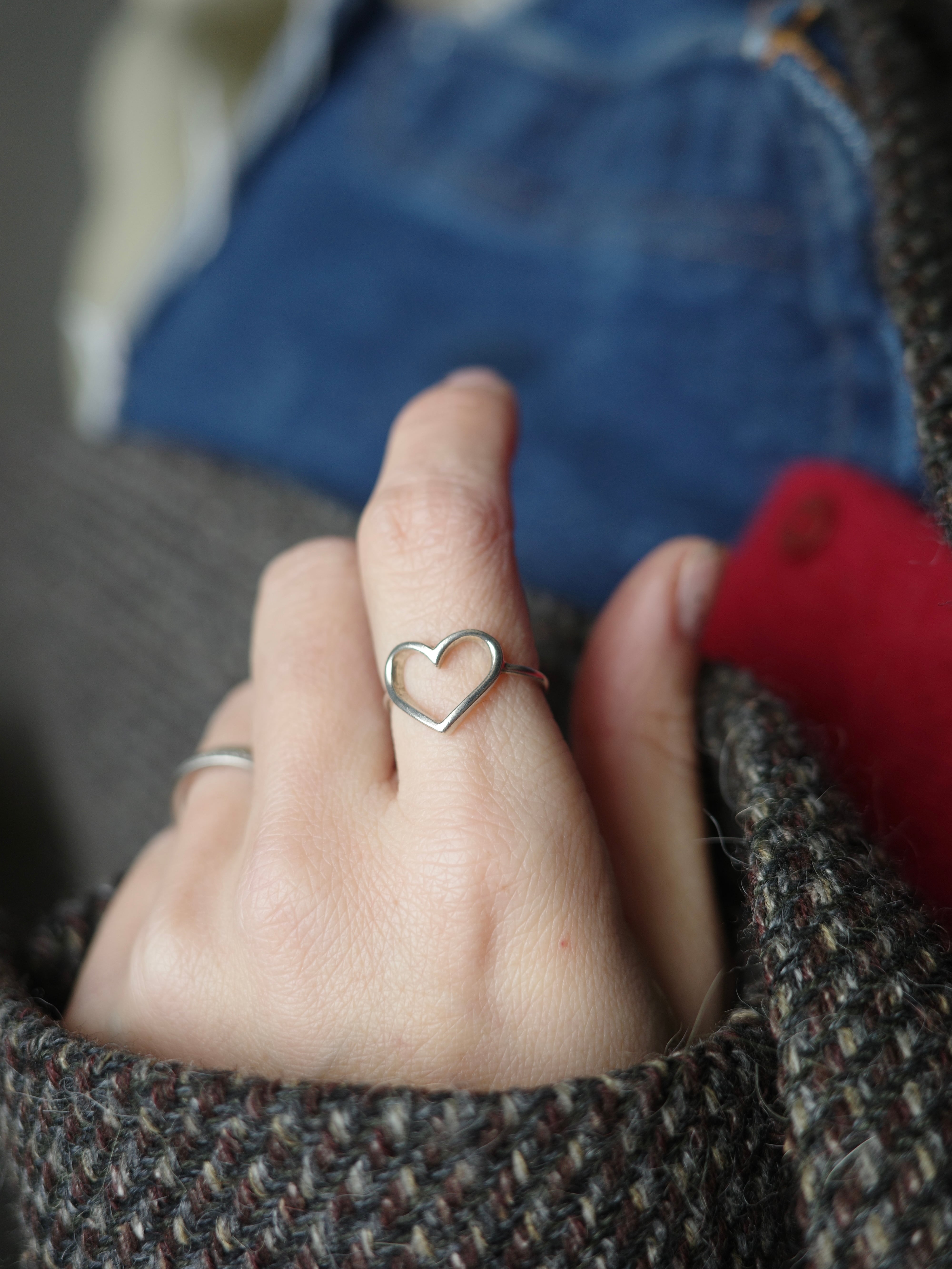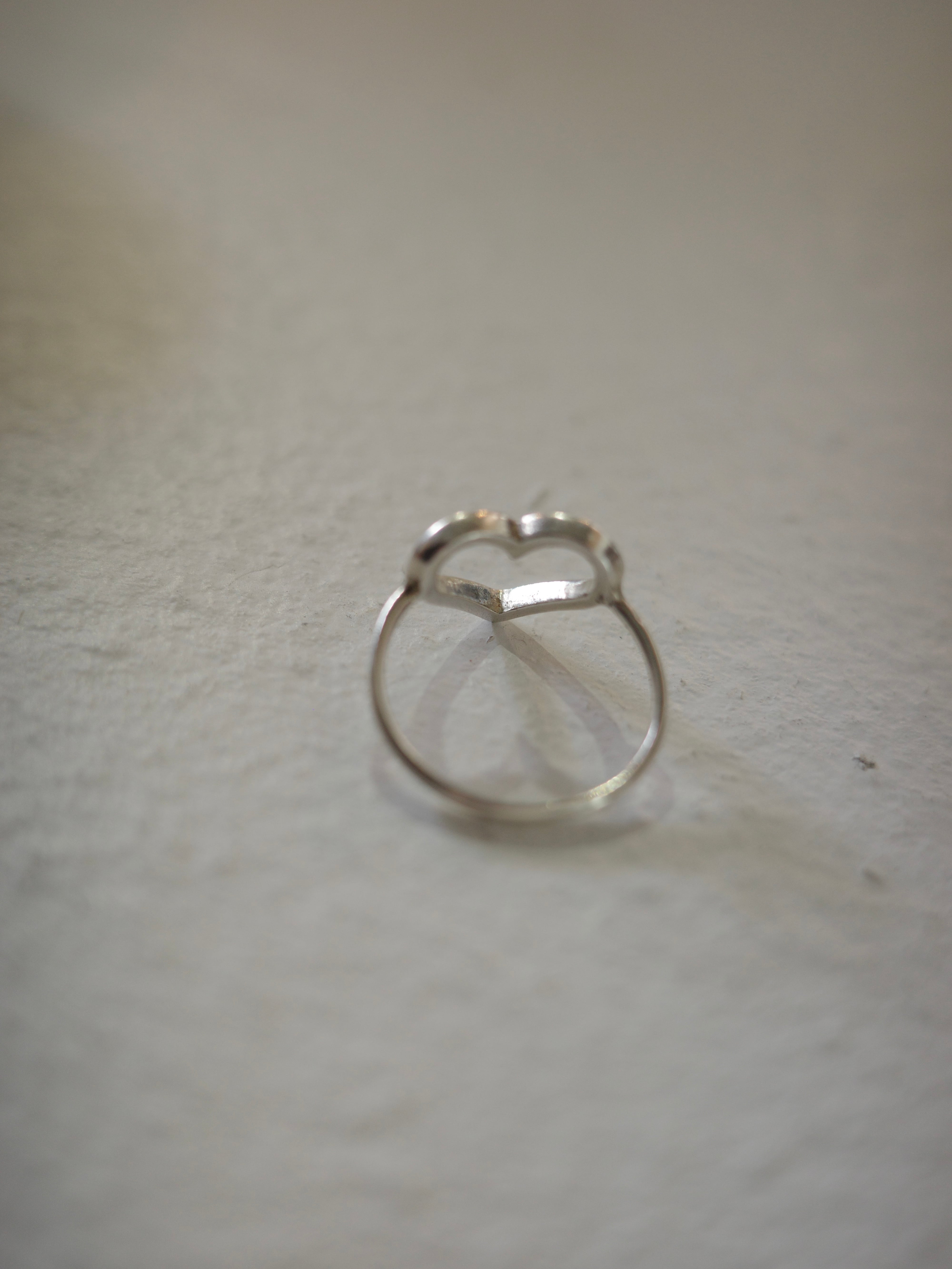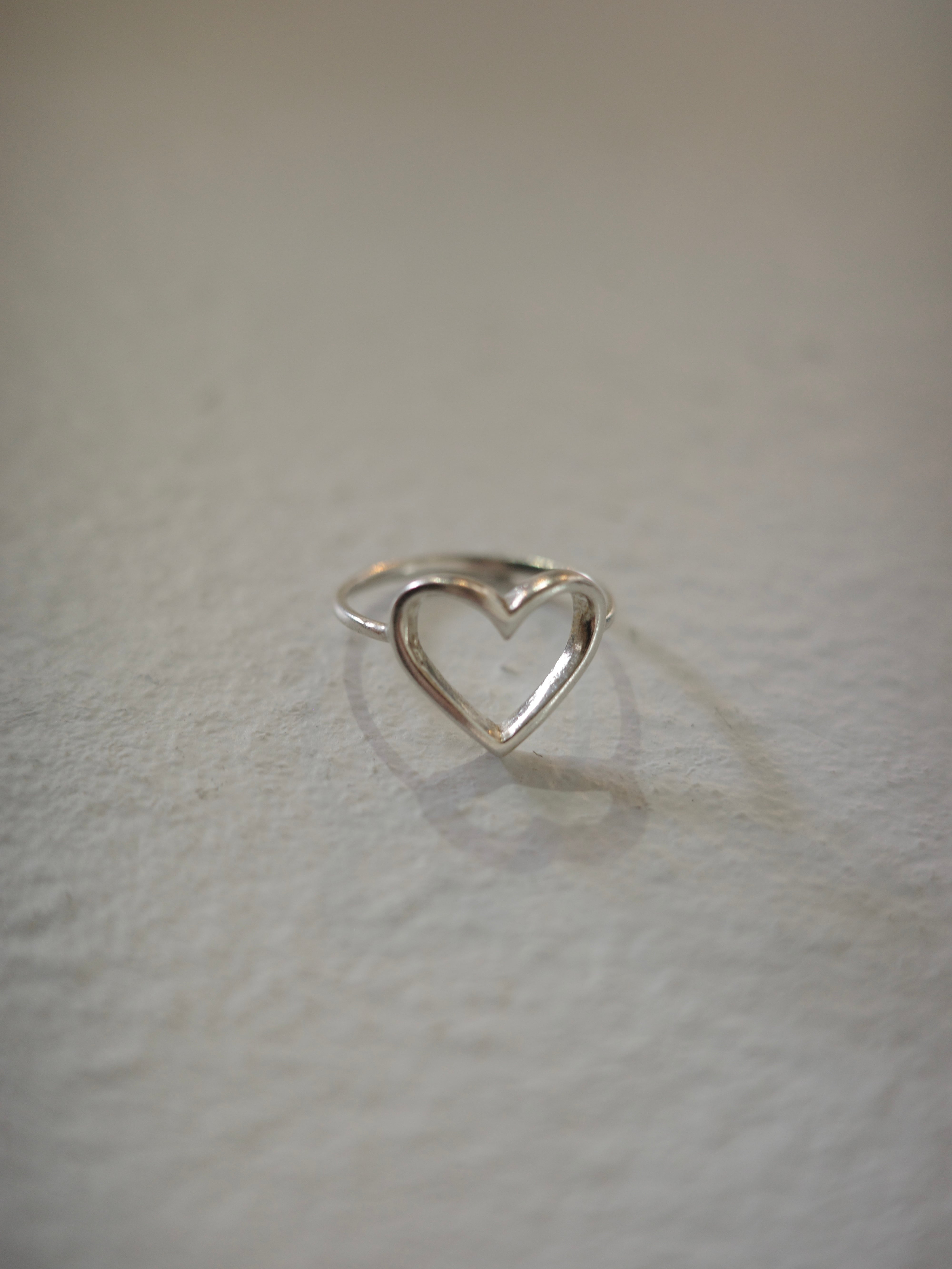 アメリカより仕入れたヴィンテージリングです。線でハートをデザインしたリングで見た目も軽い印象ながら程よく存在感があり、付け心地も軽いです。
