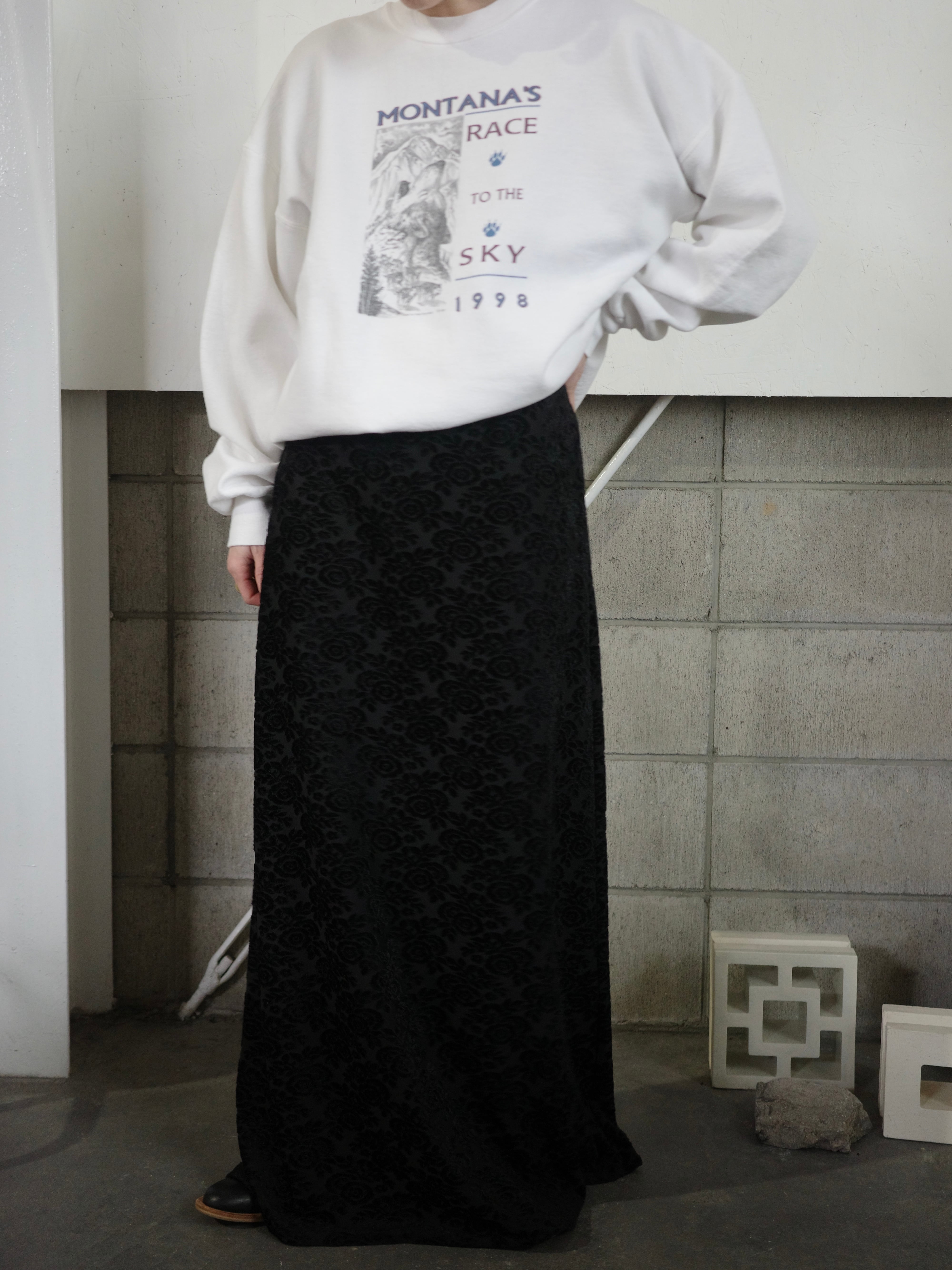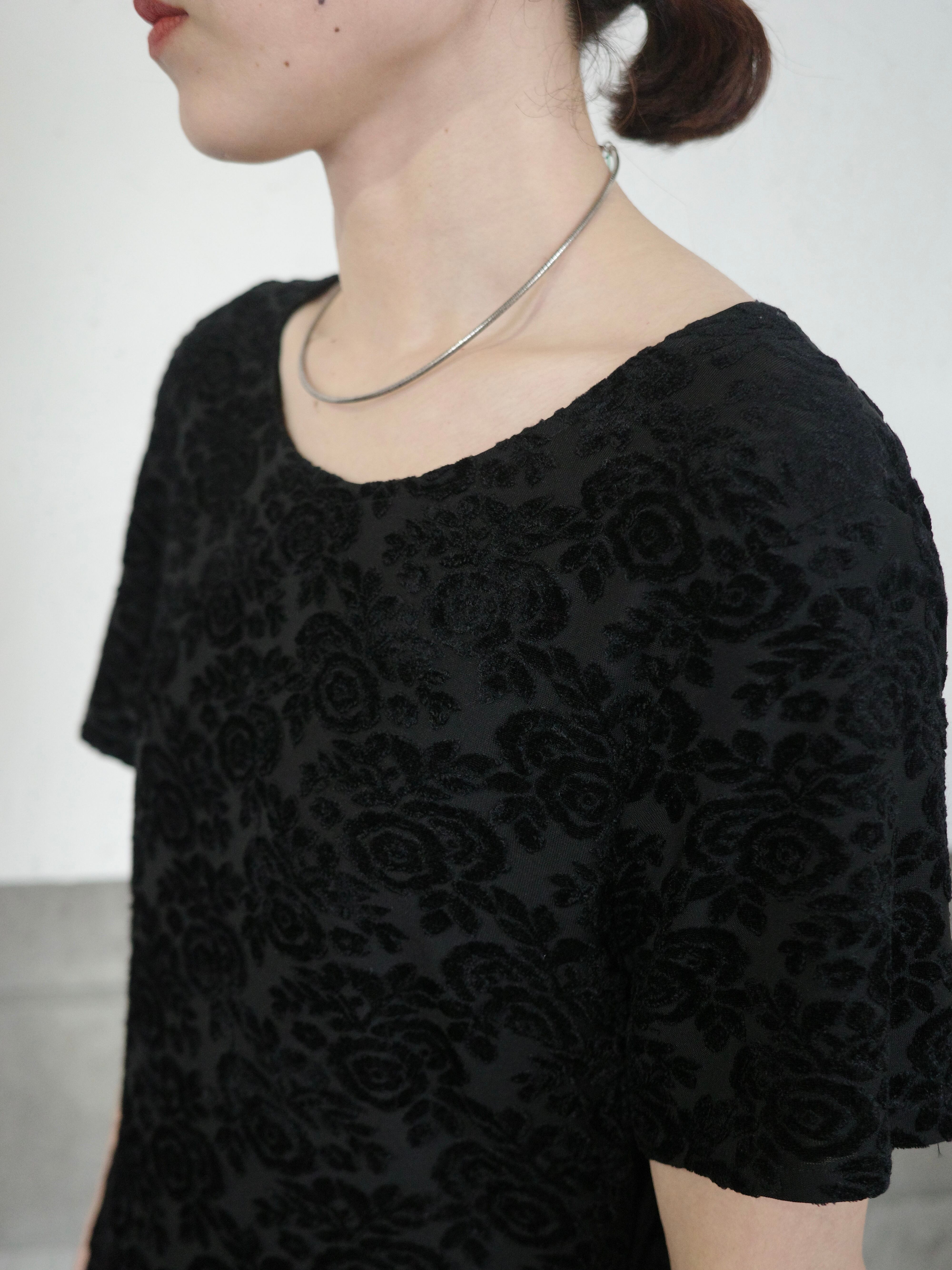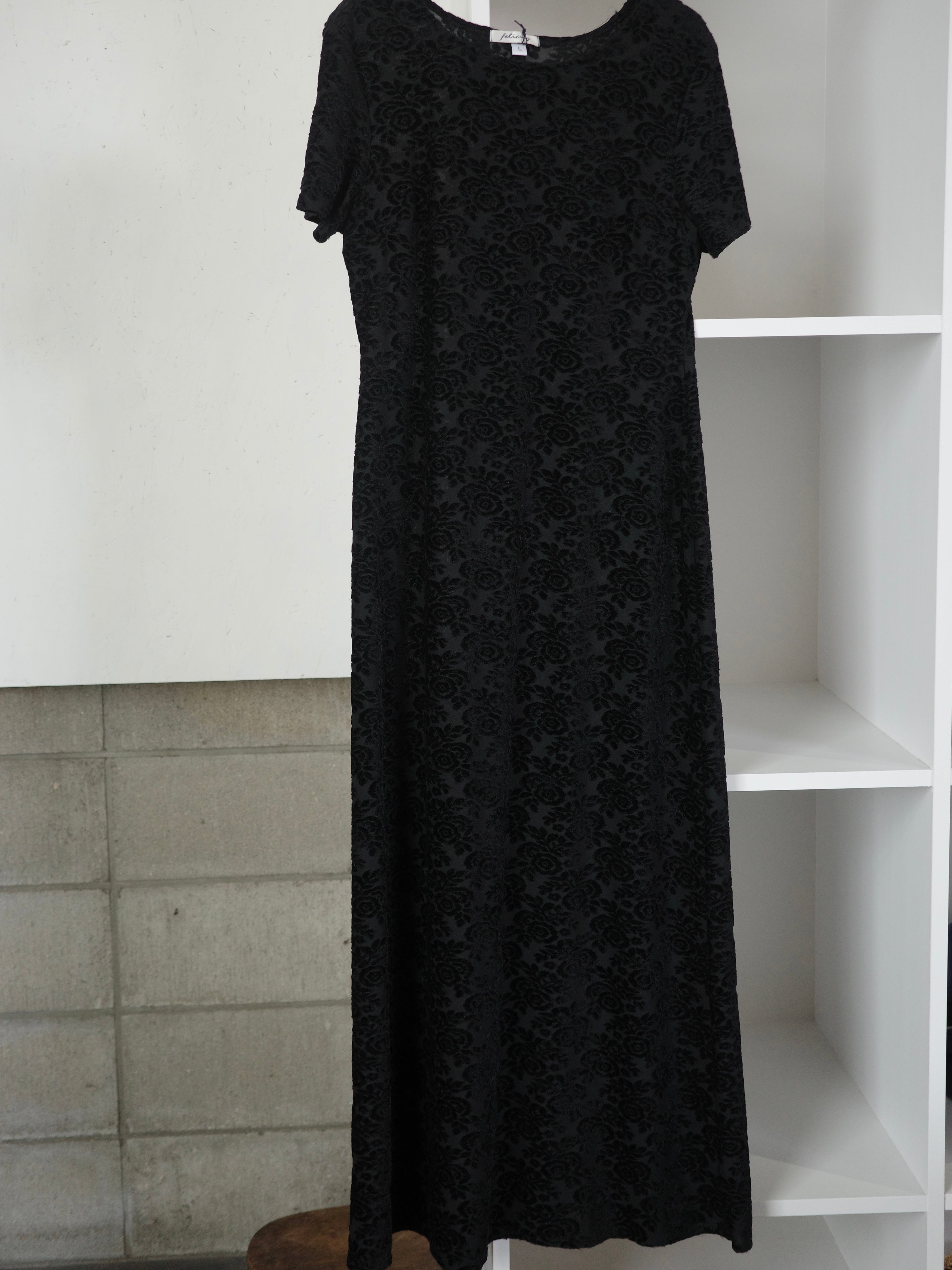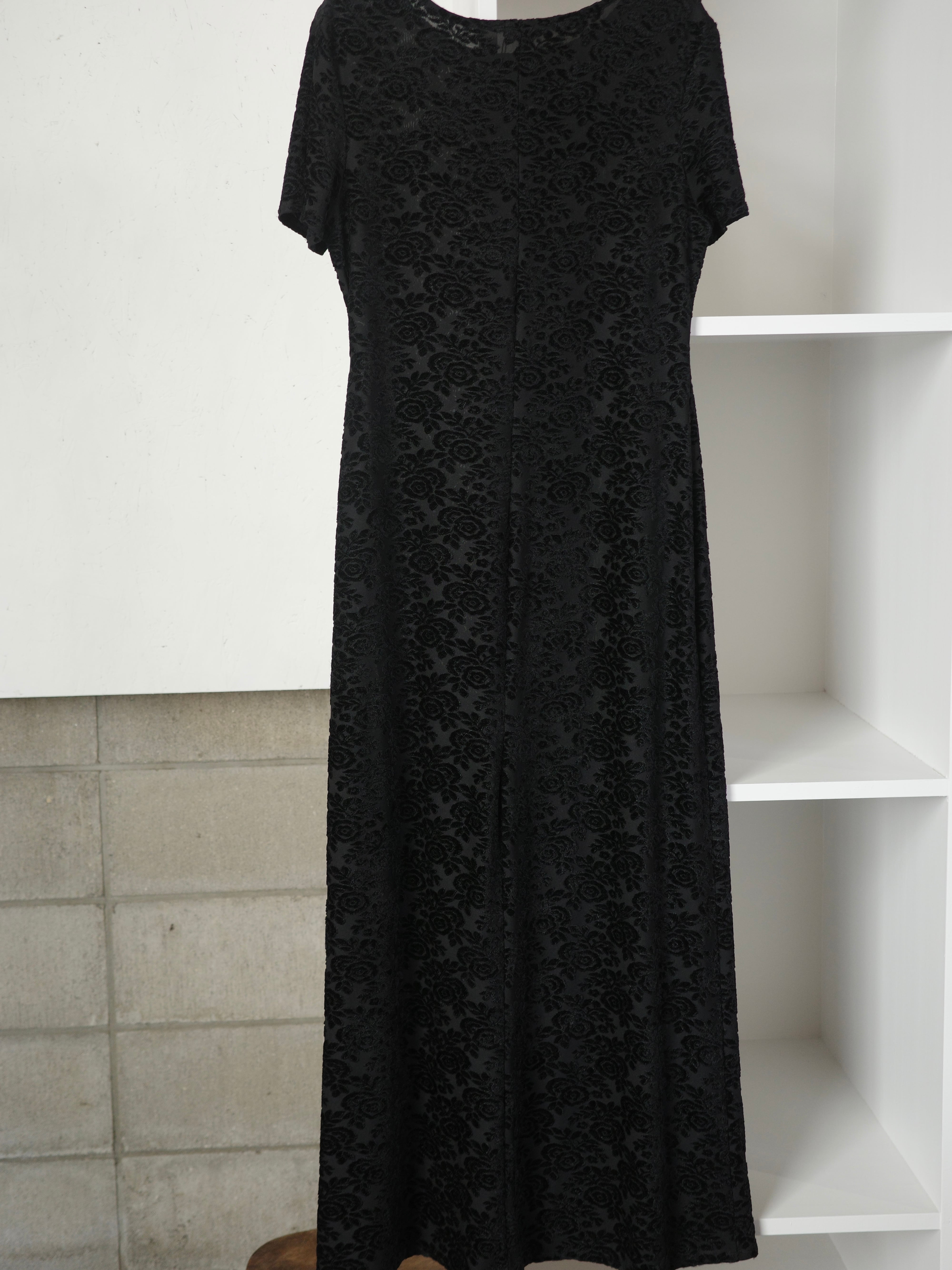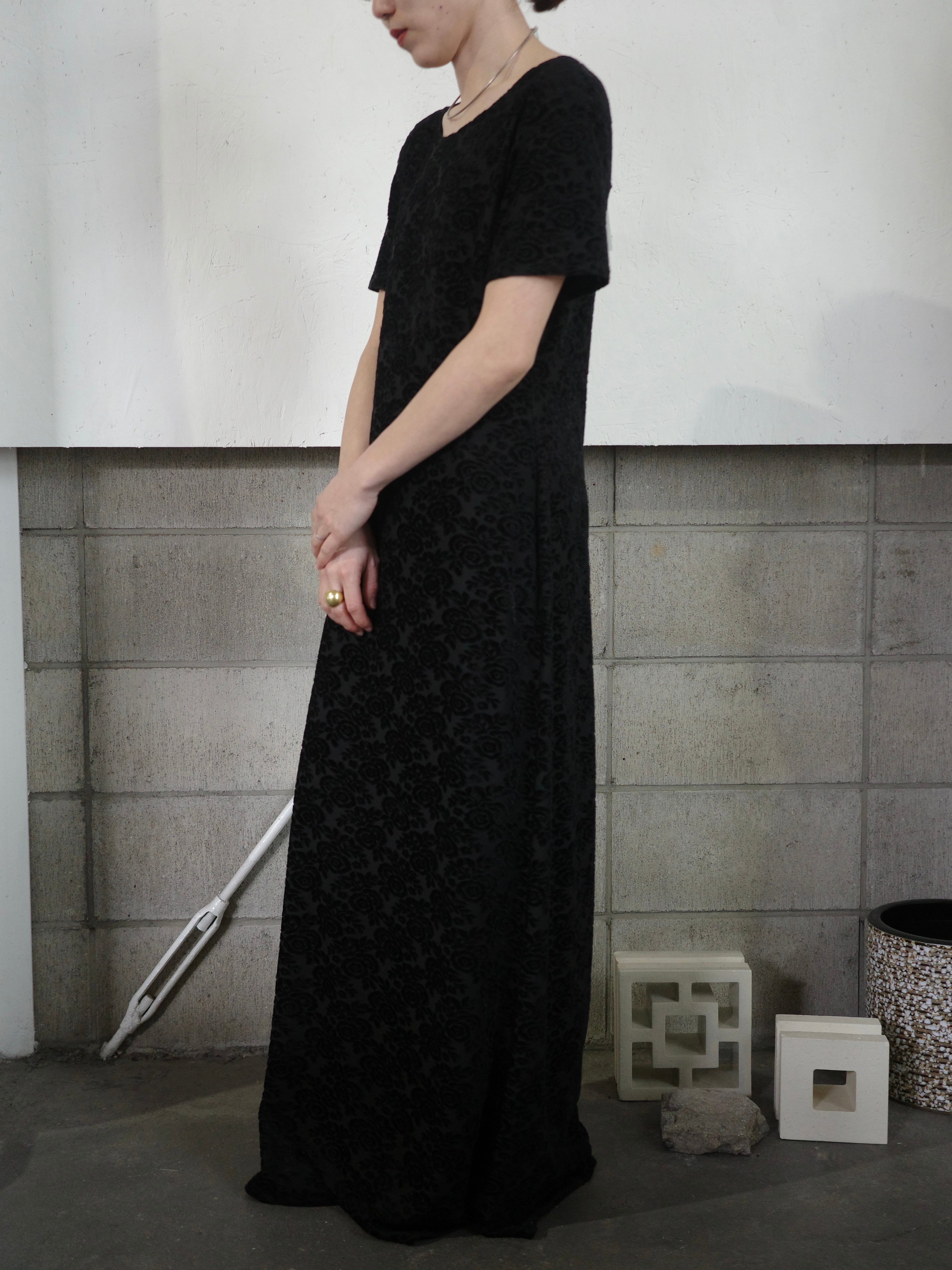 <vintage>velour flower long dress