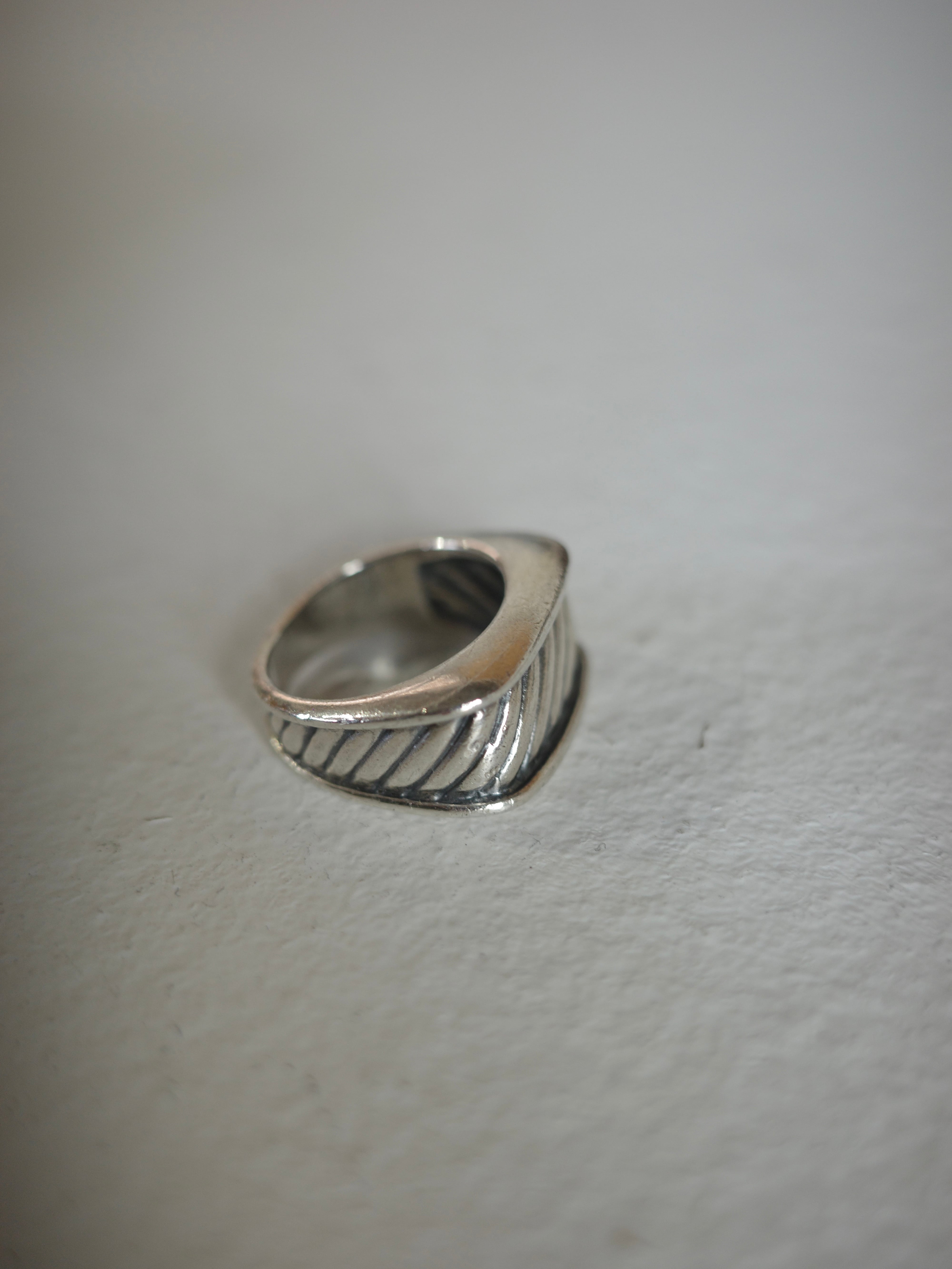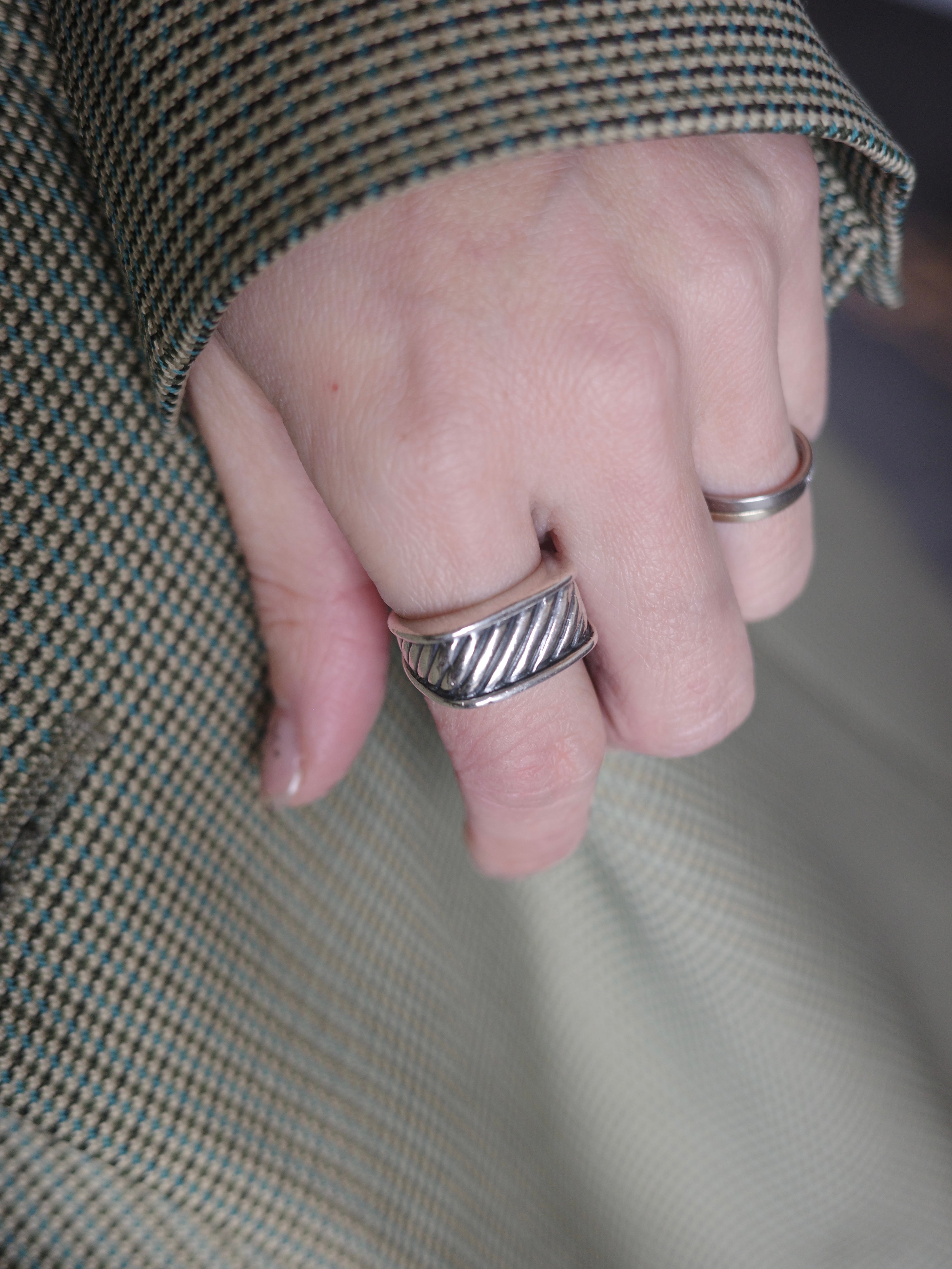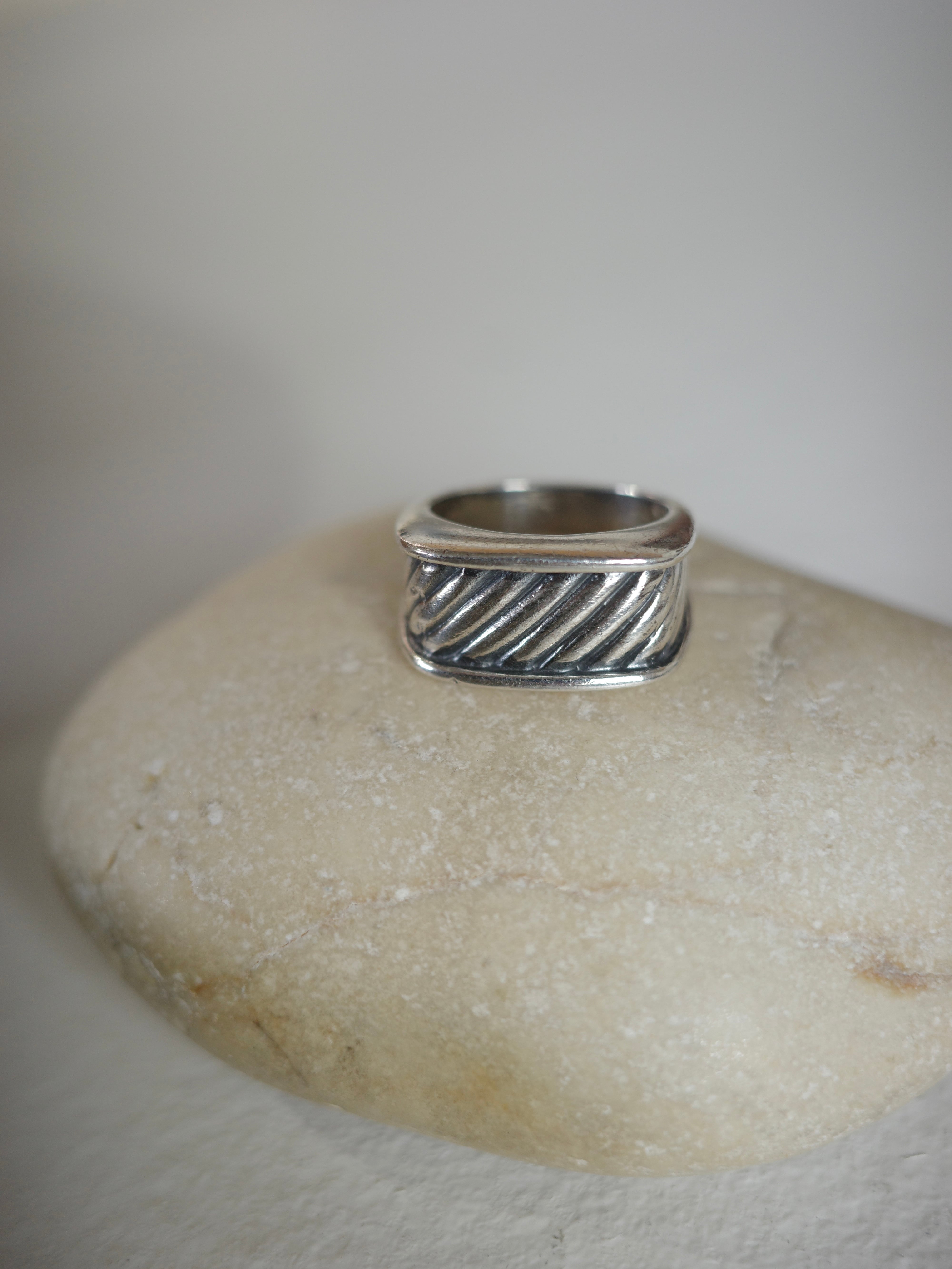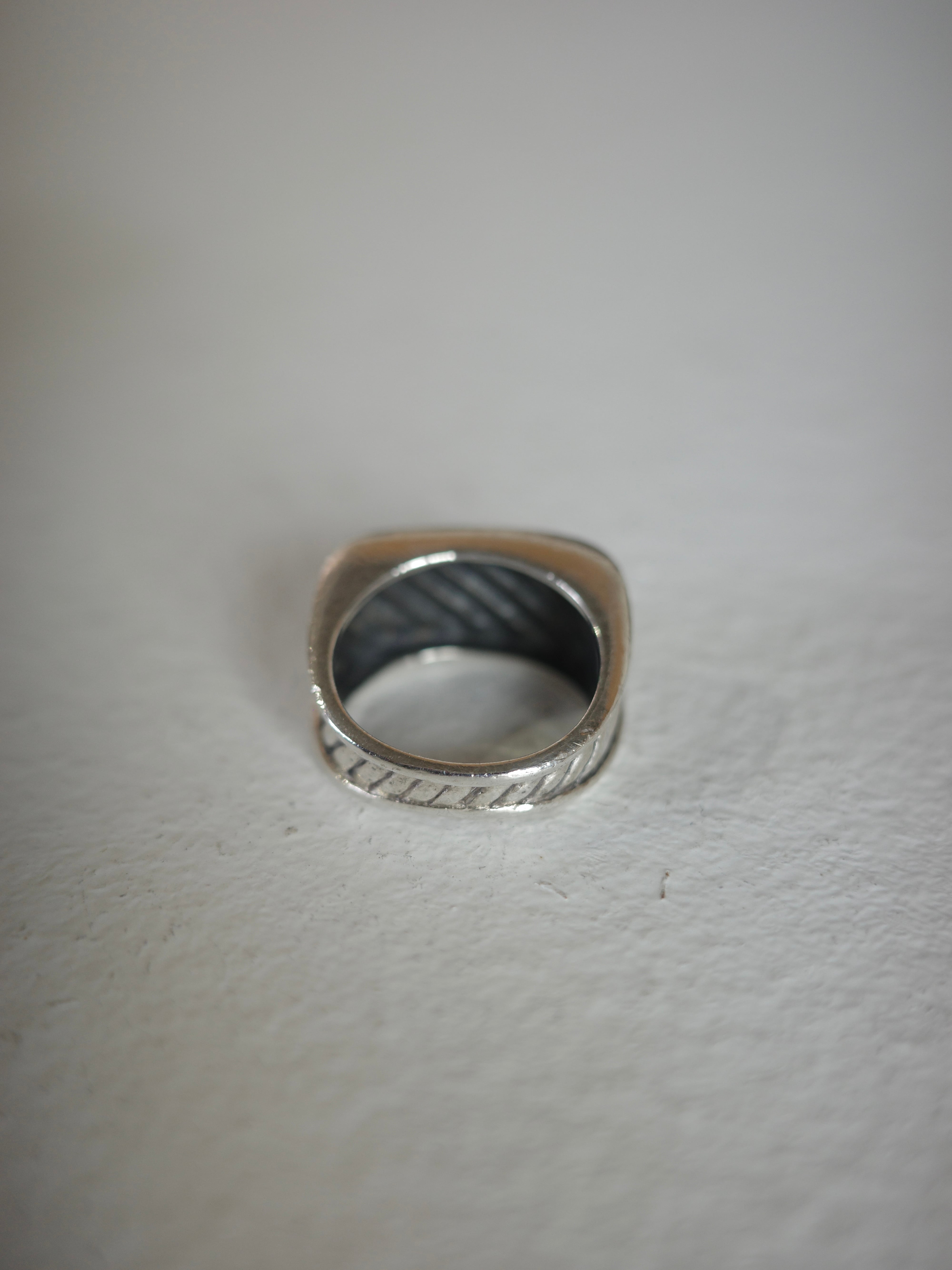 アメリカより仕入れたヴィンテージリングです。ケーブルデザインの凹凸感があるアイテムで、スクエア型なところがポイントです。メンズライクでカッコ良く着用いただけます。