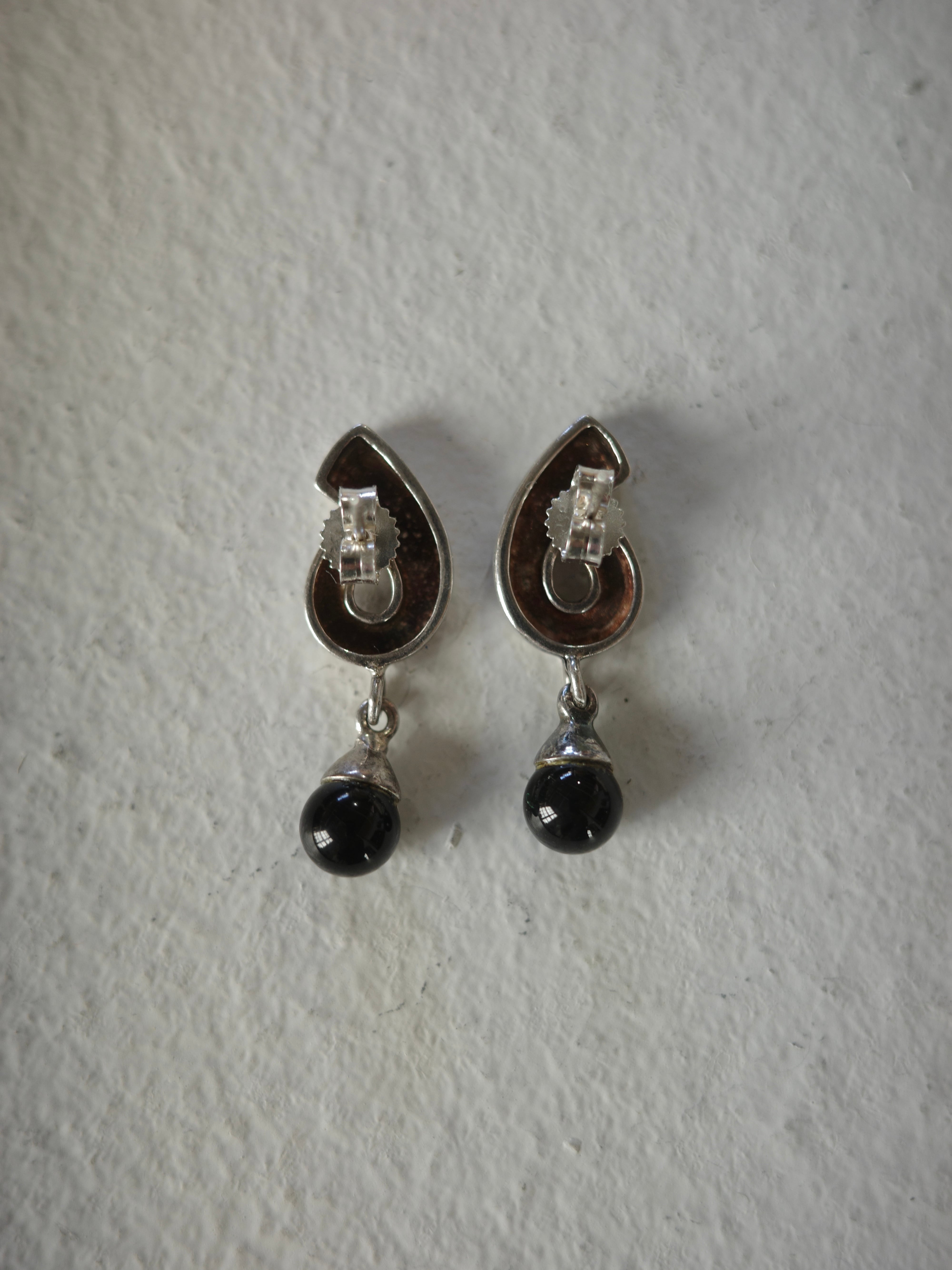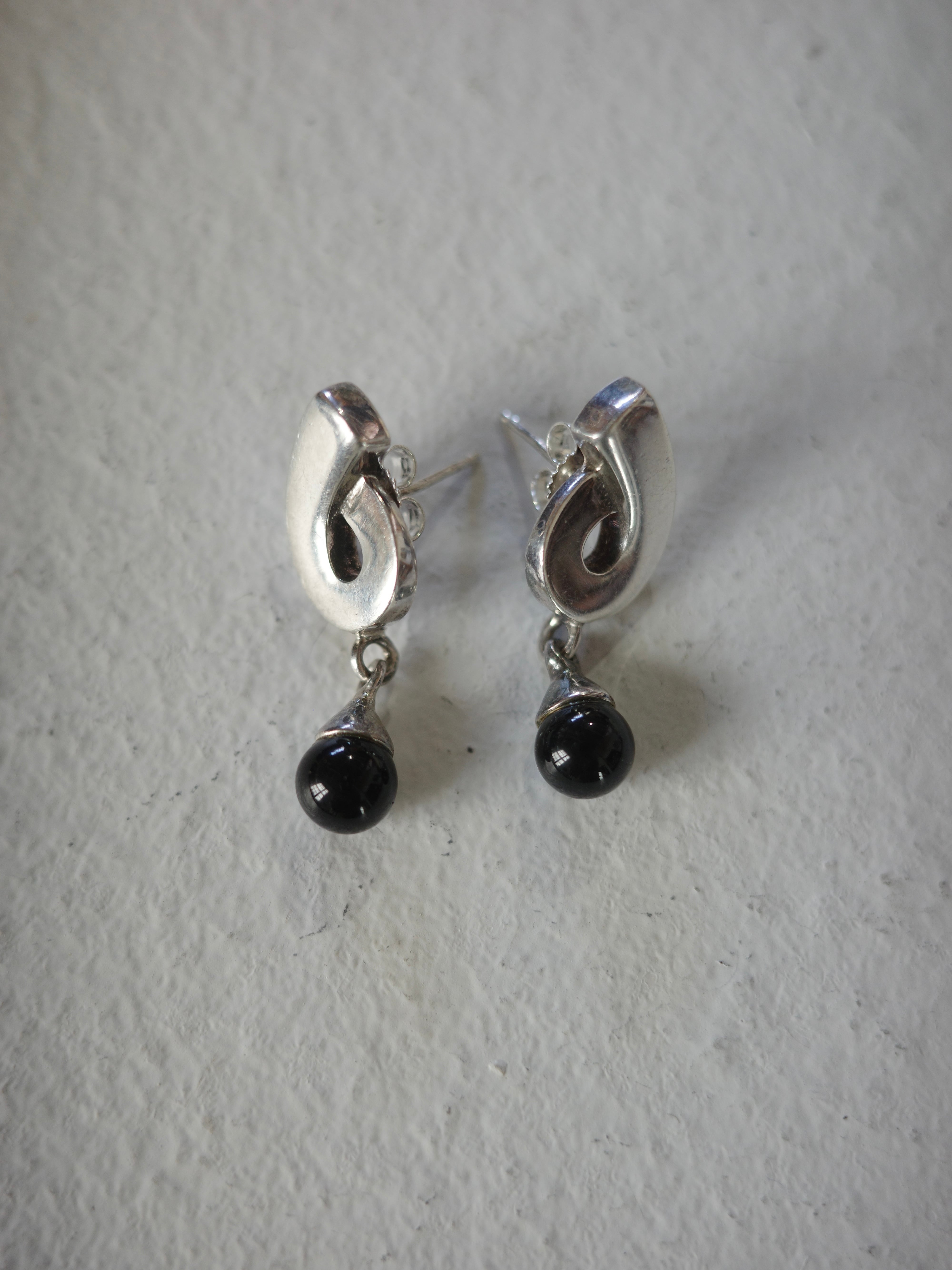 <vintage silver925>obsidian beads pierce