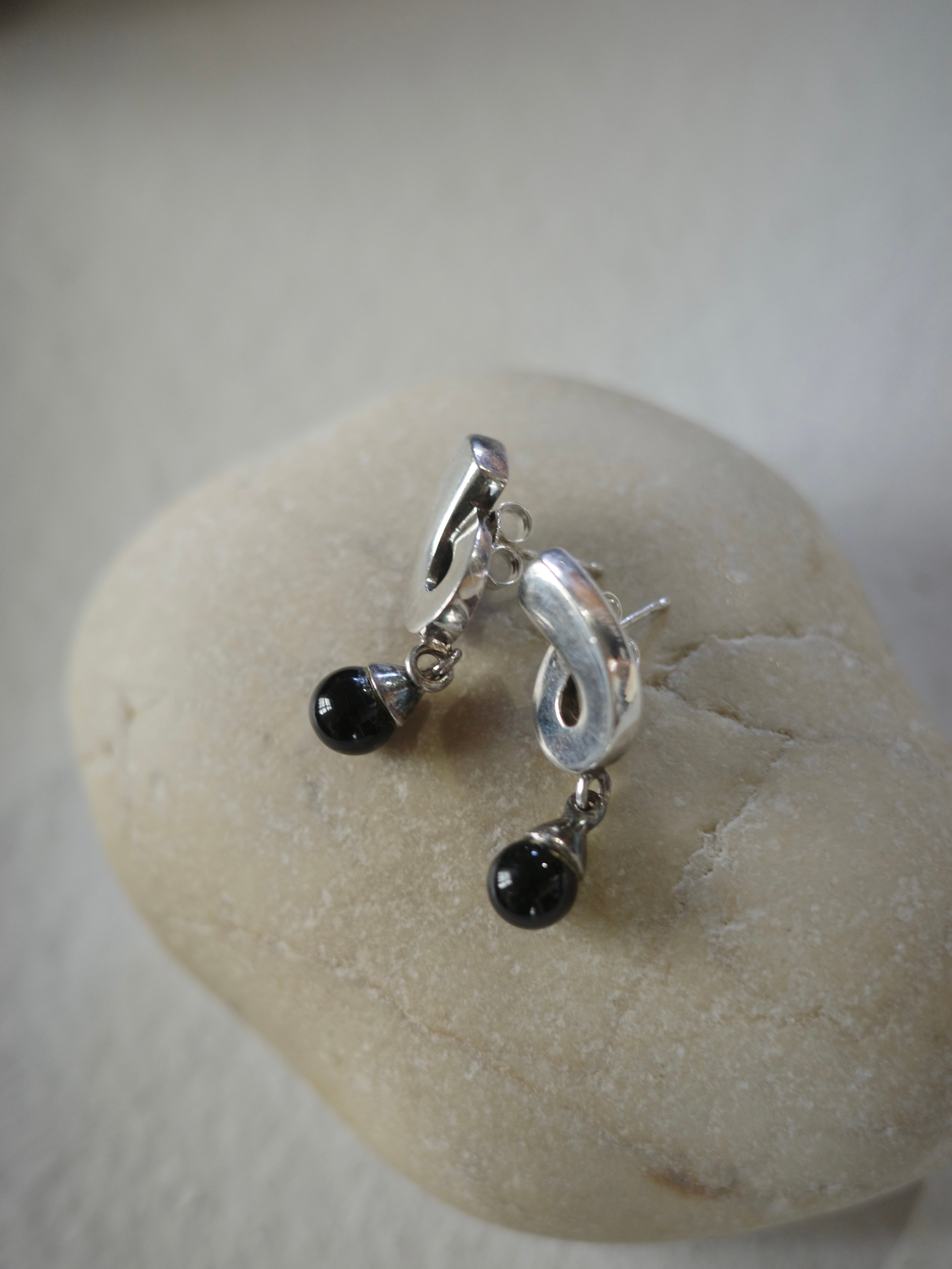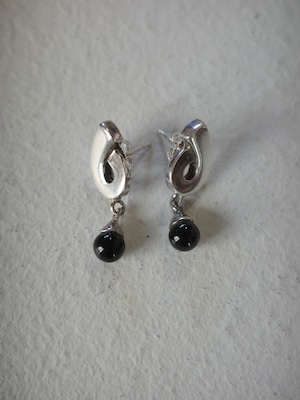 アメリカより仕入れえたヴィンテージピアスです。くるっとしたデザインのトップに、黒曜石のビーズが揺れるデザイン。小ぶりですが、立体感があり面白いデザインになっています。