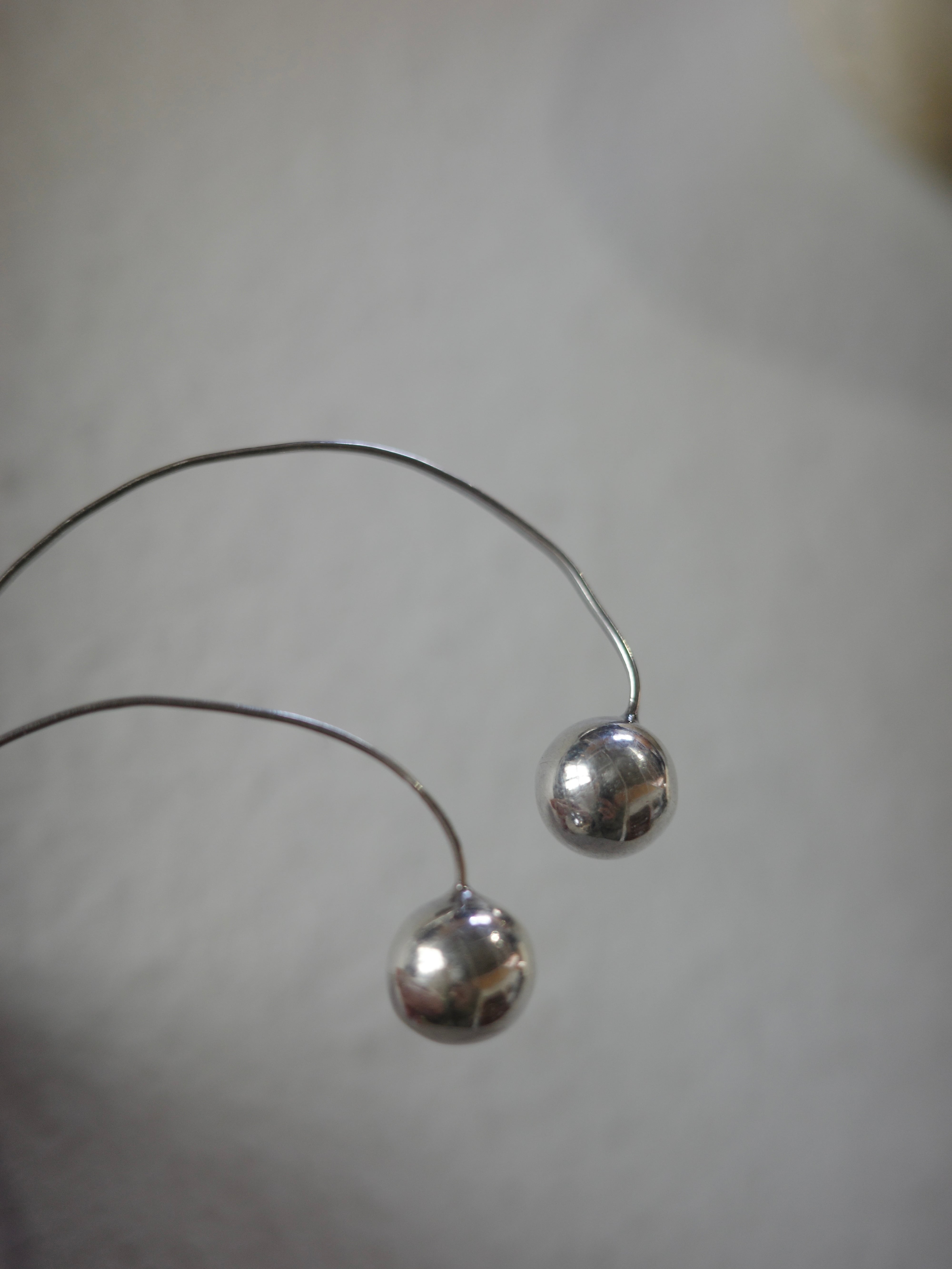 アメリカより仕入れたヴィンテージピアスです。クルンとカーブしたワイヤーにボールビーズが施された面白いデザイン。ゆらゆらと揺れて存在感があります。顔周りを華やかにしてくれるので、パーティーシーンなどにもおすすめです。