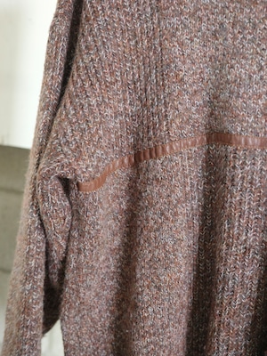 <vintage>leather detail brown knit