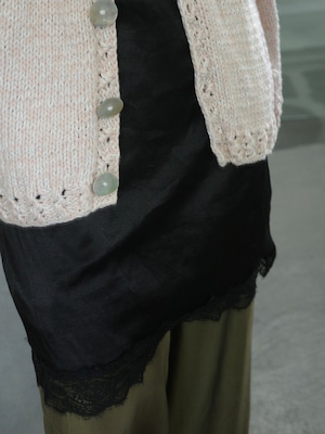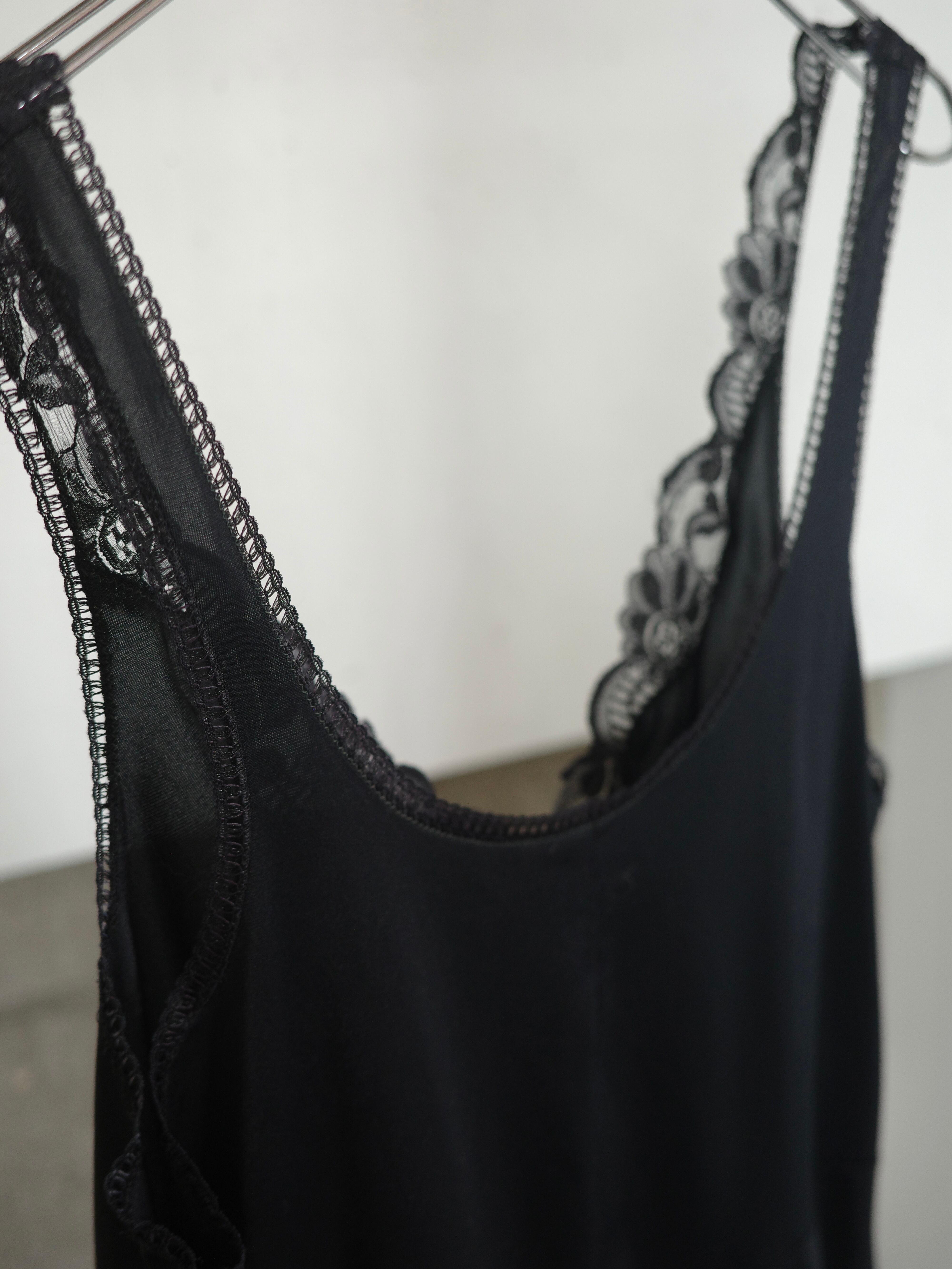 タンクトップタイプのランジェリーワンピースです。そのままインナーとして着るのもよし、上からスエットやニットを着て裾からレースを出すのもよし、Tシャツの上から重ね着するのもよしな、万能アイテムです。年中着回しができるおすすめアイテムです。