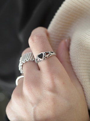 〈vintage silver925〉onyx heart design ring