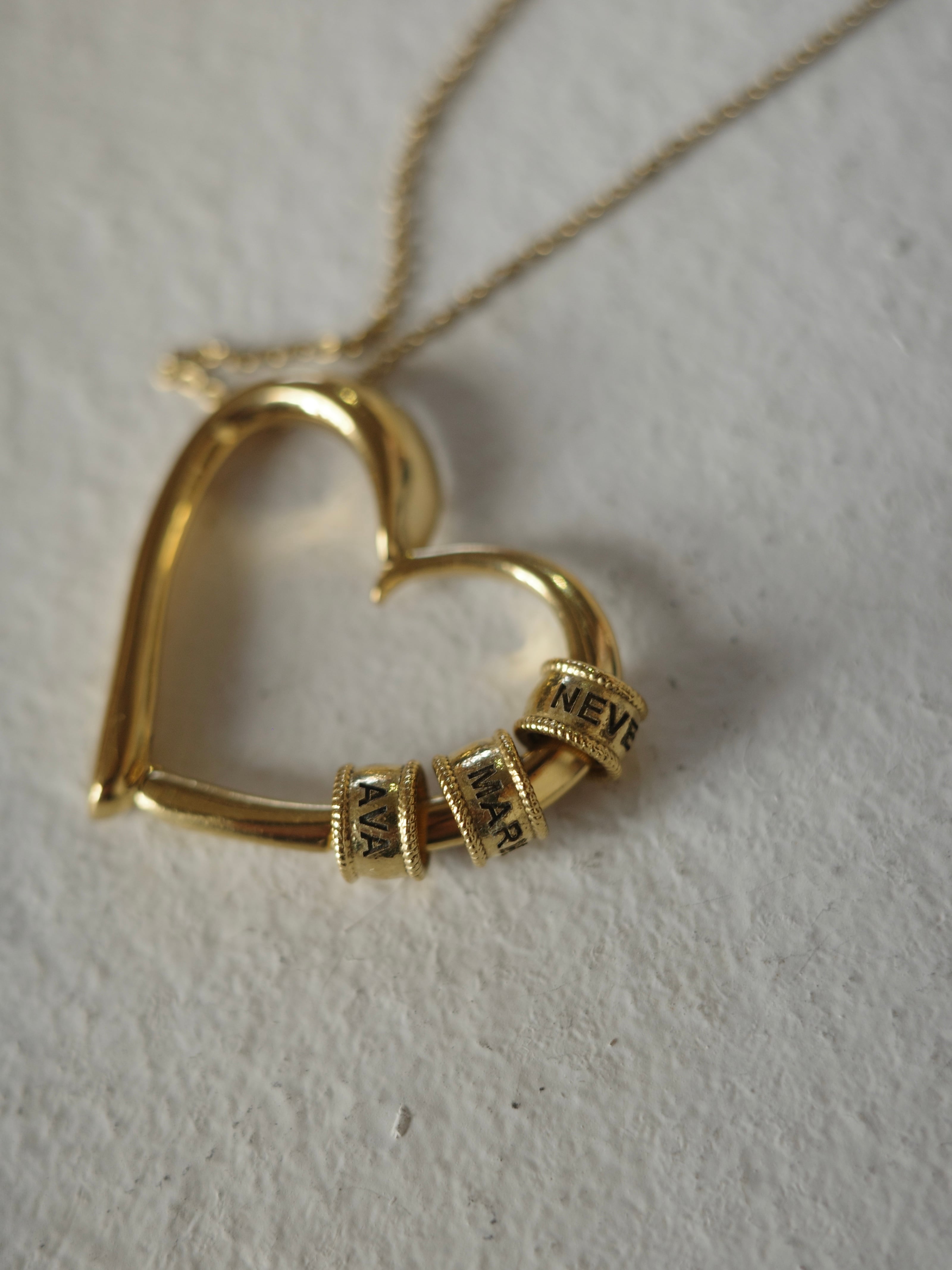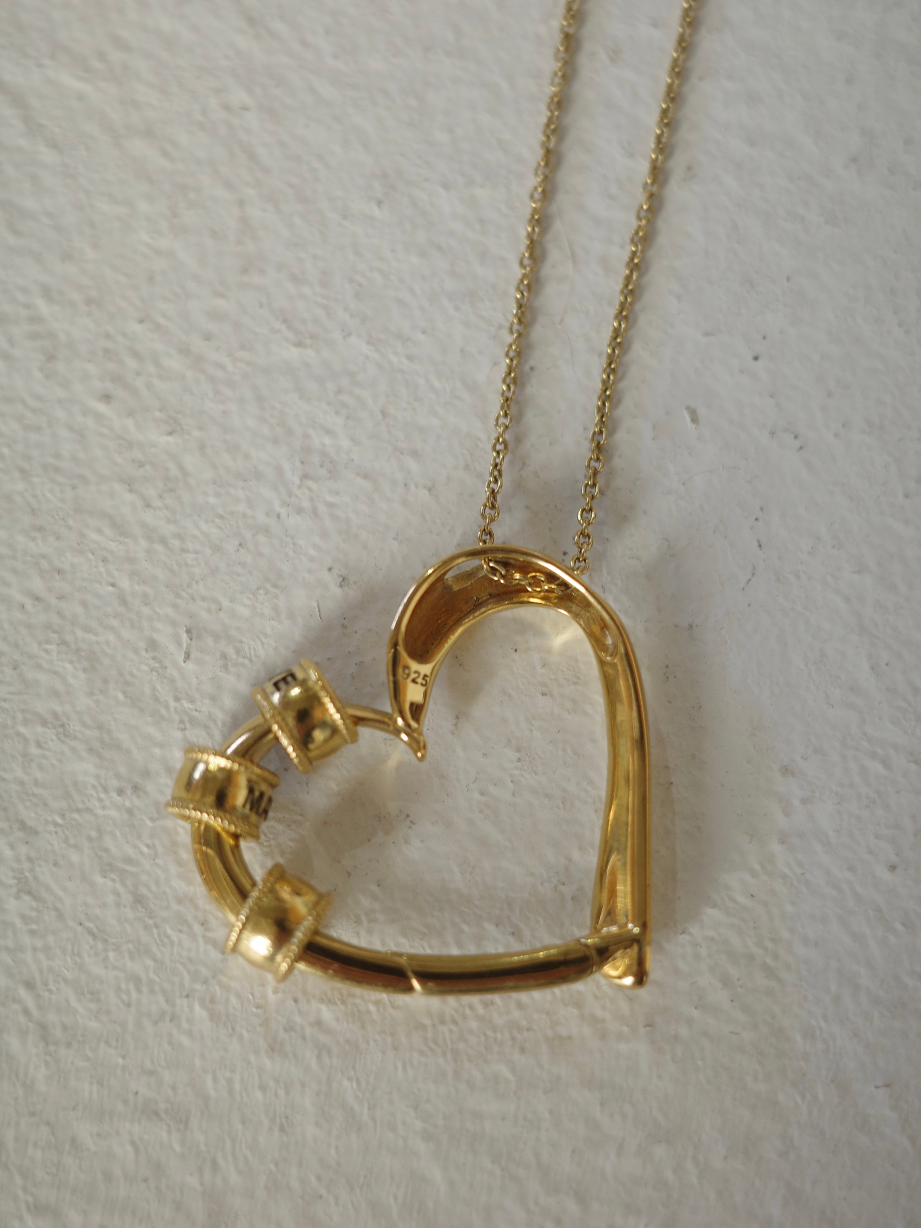 アメリカより仕入れたヴィンテージネックレスです。大きめなオープンハートが目を惹くペンダントです。ゴールドカラーで上品さがありつつも、しっかり存在感がありコーディネートのアクセントになります。