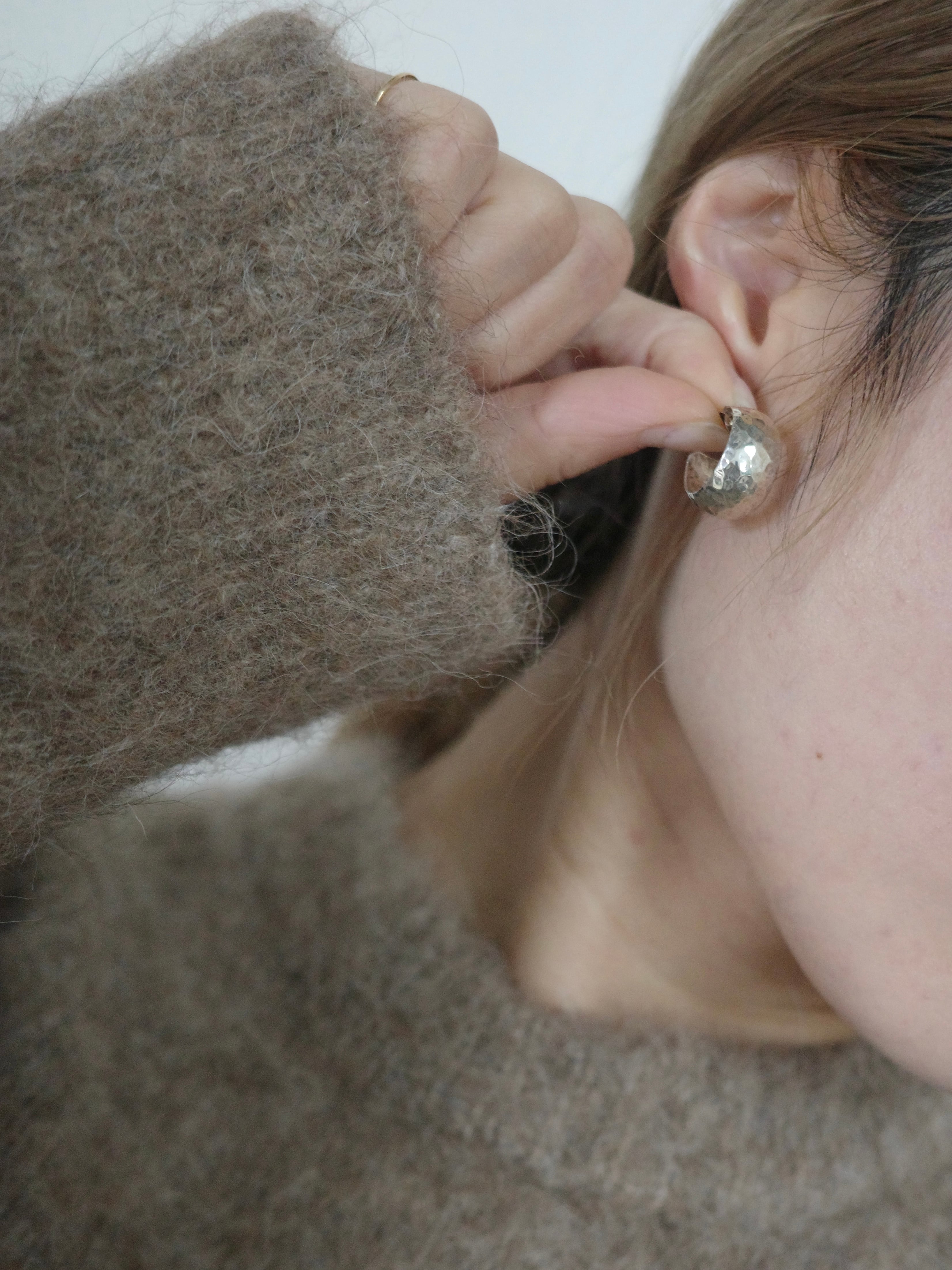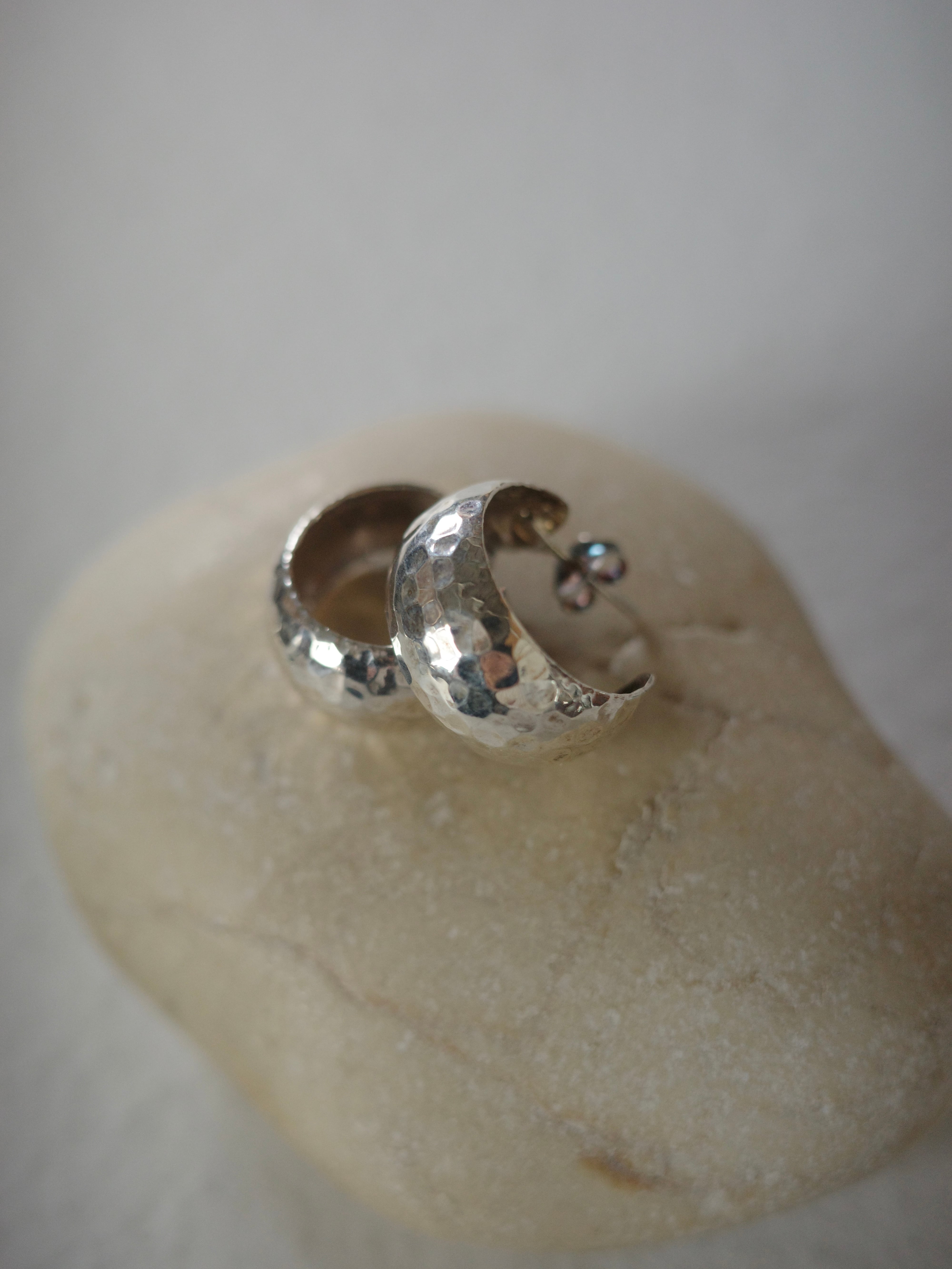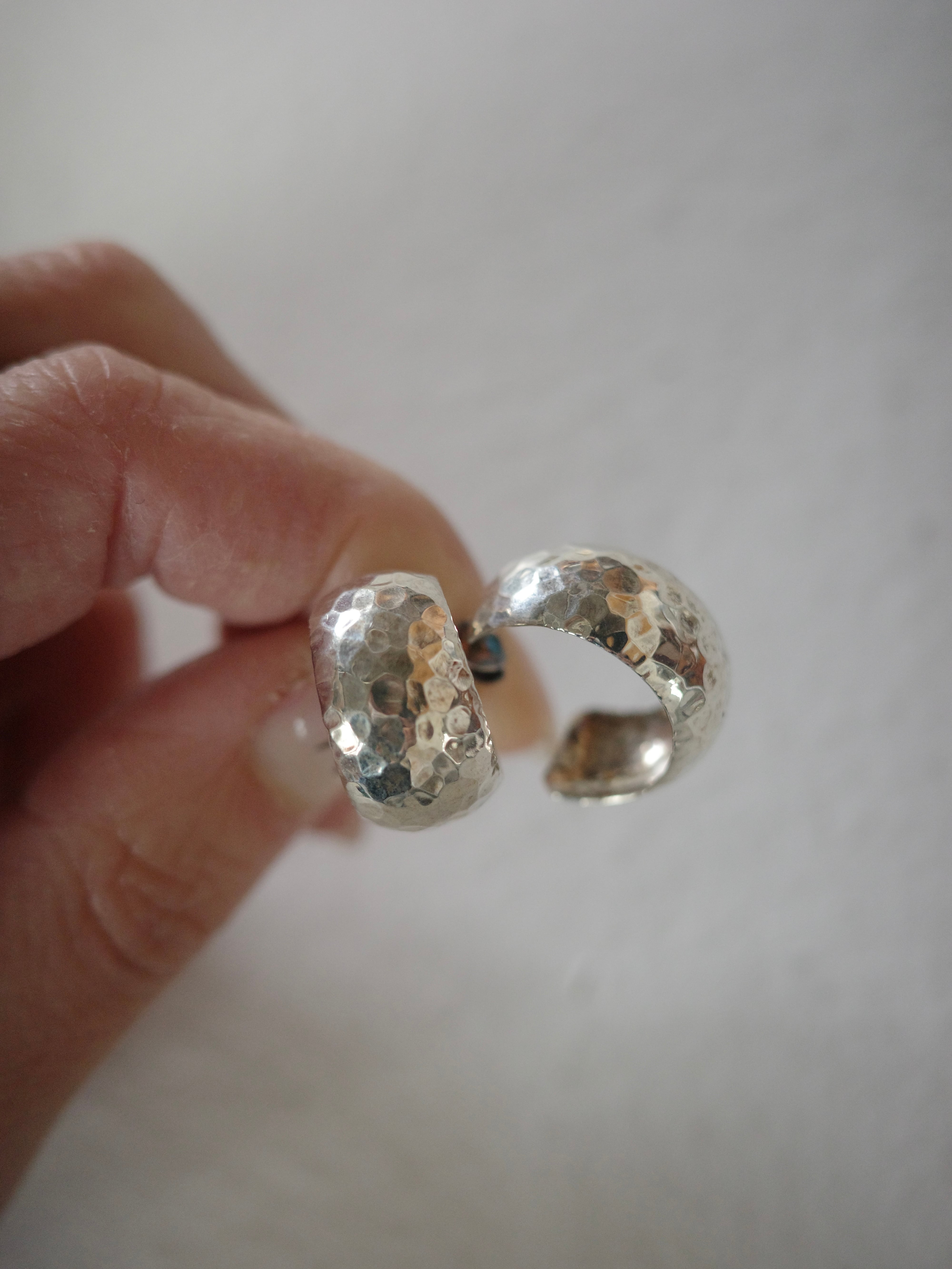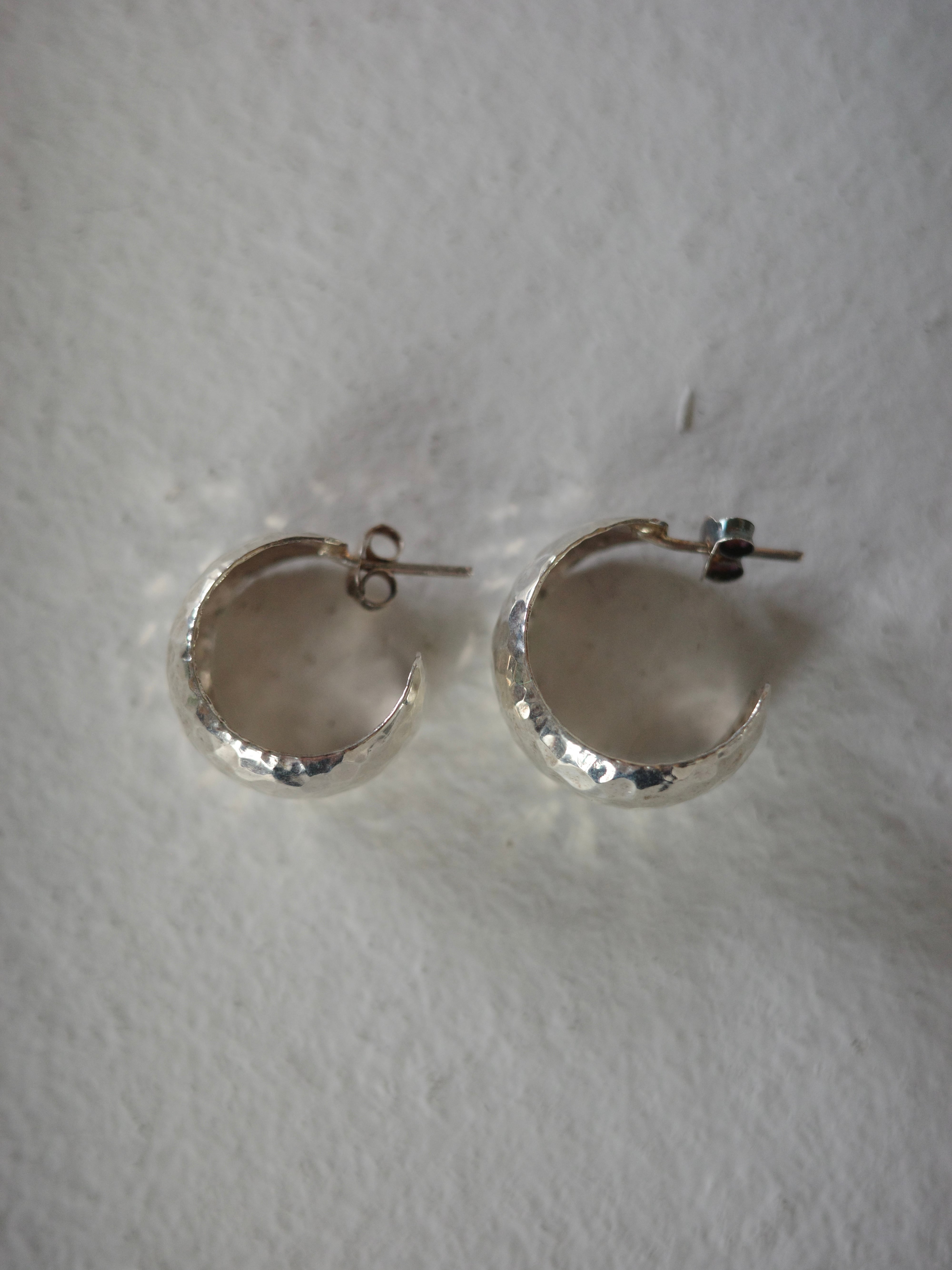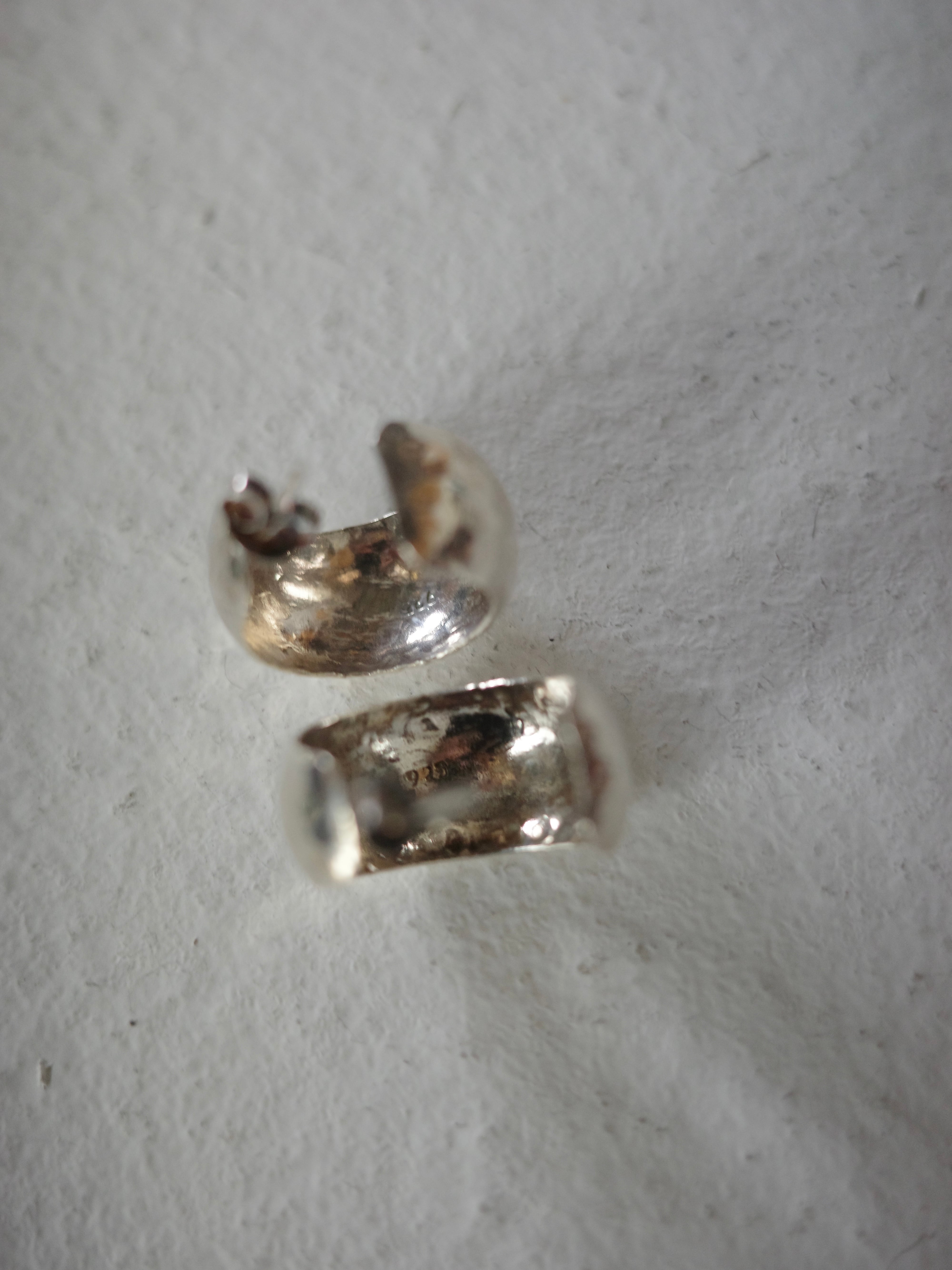 <vintage silver925>wide hammered hoop pierce