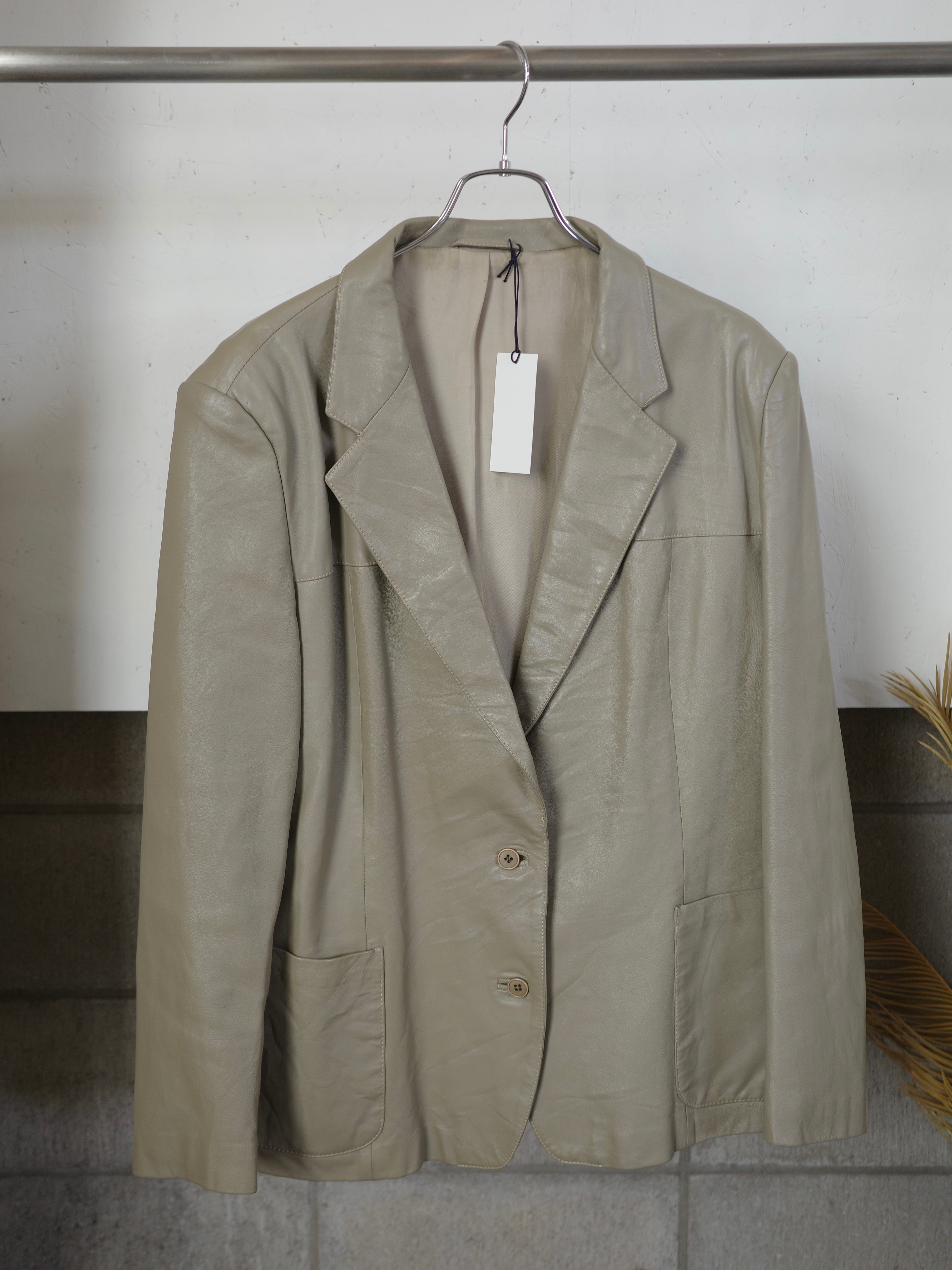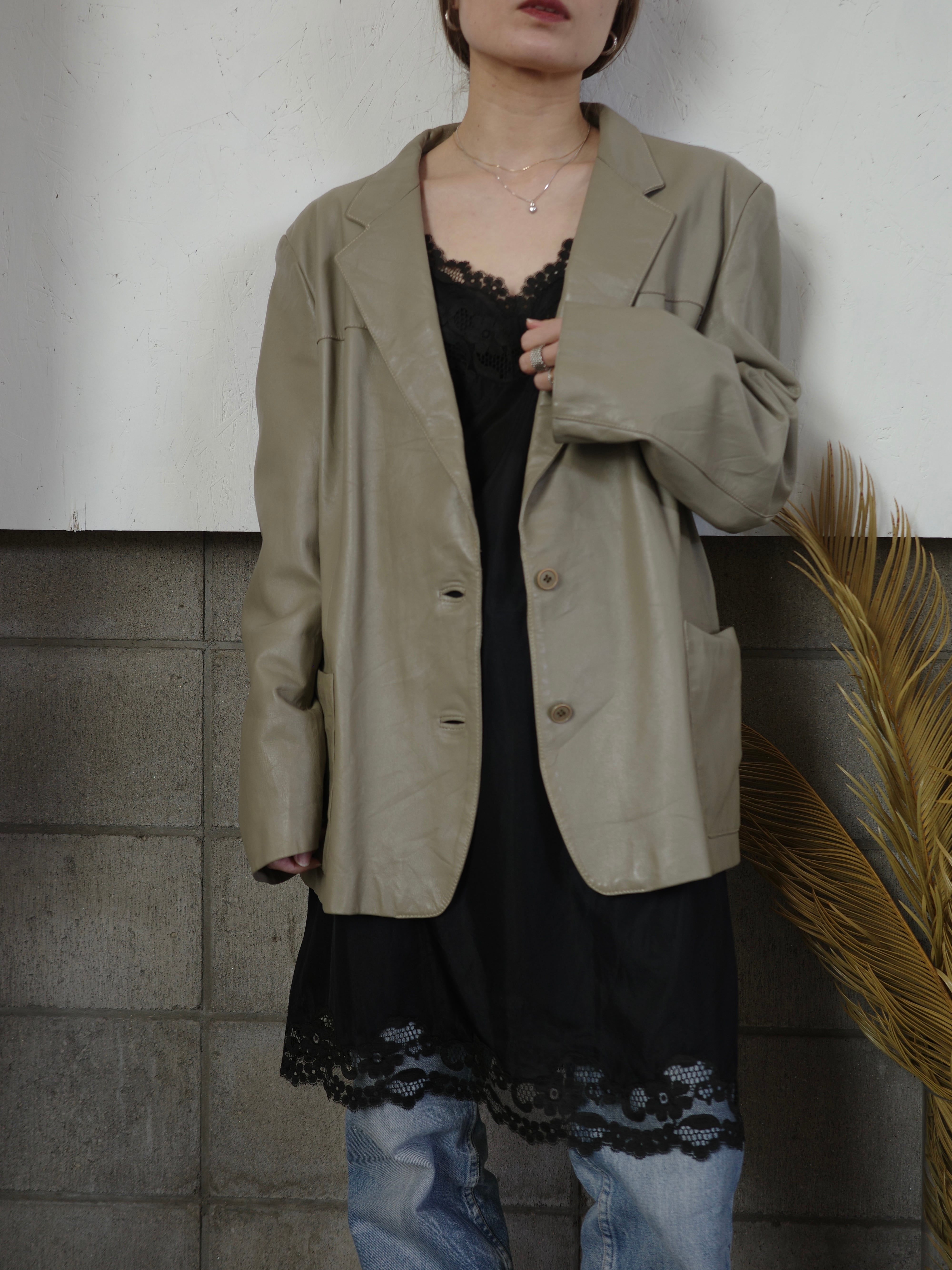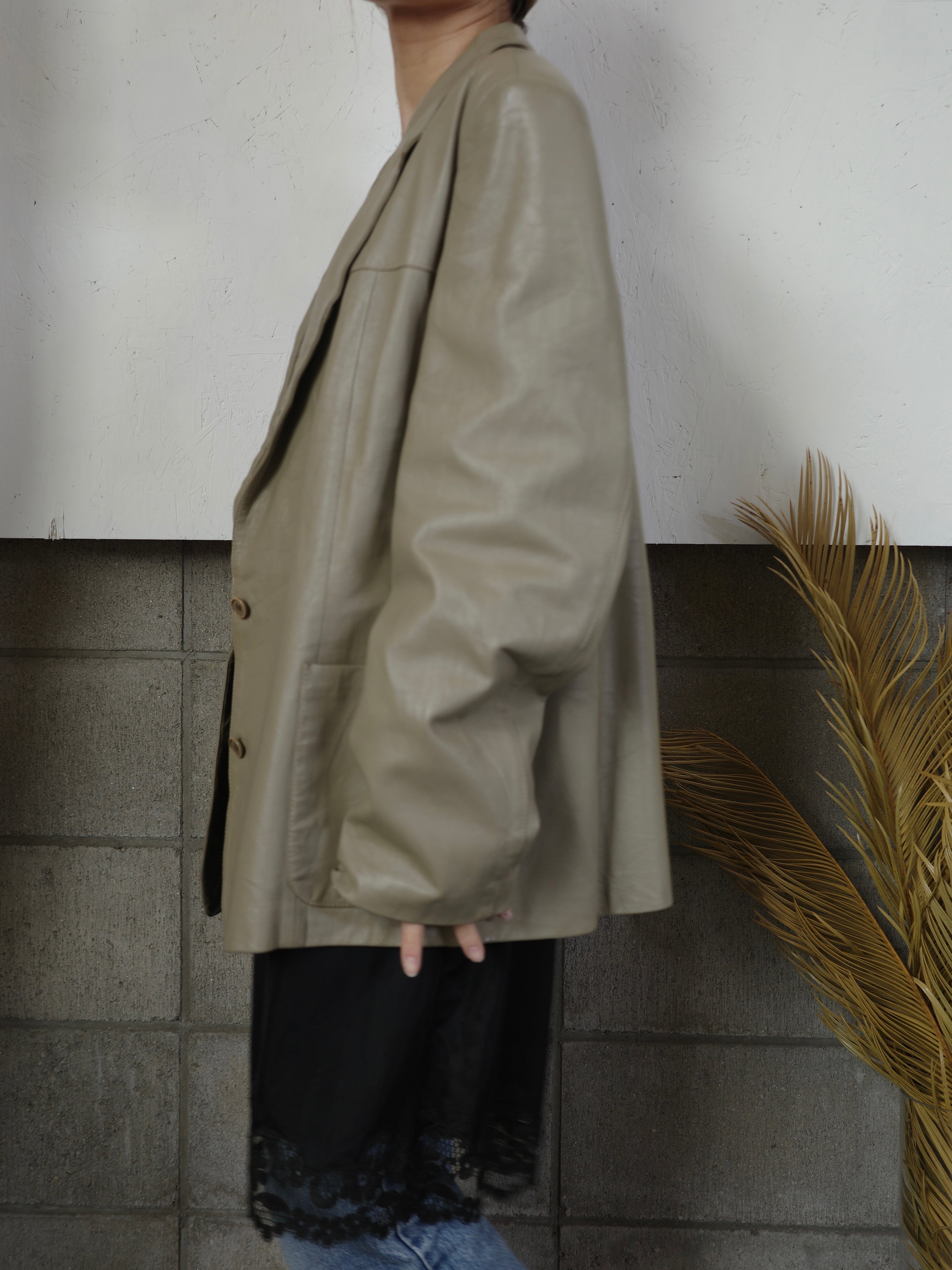 <vintage>leather beige jacket