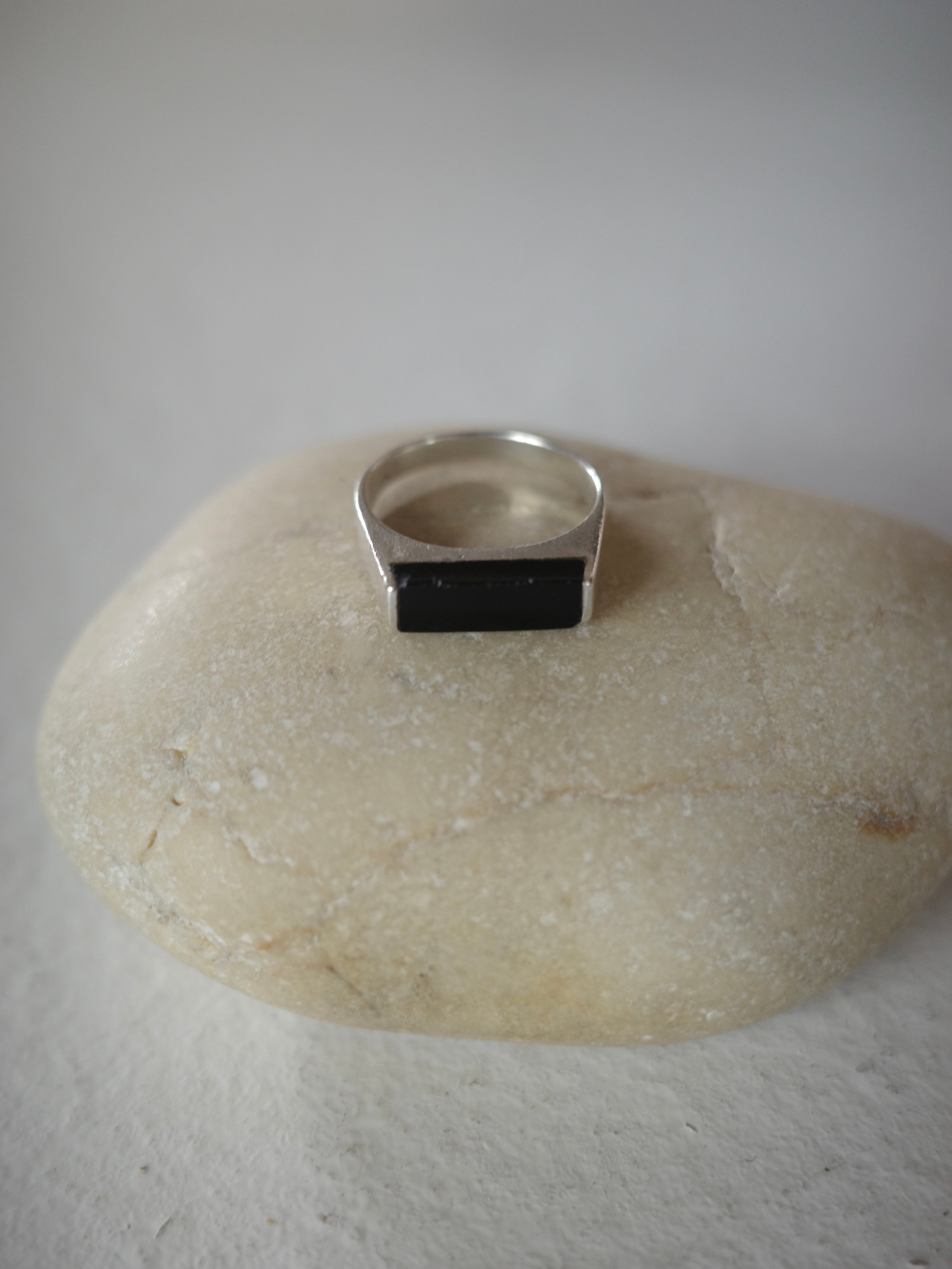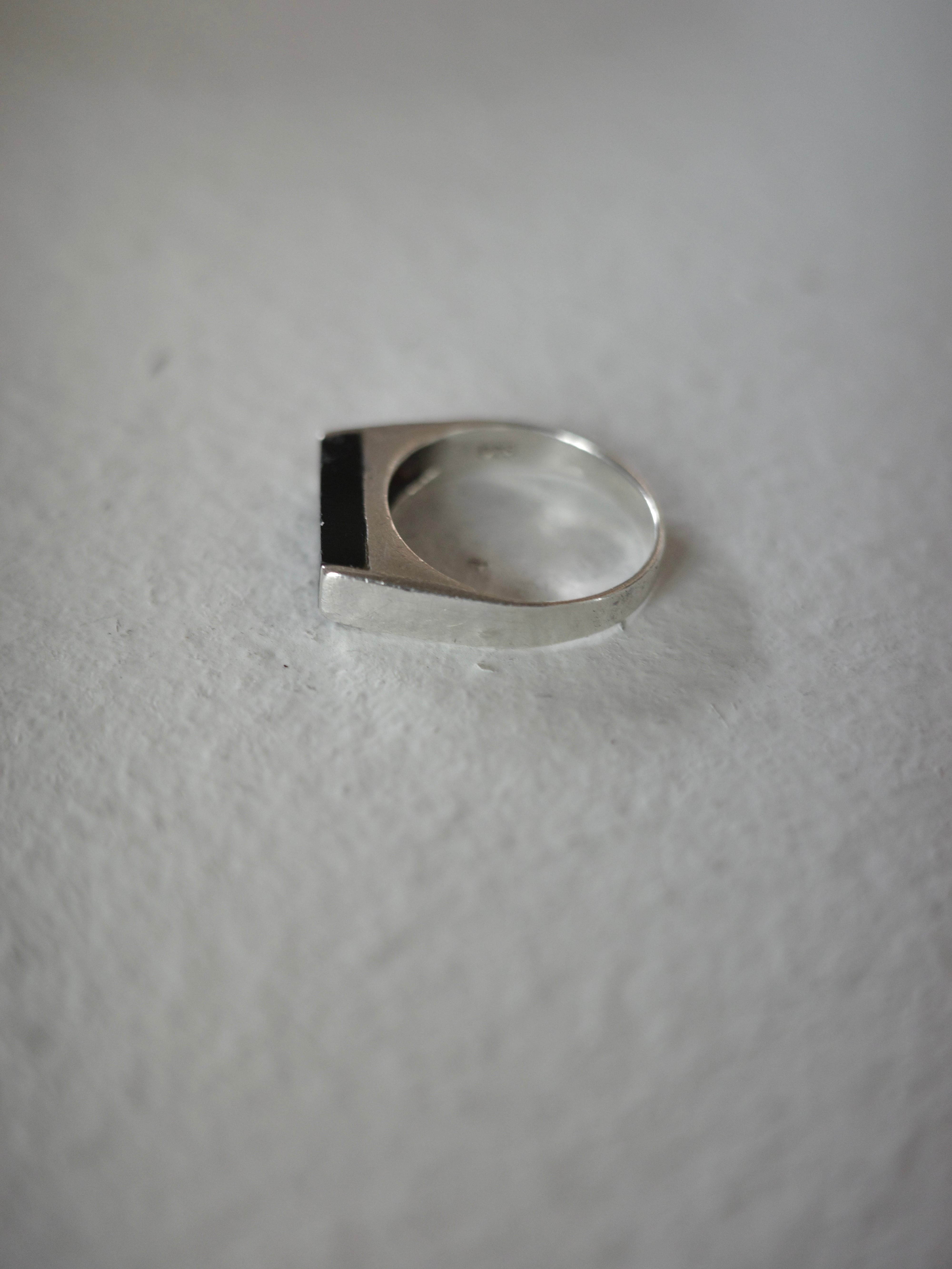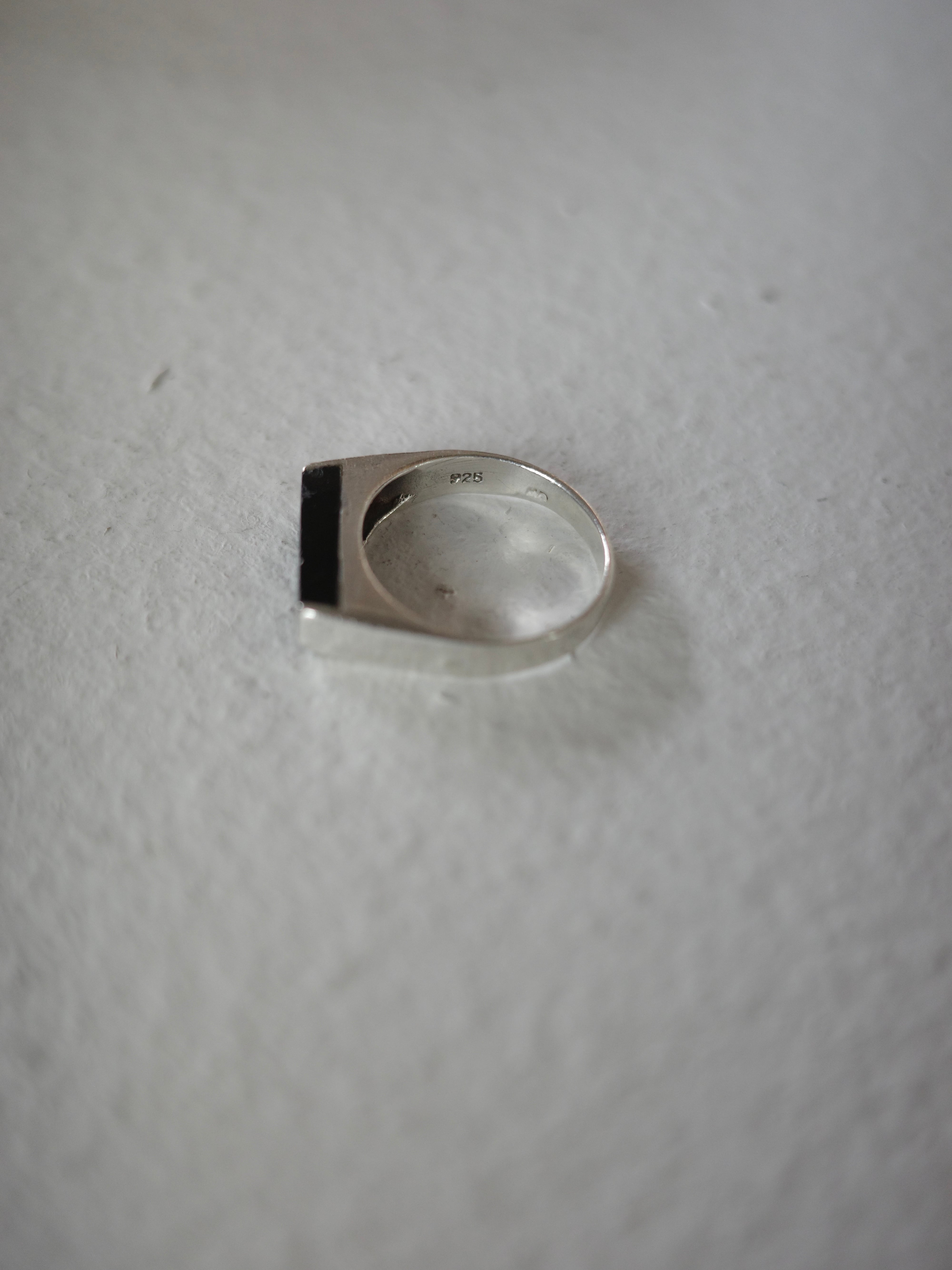 <vintage silver925>square bar onyx ring